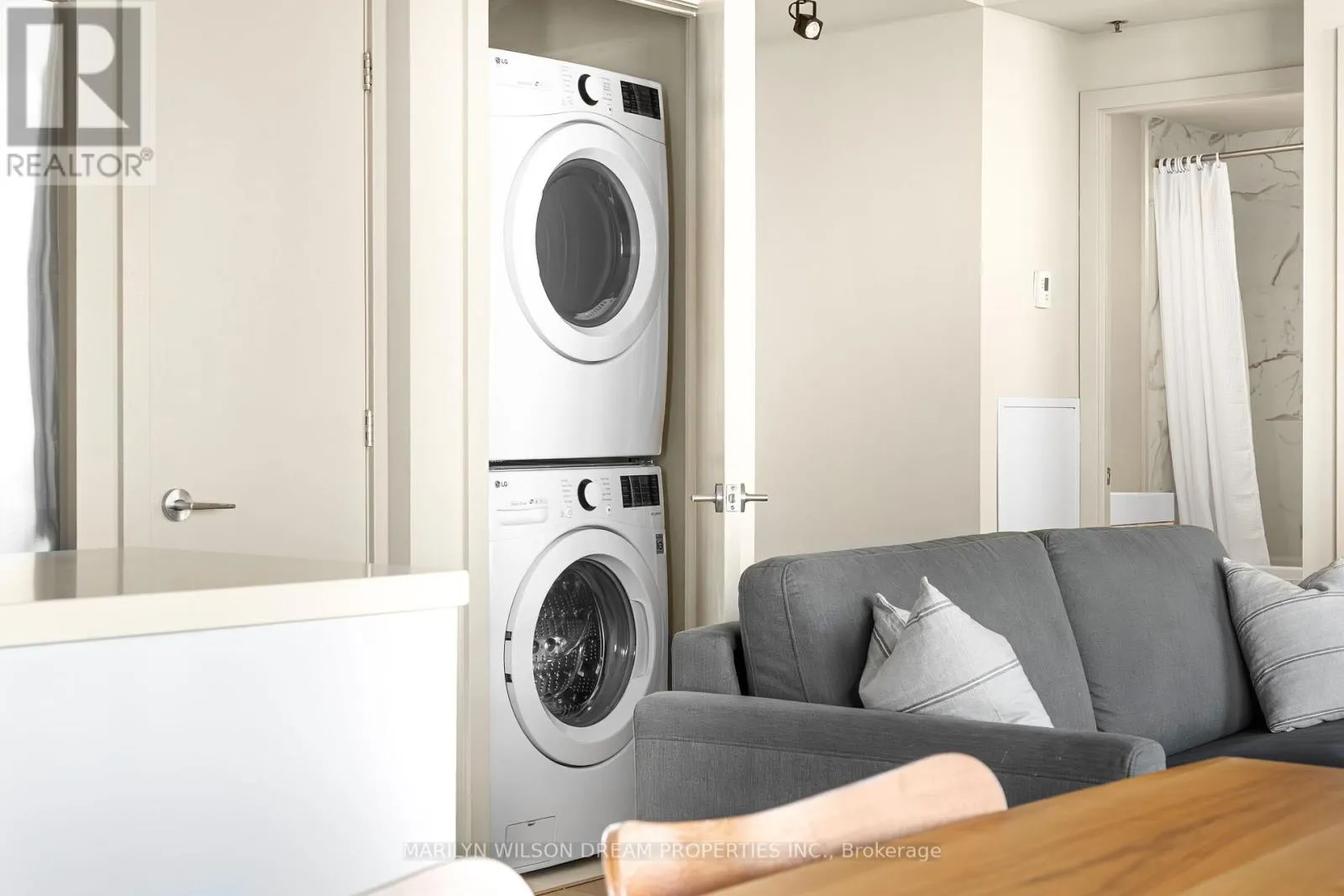 Cross Streets: O'Connor St & Catherine St. ** Directions: From Hwy 417 E, take exit 119 for Metcalfe St, merge onto Isabella St, turn left onto Metcalfe St, then left onto Catherine St - the destination will be on the right. This southeast-facing corner suite in the heart of Centretown offers rare light, views, and architectural character. Floor-to-ceiling windows wrap the space in natural sunlight, while exposed concrete columns add a refined industrial edge. From the living area, enjoy open sightlines toward the Museum of Nature, with the Rideau Canal shimmering beyond. The open-concept layout is both calm and functional. The kitchen features sleek white cabinetry, quartz countertops, stainless steel appliances, subway tile backsplash, and a rare 4-burner gas cooktop anchored by a generous island - ideal for entertaining or everyday living. The east facing bedroom is bathed in afternoon light-perfect for a home office, creative studio, or morning yoga space. The bathroom is finished with floor-to-ceiling Calacatta-style porcelain tile and clean, modern lines. In-unit laundry and underground parking provide everyday convenience. Residents enjoy concierge/security, gym, outdoor pool, and party room. Steps to cafés, restaurants, and the Canal, with quick access to the 417 - this is corner-unit city living designed for professionals who value light, location, and lifestyle. (id:27476)