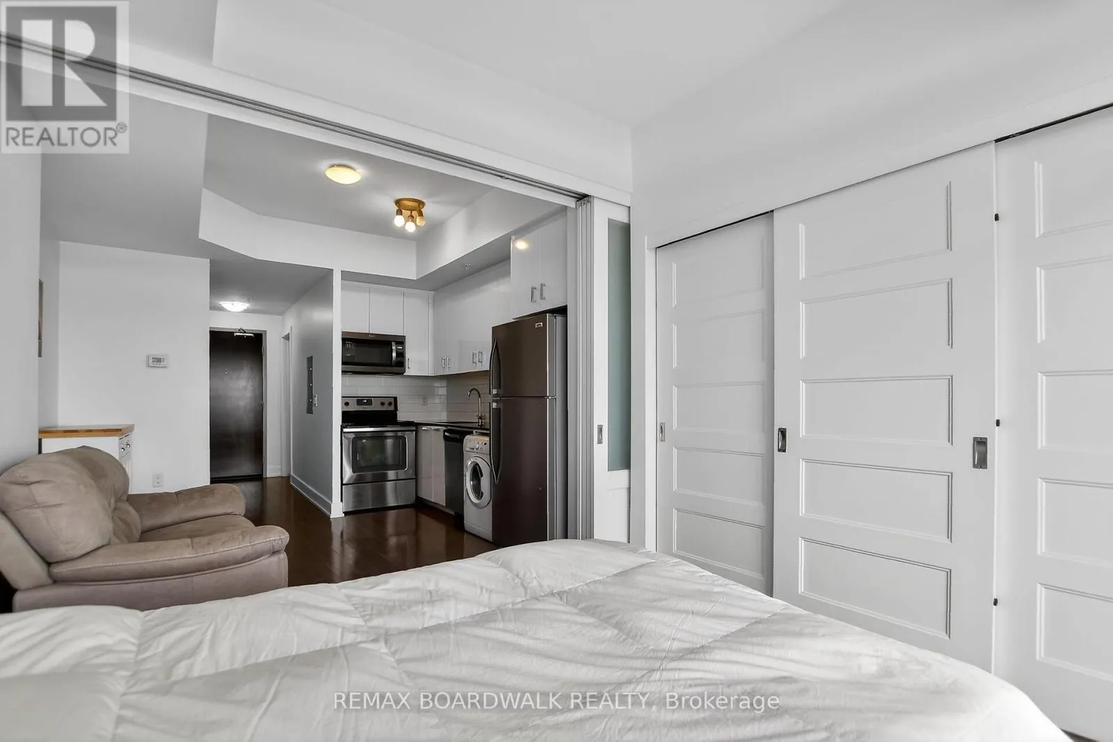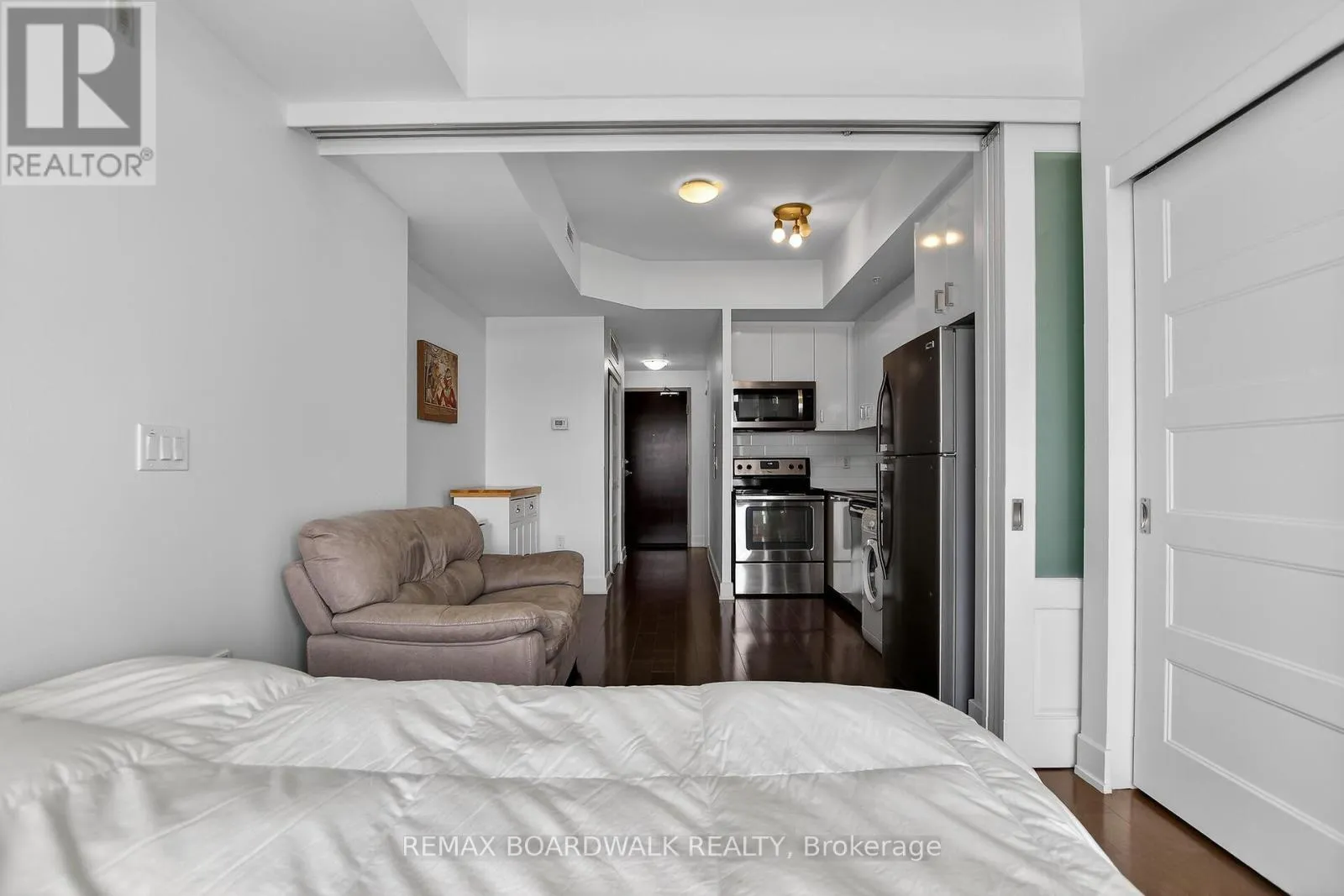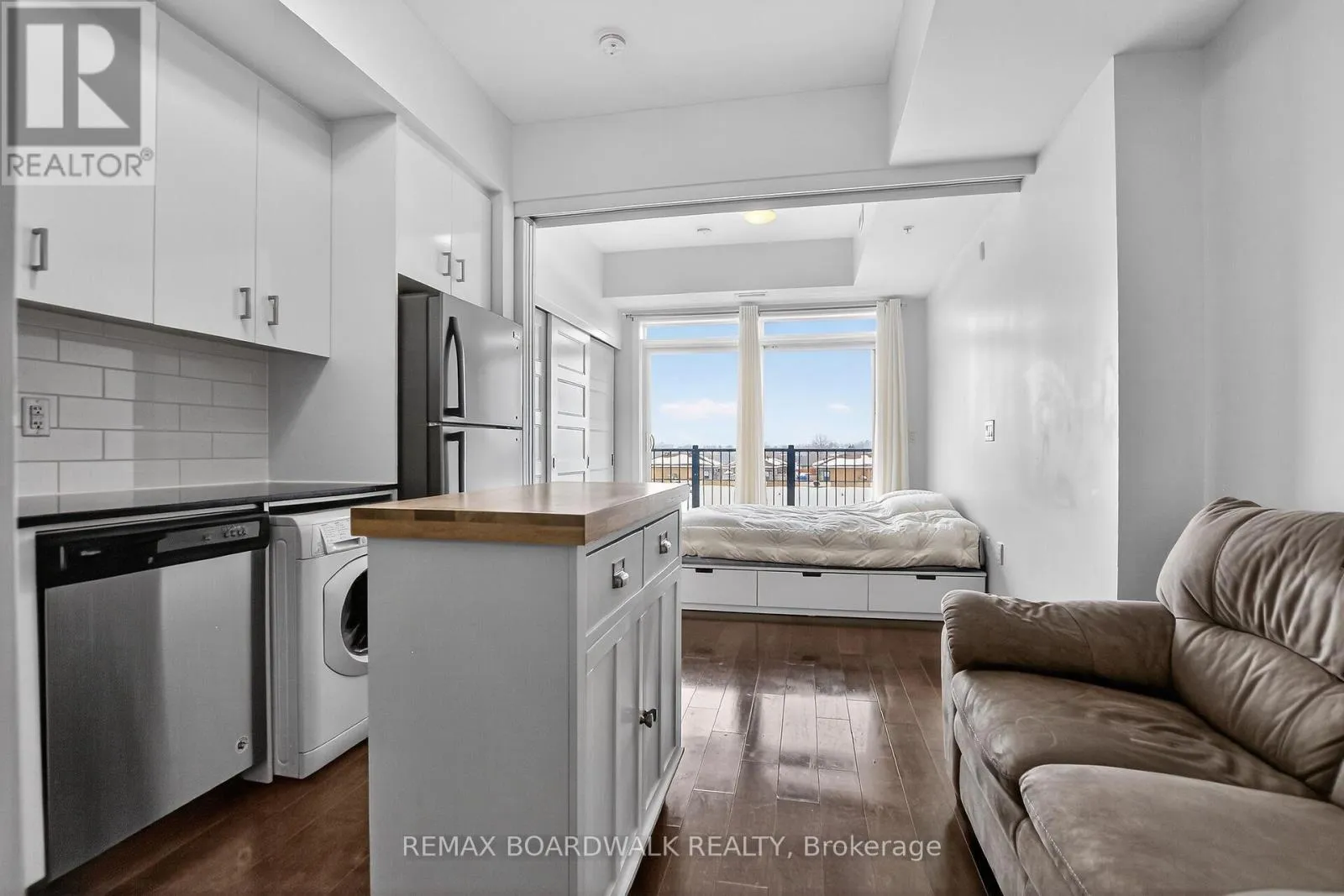Cross Streets: Baseline Road. ** Directions: Entrance directly off Baseline Rd. Welcome to this move-in ready condo in the centrally located and amenities-filled Redwood Park & Qualicum area. Located on the top floor of this low-rise 4 level building, this bright & modern condo features hardwood floors, high ceilings and views of the city & the Gatineau Hills. The open concept living space offers a kitchen with Granite countertops, undermount sink, plenty of cabinetry, stainless steel appliances and flexible side living/dining area. Sliding panels separate the living space from the bedroom for on-demand privacy. This condo also hosts a stylish full bathroom, North facing balcony and convenient in-suite laundry. Your underground parking space means you never have to shovel snow off your car and you have easy access to your indoor storage locker via the garage. This secure & quiet pet-friendly building is located close to the Queensway Carleton Hospital, Algonquin College, multiple parks, walking/biking trails, public transit, Bayshore Mall, IKEA & College Square. Your guests will find visitor parking at the front of the building and can use the elevators to come visit you on the top floor. Bonus: condo can be sold fully furnished, just bring your suitcase and move in! (id:27476)