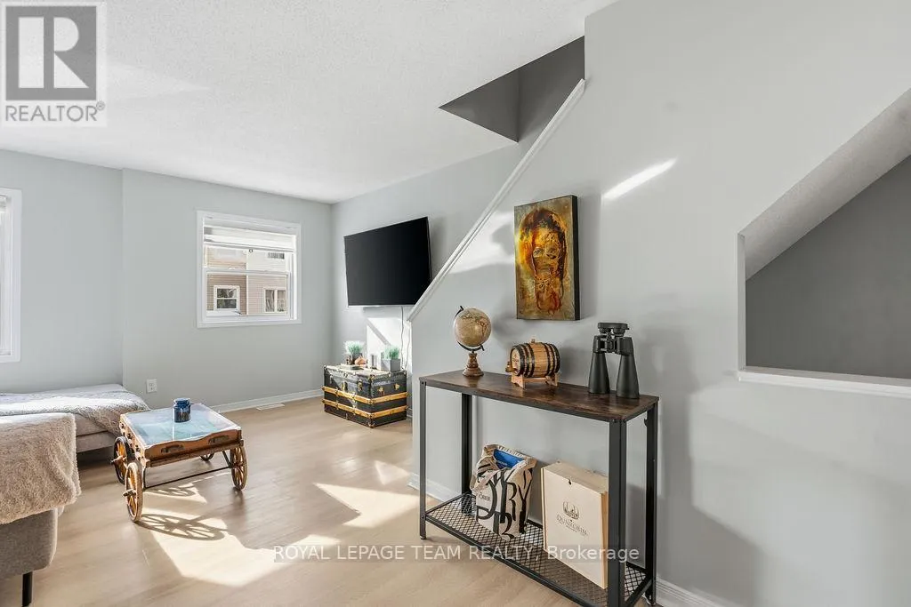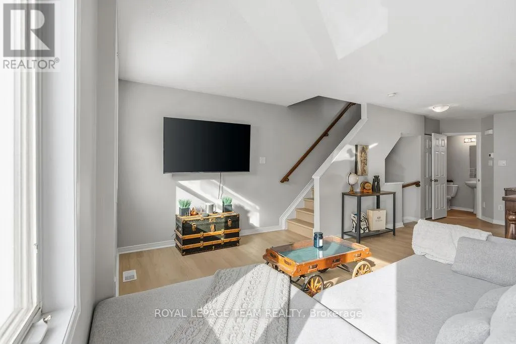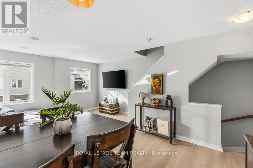 Cross Streets: Sadar Private & Simran Private. ** Directions: Take Strandherd Dr north toKennevale Dr. Turn right on CobbleHill Dr. Turn onto Simran Pvt. Turnonto Sadar Pvt. Welcome to this bright and beautifully updated 3-storey townhome offering comfort, style, and functionality throughout. Featuring 2 bedrooms and 2 bathrooms, this home showcases new flooring and a completely carpet-free interior for a clean, modern feel. The main level offers a versatile rec room - perfect for a home office, gym, or flex space - with patio doors leading to the fully fenced rear yard, ideal for relaxing or entertaining. The second level boasts an open-concept layout filled with natural light, seamlessly connecting the living and dining areas to the kitchen with sleek black appliances, plus convenient laundry and a powder room. Upstairs, you'll find two spacious bedrooms and a 3-piece bathroom. Additional basement storage ensures plenty of room for your belongings. Located close to schools, parks, recreation, shopping, and golf - this home combines everyday convenience with comfortable living. (id:27476)