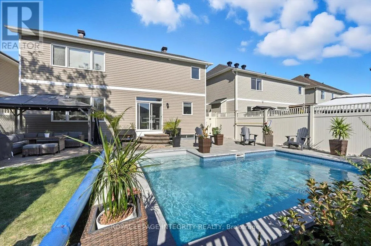 Cross Streets: Valin/Provence. ** Directions: Innes, north on Provence, right on Valin, left on Luesby Crescent. OH Sun March 1st 2-4pm. Welcome to 1110 Luesby Crescent - a stunning 6 bedroom, 4 bathroom home with backyard oasis located on quiet street in the heart of Fallingbrook, one of Orleans most established and family-friendly neighbourhoods! Pull up the driveway that can easily accommodate 4 cars, providing access to the double car garage and interlock walkway leading you to the welcoming foyer where you'll get the first glimpse of your beautiful main floor with functional layout. Gleaming hardwood floors guide you through the living room and dining room with serving bar and wine fridge, before making your way to the true heart of the home, the entertainer's dream kitchen, offering tons of cabinets and counter space, stainless steel appliance, walk-in pantry, beautiful backsplash and granite counters and large center island with tons of seating overlooking the family room with cozy fireplace, and patio doors giving access to the fully fenced south-facing backyard with in-ground heated salt water pool (2021), interlock sitting area with gazebo and landscaping - the perfect place to entertain or unwind after work! Completing the main floor is a great size office, partial bathroom and access to the double car garage. Upstairs, the hardwood continues into the sizeable primary bedroom with views of the backyard, great size walk-in closet and 4 piece ensuite with glass shower and corner soaker tub. An additional 4 great size bedroom, a full bathroom with heated floors and dedicated laundry room complete in the basement. The fully finished basement offers a massive versatile family room, a sixth bedroom, full bathroom and tons of storage. Located close to excellent schools, parks, transit, and shopping, this home delivers the perfect blend of comfort, space, and location. (id:27476)