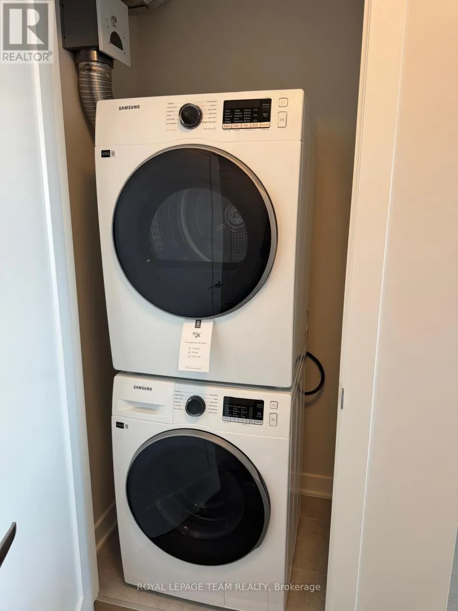Cross Streets: main street and Hazel street. ** Directions: North-East. Welcome to Unit 803 at 360 Deschâtelets Avenue in prestigious Greystone Village - where refined riverside living meets urban accessibility.This elegant 1-bedroom, 1-bathroom residence showcases a bright open-concept layout enhanced by soaring ceilings and dramatic floor-to-ceiling windows that flood the space with natural light. From the 8th floor, enjoy sweeping views and a sense of elevated privacy rarely found in rental living.The contemporary kitchen is beautifully appointed with quartz countertops, sleek cabinetry, and premium appliances, flowing seamlessly into the spacious living and dining area - ideal for both entertaining and everyday comfort. Step onto your private balcony and unwind while taking in the surrounding neighborhood views.The generously sized bedroom offers ample closet space and a tranquil retreat, while the spa-inspired bathroom features modern finishes and clean, timeless design. In-suite laundry adds everyday convenience, and the unit is finished with high-quality flooring throughout.Residents enjoy access to exceptional building amenities including a fully equipped fitness centre, rooftop terrace, stylish party room, and landscaped pathways along the Rideau River just outside your door.Perfectly located steps to scenic walking and biking trails, cafés, shops, and only minutes to the Glebe, Lansdowne Park, and downtown Ottawa - this is sophisticated city living in one of Ottawa's most sought-after communities.Available April 1st. Schedule your private viewing today. (id:27476)