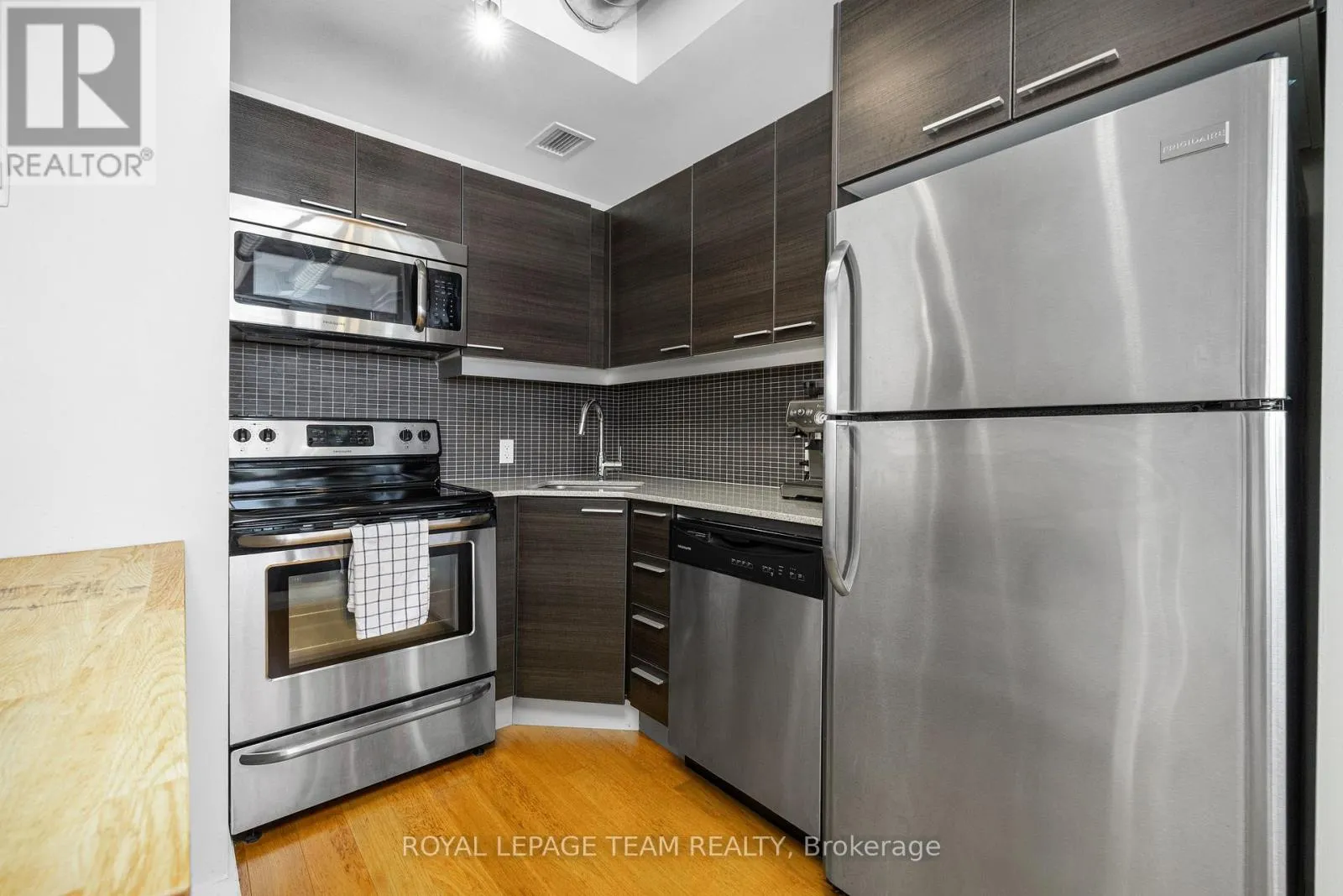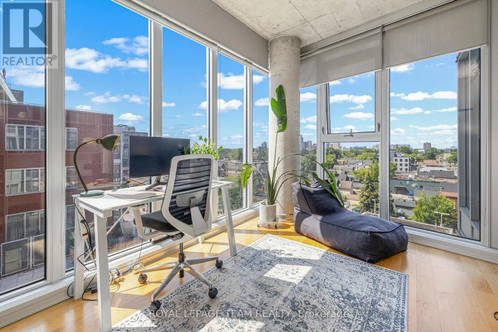 Cross Streets: Bank St and Gladstone Ave. ** Directions: Corner of Bank St and Gladstone Ave. First time offered by the original owners! This rare Madrid layout in Central 1 offers one of the most unique and desirable floor plans in the building. This stunning 1 bed + den condo features sweeping southwest-facing views, floor-to-ceiling windows, and a sun-soaked private balcony perfect for morning coffee or evening unwind. The industrial-chic aesthetic includes exposed concrete ceilings, ductwork, and columns, paired with warm hardwood floors and sleek finishes. The modern kitchen boasts stainless steel appliances, flat-panel cabinetry, tile backsplash, and breakfast bar seating. A bright den offers ideal WFH potential, while the spacious bedroom includes generous closet space. The bathroom is fresh and contemporary with a deep soaker tub and stylish vanity. Private storage locker included and parking is available for an additional price. Enjoy top-tier amenities: concierge, gym, party room, theatre, and courtyard. Exceptional value in one of Ottawas most walkable neighbourhoods. Plan to visit soon! (id:27476)
