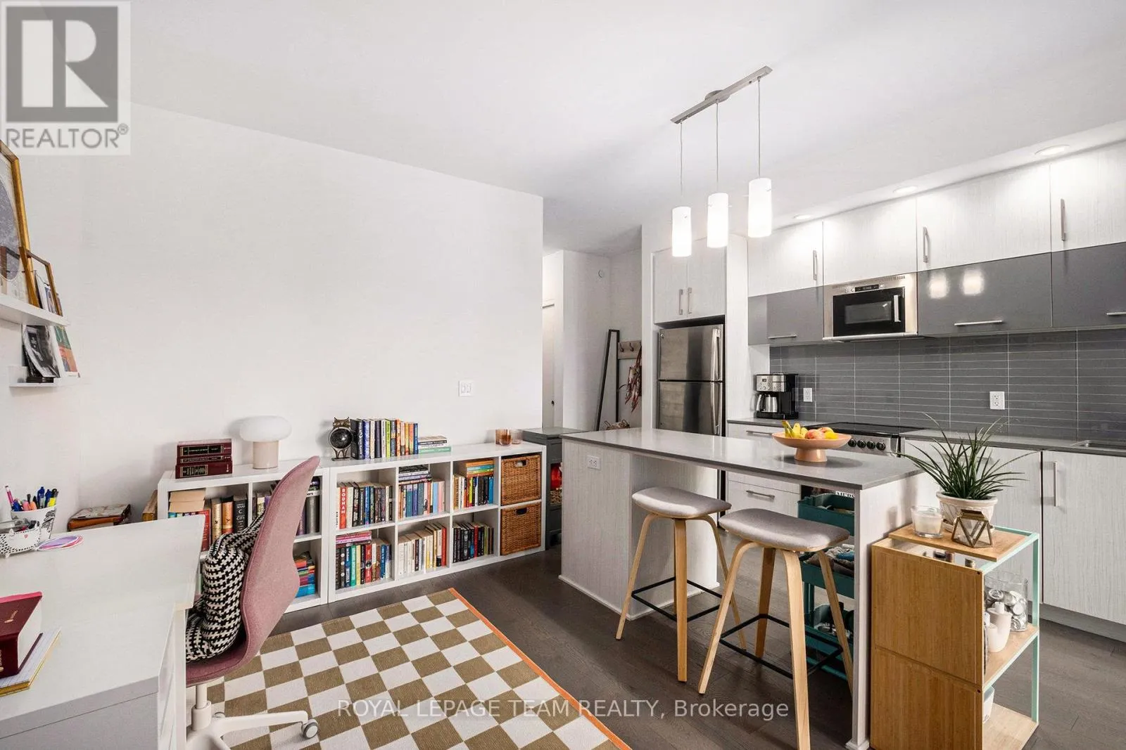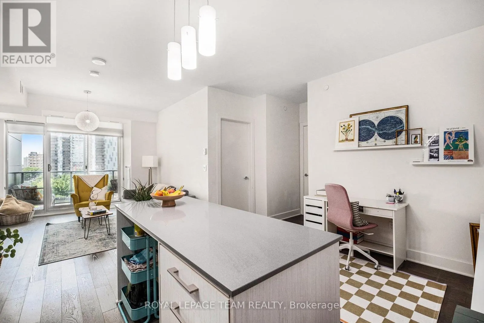 Cross Streets: Bay Street & Nepean Street. ** Directions: Somerset St W to Bay St. Welcome to The Bowery, where modern design meets downtown convenience. This spacious 1 bedroom, 1 bathroom west-facing unit overlooks a quiet school and low-rise buildings, offering open sunset views and a peaceful setting in the core. Floor-to-ceiling windows fill the open-concept layout with natural light, complemented by a large balcony and flexible bonus space. Features include hardwood flooring, quartz countertops, stainless steel appliances, in-unit laundry, and a storage locker. Located beside the elevators with only one adjoining balcony, this is among the quieter units in the building. Amenities include an indoor pool, fitness centre, sauna, guest suites, and a party room with terrace and BBQs. Ample visitor parking on site. Condo fees include heat, water, building insurance, and reserve fund contributions. Steps to the LRT, grocery store, Parliament, Lebreton Flats, parks, and green space. Ideal for first-time buyers or investors seeking a stylish condo in a sought-after building. (id:27476)