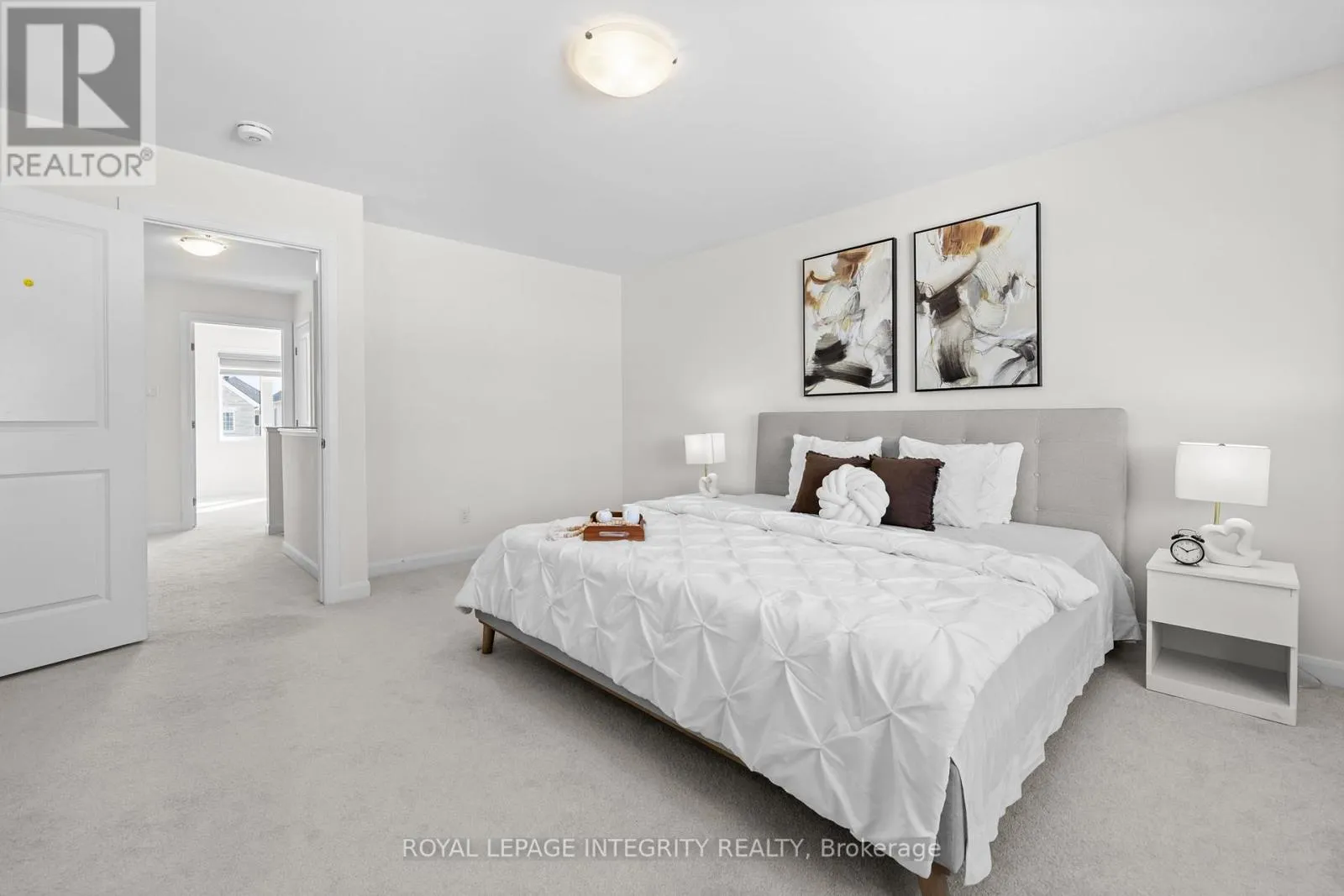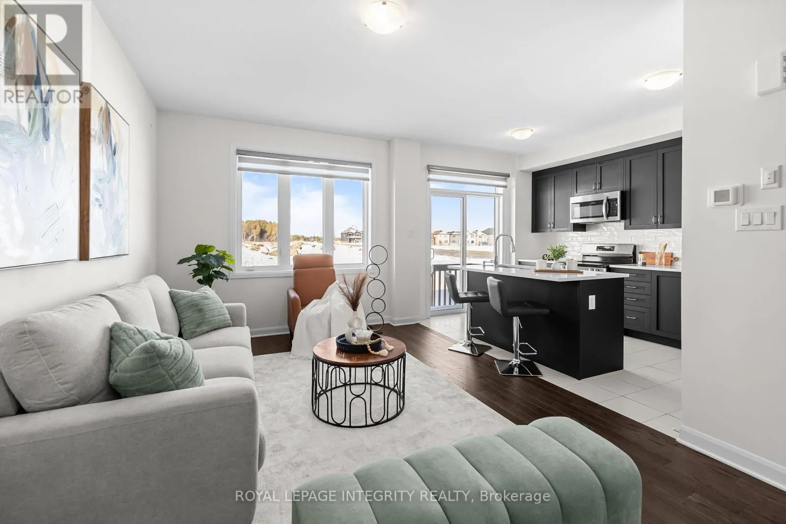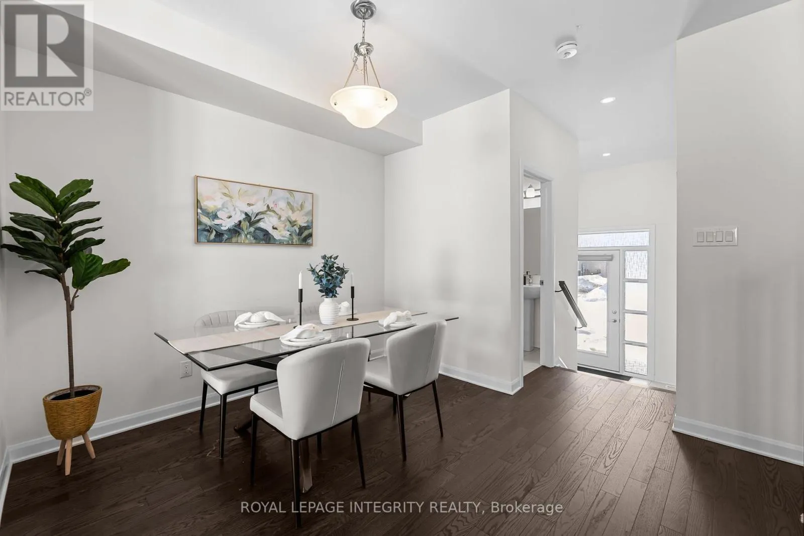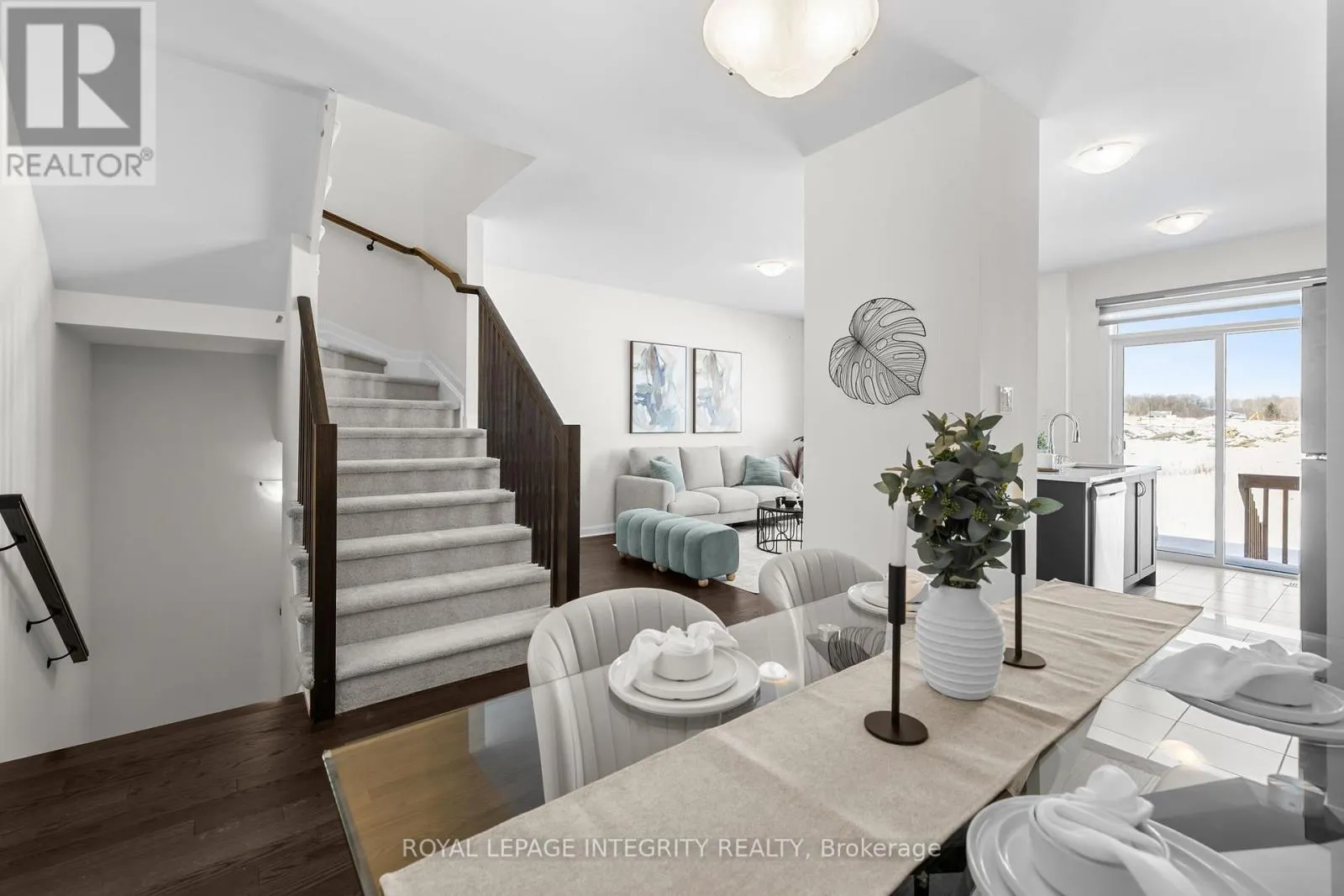 Along March Road to west, turn right on Invention Blvd. property is on the left Step into this beautifully designed and modern 3-bedroom, 3-bathroom townhome (2024 build), enhanced with over $25,000 in premium upgrades.The inviting main level features a bright, open-concept layout filled with natural light, creating a warm and welcoming atmosphere. Enjoy distinct dining and living areas, perfect for both everyday living and entertaining. The upgraded kitchen is a chef's dream, complete with stainless steel appliances, quartz countertops, a stylish tile backsplash, a large island with breakfast bar, and a pantry for added storage and convenience.Upstairs, the spacious primary suite offers a walk-in closet and a luxurious 3-piece ensuite. Two additional generously sized bedrooms and a full bathroom complete the second floor.The finished lower level provides versatile space ideal for a family room, home office, or entertainment area.Located in the highly sought-after community of Kanata North, this home is just minutes from upcoming schools, parks, and all essential amenities-making it a perfect blend of modern living and prime location. (id:27476)