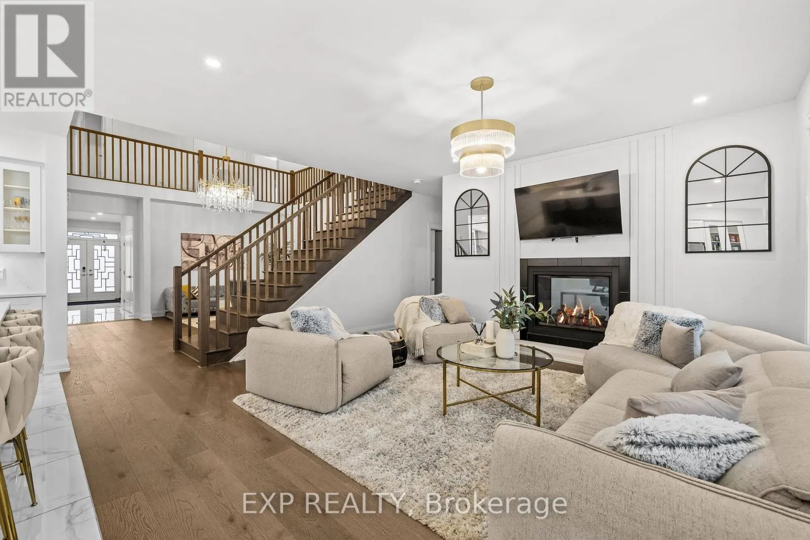 Cross Streets: Big Dipper St and Chorus Dr. ** Directions: River Rd turn onto Solarium Ave, turn onto Big Dipper St, turn onto Chorus Dr, on your right side. ARCHITECTURAL FLOW AND EVERYDAY LUXURY meet in this masterfully designed residence where every floor tells a story of scale and connectivity. The centerpiece is a stunning OPEN-TO-ABOVE LIVING ROOM anchored by a beautiful GOLDEN CHANDELIER that highlights the home's incredible height, while MAPLE WRAP-AROUND RAILINGS from the second level ensure every room feels connected to the heart of the home. The kitchen is a true showstopper, featuring a MASSIVE ISLAND WITH WATERFALL EDGES ON BOTH SIDES, seamlessly BUILT-IN APPLIANCES, and an endless array of custom drawers and pull-outs. Designed for the modern professional, the main floor offers TWO DENS PLUS A FULL BATHROOM, providing total flexibility for DUAL HOME OFFICES or MULTIGENERATIONAL LIVING. Upstairs, the layout is impressively spacious with FIVE BEDROOMS AND THREE FULL BATHS, including a luxurious 5-PIECE ENSUITE, a SECOND ENSUITE, and a JACK-AND-JILL BATH, while the primary suite features a WALK-IN CLOSET THE SIZE OF A BEDROOM. The FINISHED BASEMENT is built for entertainment with a MOVIE SECTION, PLAY AREA, AND LOUNGE, plus a massive unfinished wing for a HOME GYM OR STORAGE. Step outside to a LARGE DECK AND FULLY FENCED YARD in prime RIVERSIDE SOUTH, located minutes from the RIDEAU RIVER trails and boating, the LRT, and the future TOWN CENTRE. YOUR SEARCH ENDS HERE. (id:27476)