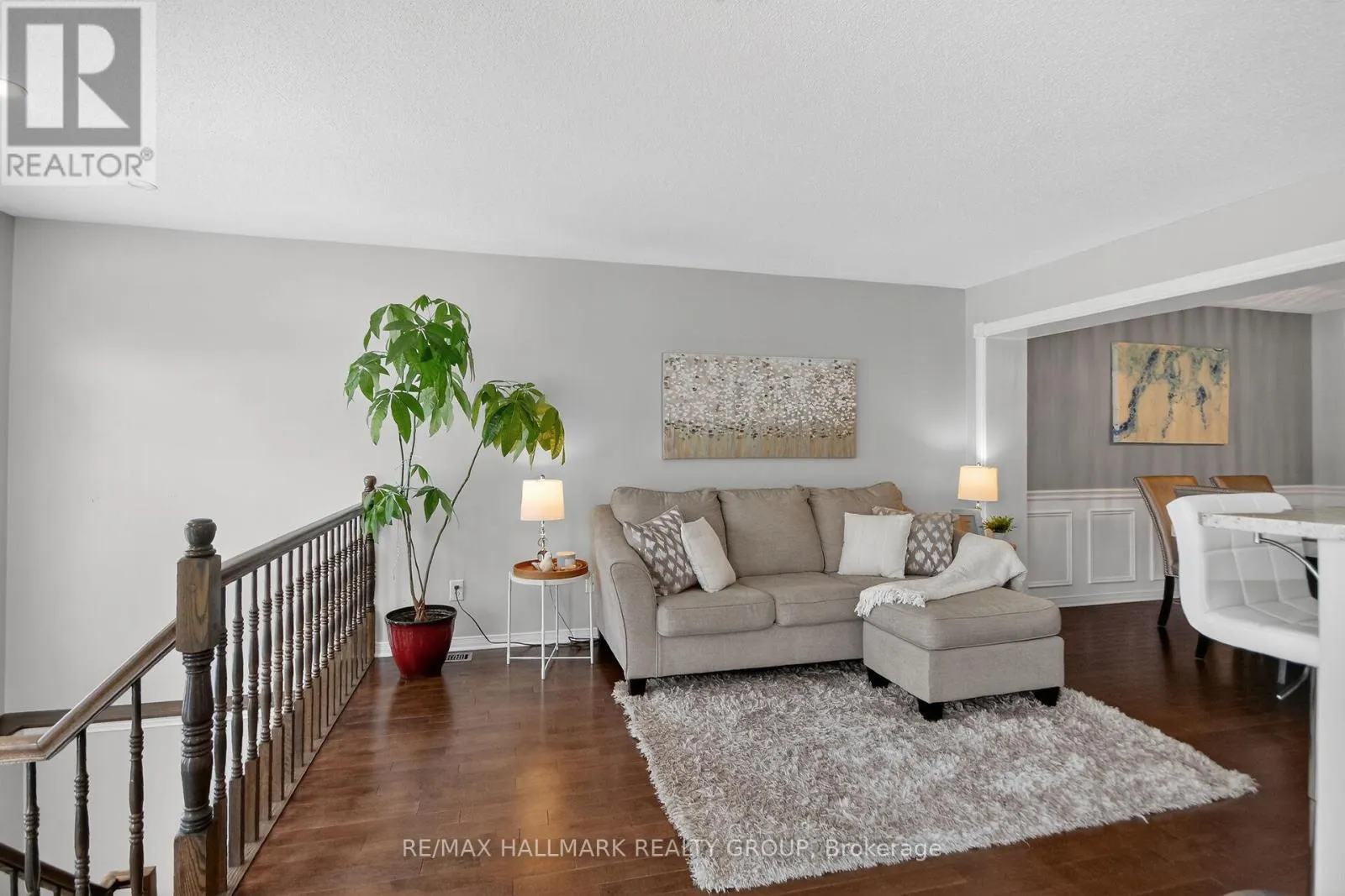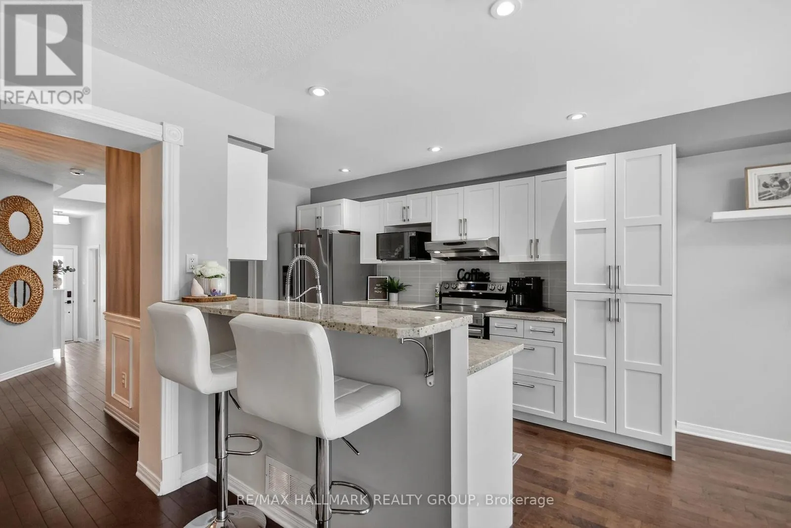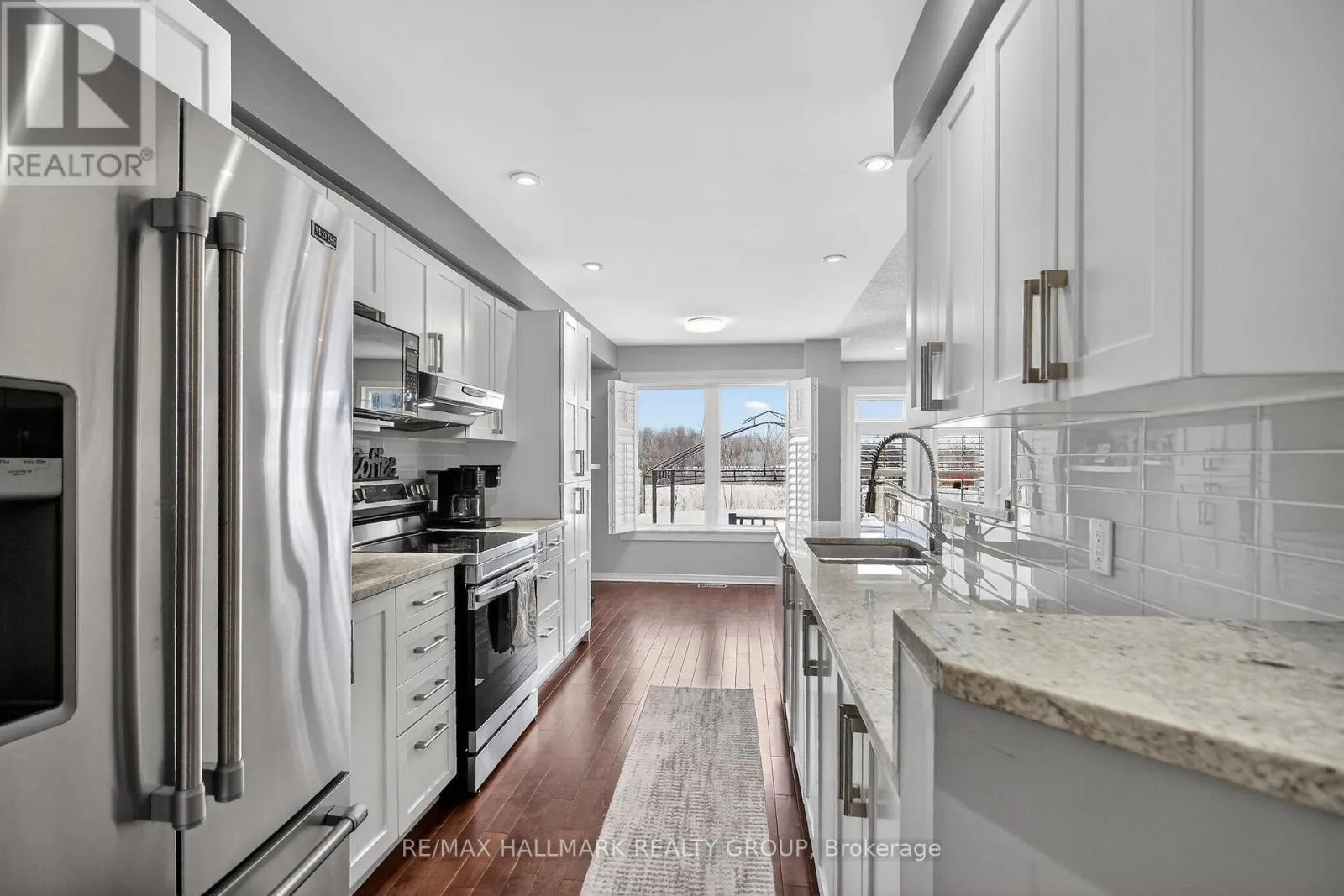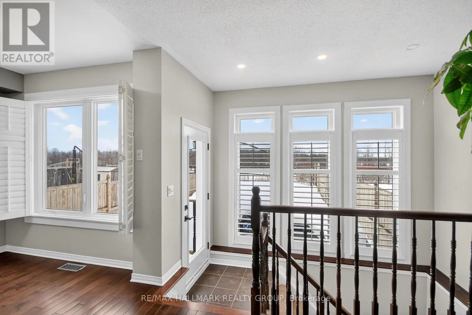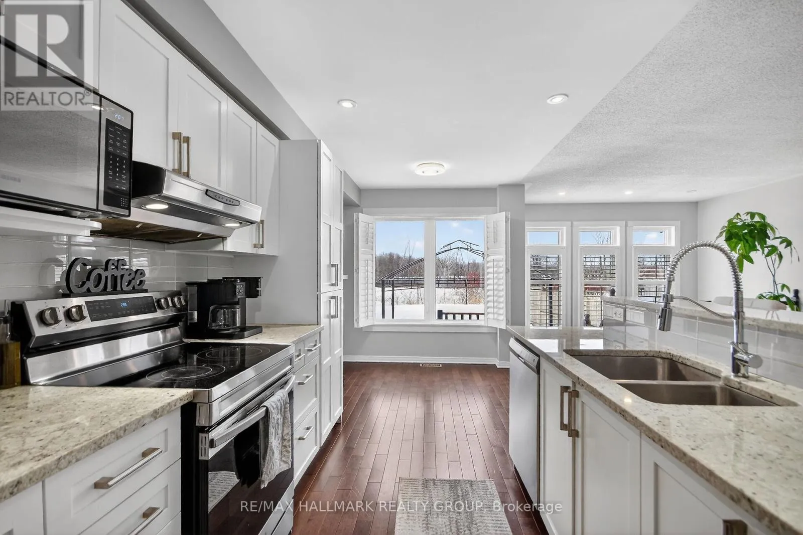 Cross Streets: Trim Road. ** Directions: Trim Road, North onto Valin, Right onto Trail Side Circle. Enjoy inspirational lifestyle living in this Luxurious End Unit Townhome with No Rear Neighbors nestled in the sought-after community of East Village in Orleans. Located minutes from high-rated schools, parks, shopping, and the renowned Millennium Sports Park. This luxurious townhome combines comfort, space, and convenience is perfect for families or first-time buyers. No Rear Neighbors means added privacy and serene views, making this home stand out from the rest. Inside, you'll find luxurious finishes and spacious living spaces that features 3 good size bedrooms, 2 1/2 bathrooms, and a partially finished basement - Ideal for modern family living. The main floor showcases hardwood flooring and a bright, inviting living space layout. The luxurious kitchen features a pantry and includes "rich" granite countertops, beautiful glass tile backsplash and a generous breakfast eat-in area to quietly enjoy breakfast while overlooking gorgeous views of the green space behind your backyard - the elegant dining room features beautiful decor and a luxurious modern light fixture - the living room features a large wall of bright windows overlooking the breathtaking green space at the back of the townhome. The second floor features sparkling new laminate/vinyl flooring - a primary bedroom retreat that features a bonus room great as a private office or private study, walk-in closet, and a private Ensuite bathroom "oasis" that features a soaker tub & separate stand up shower Plus 2 good size bedrooms. The partially finished basement boasts quality laminate flooring and offers ample room for a home theatre, playroom, or another home office. The good size backyard features no rear neighbors and a good size deck. Special highlights include new carpet in both stairways, new laminate/vinyl flooring on the 2nd floor, all windows including the front & back door have been replaced. Don't miss your chance to own this beautifully maintained, move-in ready luxurious townhome/Flexible Posses (id:27476)
