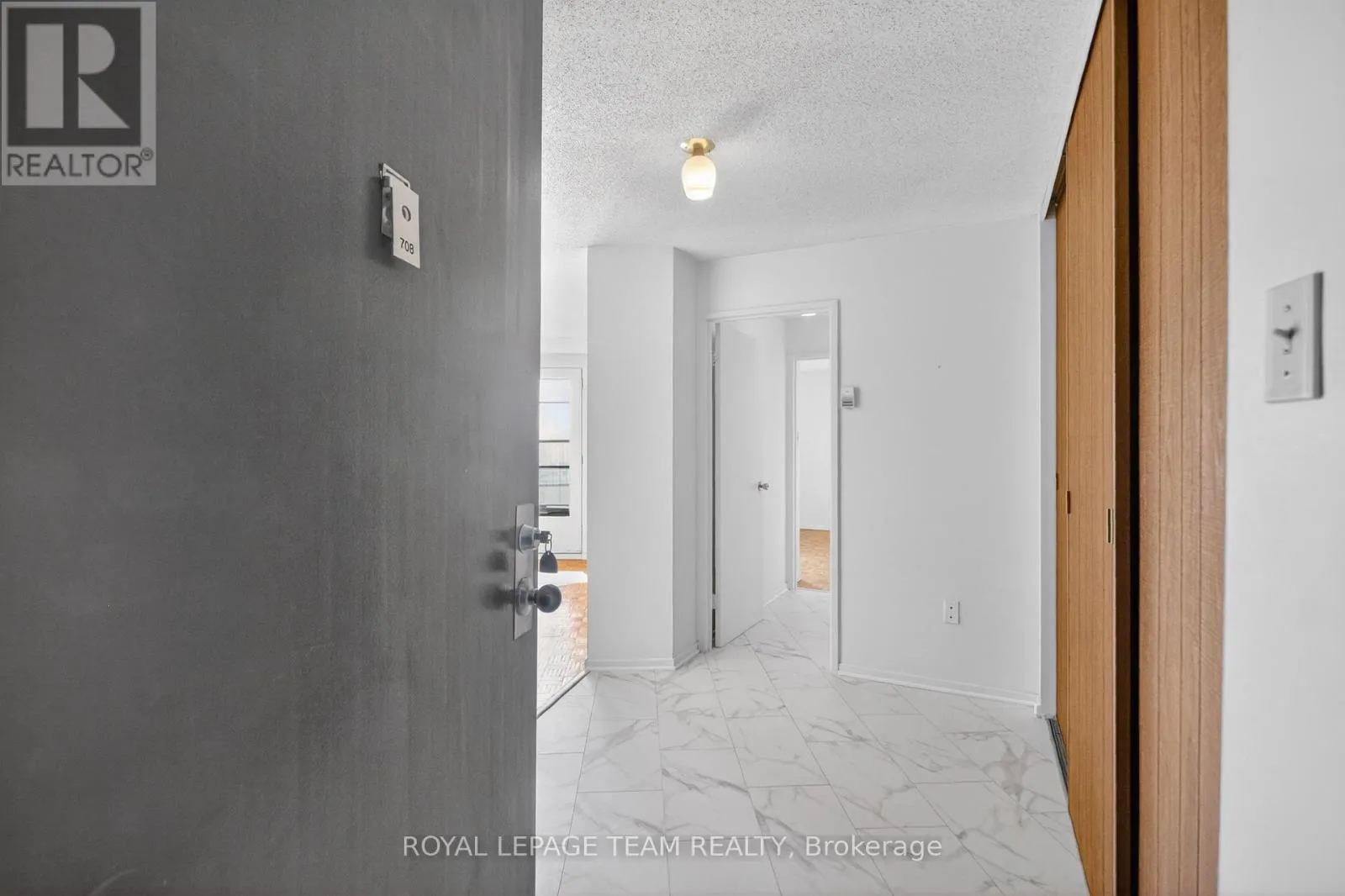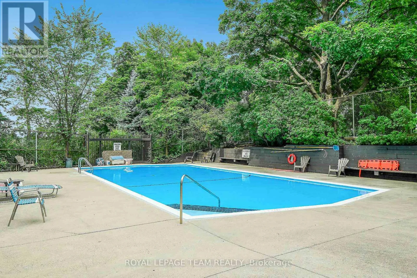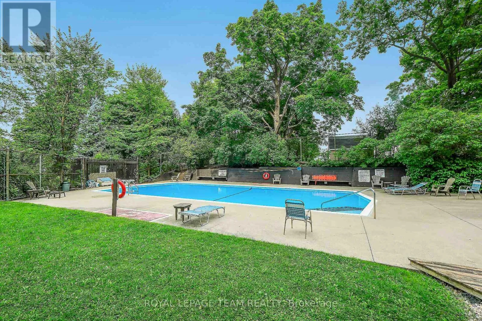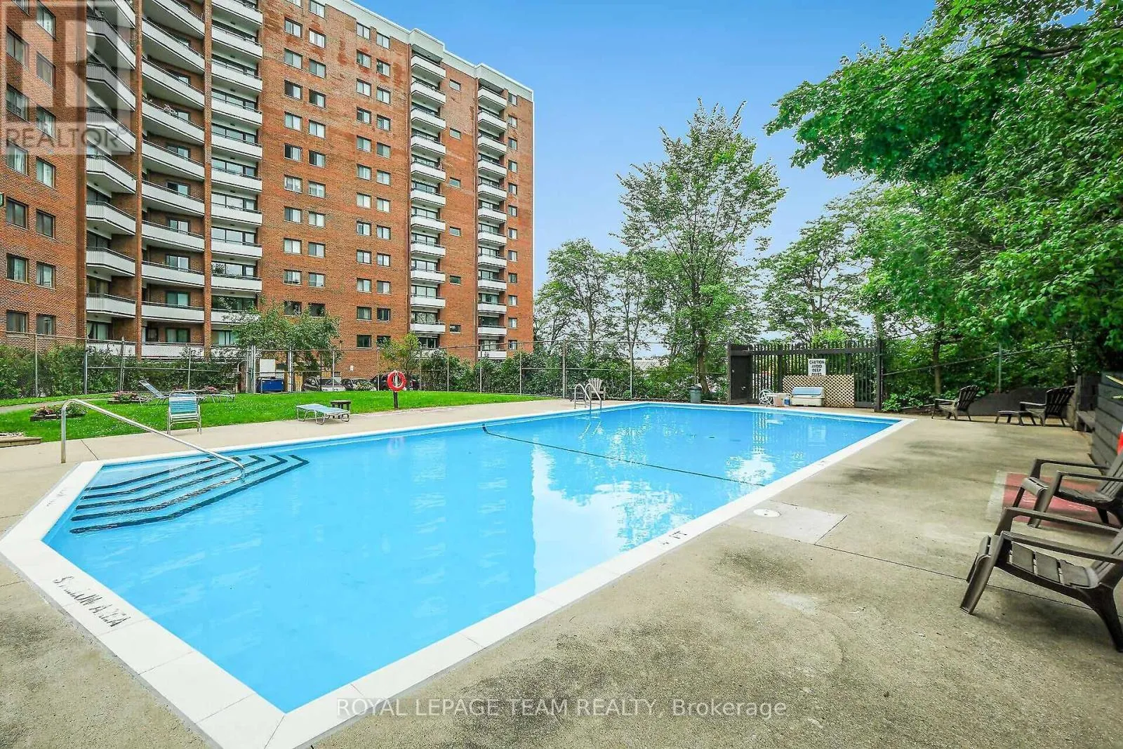 Cross Streets: Meadowlands Drive / Chesterton Drive. ** Directions: Merivale Road to Meadowlands Drive East and Right on Chesterton Drive. 708 - 20 Chesterton Drive. Rarely offered 1 bedroom with a sunny South West balcony. Flooded with natural light. It's not often you can find such an affordable home within walking distance of all amenities. Outdoor parking space # 85. No carpeting - there is parquet hardwood flooring and NEWLY installed vinyl flooring. The condominium fee includes: Heat, Hydro and Water. The only other bill is the property tax which is very affordable. Why rent when you can own in this great area surrounded by conveniences and transit. Building amenities include: out door swimming pool, roof top terrace with views over the city, gym, sauna, party room, library, billiards room and workshop. Photos are from when the property was previously listed. Immediate Possession available. Some photos have been virtually staged. (id:27476)