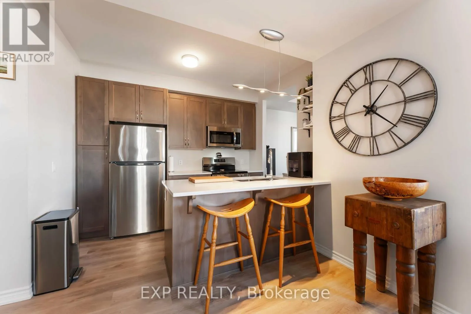 Cross Streets: Codd's Road. ** Directions: Right on Montreal Road, left on Cobbs Road, right into Hemlock Road. Beautiful 1-bedroom plus den home featuring a spacious wraparound patio and over $30,000 in high-end upgrades. This unit offers luxury vinyl tile (LVT) flooring throughout, a modern kitchen with quartz countertops, upgraded cabinetry, and a double sink. The full appliance package includes a stove, fridge, dishwasher, microwave, and in-suite washer & dryer. The bathroom has been thoughtfully upgraded with new flooring, quartz countertops, updated light fixtures, and a medicine cabinet add-on. Enjoy the convenience of a deep fridge and the comfort of quality finishes throughout. A perfect blend of style and functionality in a highly desirable building. (id:27476)