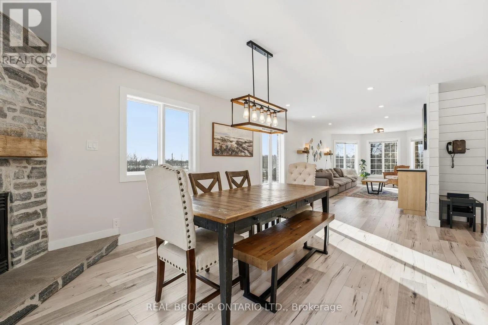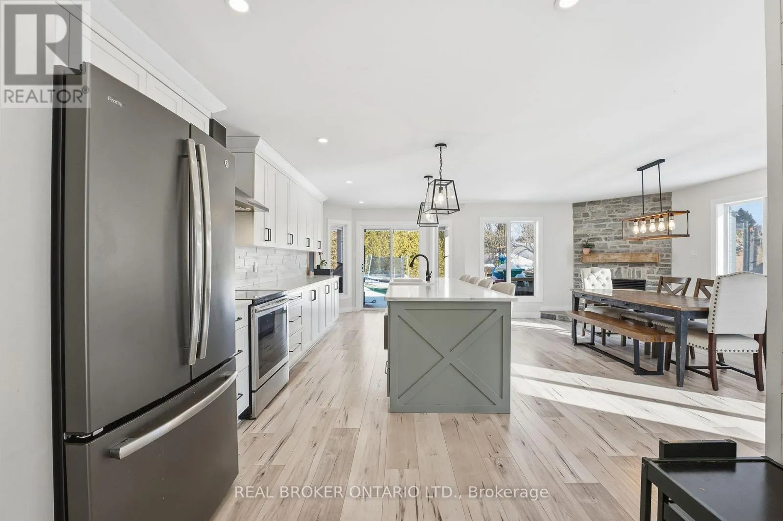 Cross Streets: Sutherland Drive & Rideau Valley Drive North. ** Directions: Head north on ON-416 N. Take exit 49 for Roger Stevens Dr. Roger Stevens/North Gower/Osgoode. Turn right onto Roger Stevens Dr/Ottawa Regional Rd 6. Turn left onto Rideau Valley Dr N/Ottawa 13 (signs for Ottawa Road 13). Turn right onto Sutherland Dr. Welcome to an exceptional country property just 2 minutes from the heart of Manotick: offering not only a beautifully renovated bungalow, but an incredible 25' x 40' insulated detached shop with its own 200-amp service and large propane heater ready for connection, hydro meter and 10' x 10' door, this space is ideal for car enthusiasts, contractors, hobbyists, or anyone looking to operate a home-based business with privacy and flexibility. The separate setup allows you to work from home without sacrificing your personal space: a rare and valuable opportunity. The stunning 4 bdrm home is set on approximately 1.3+ acres near the Rideau River and the Carleton Golf & Yacht Club, it offers a gorgeous main level AND a stunning in-law suite with a walkout- perfectly suited for families, multigenerational living, or income potential. On the main level you'll find a warm, open-concept living and dining area anchored by a striking stone gas fireplace. The renovated kitchen (2018) is both functional and beautiful, featuring stainless steel appliances, quartz countertops, extended cabinetry, and a generous island with breakfast seating. The spacious primary suite includes a 3-piece ensuite, two additional bedrooms and a full bath complete the main level. The fully finished walk-out basement provides a separate living space with its own renovated kitchen (granite counters), bedroom, office, and full bath - ideal for extended family, guests, or rental potential - with direct access to a private patio. Outside, enjoy expansive yard space, a large deck, a stone patio with firepit, and mature privacy: all just minutes to Manotick Village and only 3 minutes to Highway 416. Close to parks, schools, shops, restaurants, golf, and two marinas, this location offers the perfect blend of country living and village convenience . A rare opportunity to own a move-in ready bungalow with acreage, versatility, and exceptional workspace in one of Ottawa's most desirable communities. (id:27476)