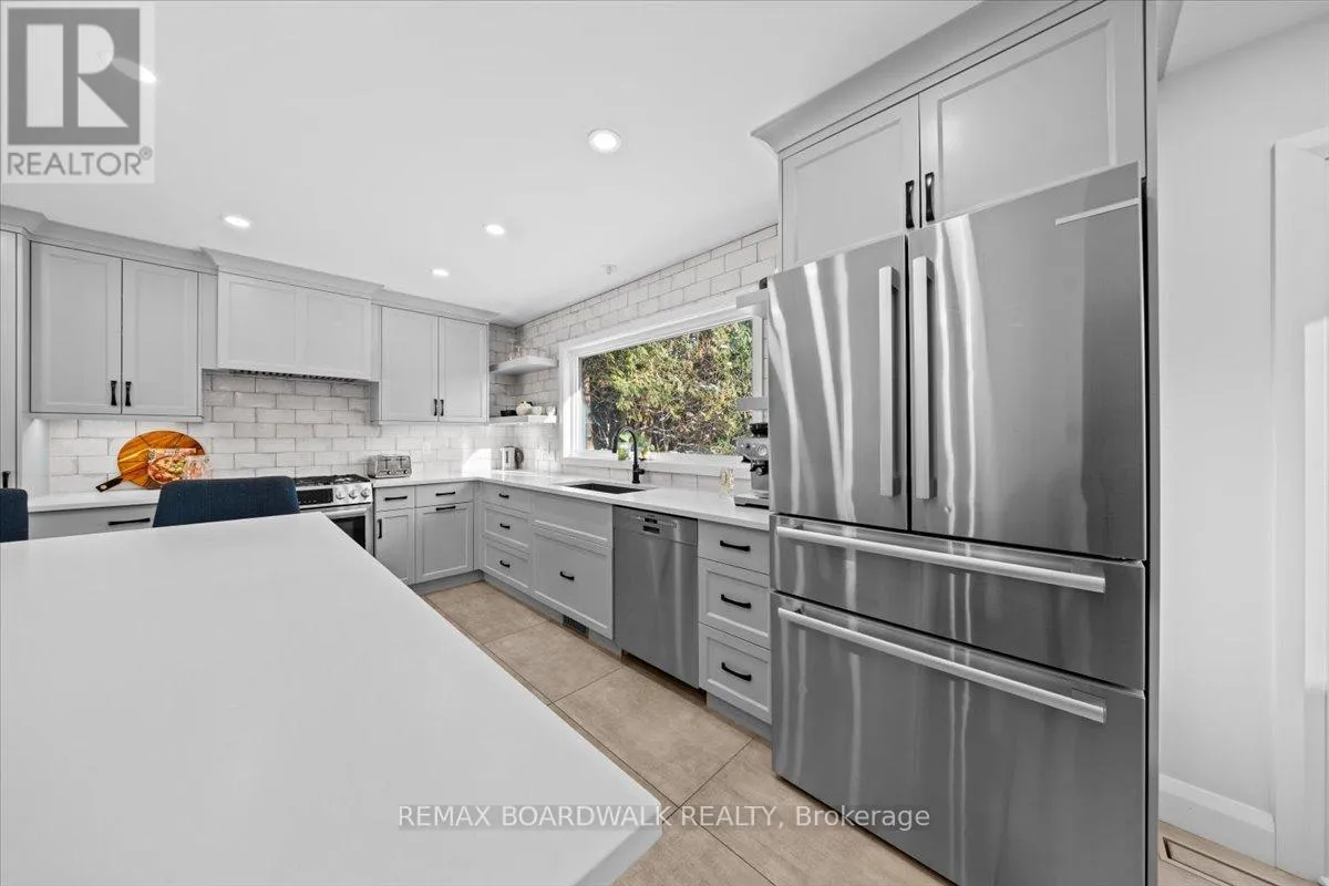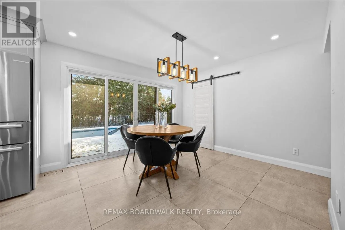 Cross Streets: Beaverbrook. ** Directions: Take Lismer and turn on to Gagnon court. Remarkable 4 bed, 3.5 bath single family home sitting on a quiet cul de sac in the sought after neighbourhood of Beaverbrook, Kanata. Oversized driveway w/ double car garage and interlock stone walkway leading to front entry with glass panelled front door w/ soldier window. Extensively renovated kitchen w/ oversized center island, quartz countertops, stylish floor to ceiling shaker cabinets w/ soft close, sleek black hardware, recess pots lights, top of the line stainless steel appliances w/ gas stovetop, subway tile backsplash. Walk-in pantry w/ glass sliding barn door for additional storage. Living room w/ flat ceilings, wood burning fireplace and large bay windows flooding the space w/ natural light. Dining room w/ modern oversized tile flooring and glass sliding doors to access the backyard. Powder room w/ upgraded quartz countertop vanity. Main floor interior access to the garage off of the spacious mudroom. 4 generously sized bedrooms upstairs; primary bedroom w/ large wall closet and 3 piece ensuite w/ heated tile flooring, stand up glass shower and stylish hexagonal tilework. Second full bath w/ quartz countertop double vanity and sinks, and linen closet complete the second floor. Fully finished basement includes a large rec room w/ wide plank vinyl flooring and recess pot lights as well as an additional full bath w/ stand up shower. Lower level laundry and plenty of storage space. Spacious private backyard w/ in ground heated salt water pool, gazebo w/ shingled roof. The neighbourhood has gorgeous mature trees and is located just minutes away to top rated schools, several parks and walking trails, and all amenities. (id:27476)