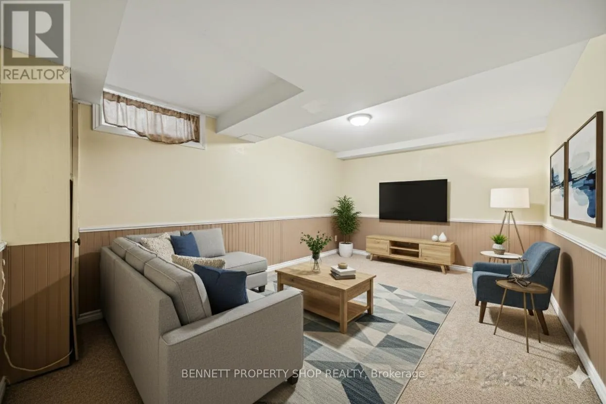 Cross Streets: Tyrell Place / Tybalt Crescent. ** Directions: Moodie Drive to - Left on Tyrell Place - Right on Tybalt Crescent. Perfect starter home in a well established, family friendly community. This well maintained freehold 3 bedroom, 2 bathroom townhome offers comfort, thoughtful updates, and true move in ready appeal. The bright main level features pot lights added in 2021, creating a warm and inviting living space. Enjoy peace of mind with a gas furnace installed in 2014 that has been professionally serviced annually, along with a roof replacement including flat roof and shingles completed in 2015.Outdoor living is easy with a new deck and updated siding completed in 2021, ideal for summer evenings. Living room windows were replaced in 2023 for improved energy efficiency. Additional recent improvements include a new washer, garage door opener, and furnace serviced in 2024, followed by a refreshed kitchen in 2025 with new countertops and cupboard doors. New stove (2025), as well as new living room flooring. Ideally located with quick access to Highway 417, offering an easy commute to Kanata and downtown, and close to shopping, parks, schools, and transit. Convenient proximity to major federal and tech employment hubs along the Moodie Drive and Carling Avenue corridor, including the Department of National Defence, approximately a 5 to 10 minute drive. Set on quiet street with mature trees and a strong sense of community, this is an excellent opportunity for first time buyers or those looking to settle into a welcoming neighbourhood. 24 hours irrevocable on all offers. Some photos are digitally enhanced. (id:27476)