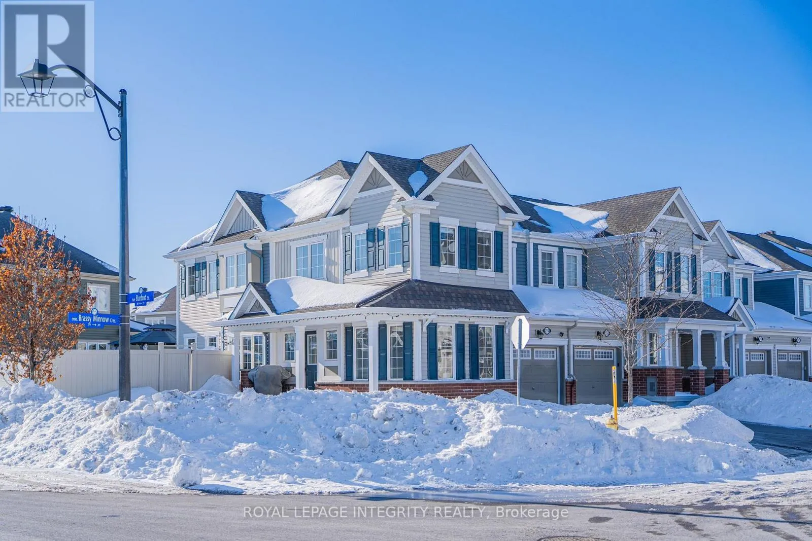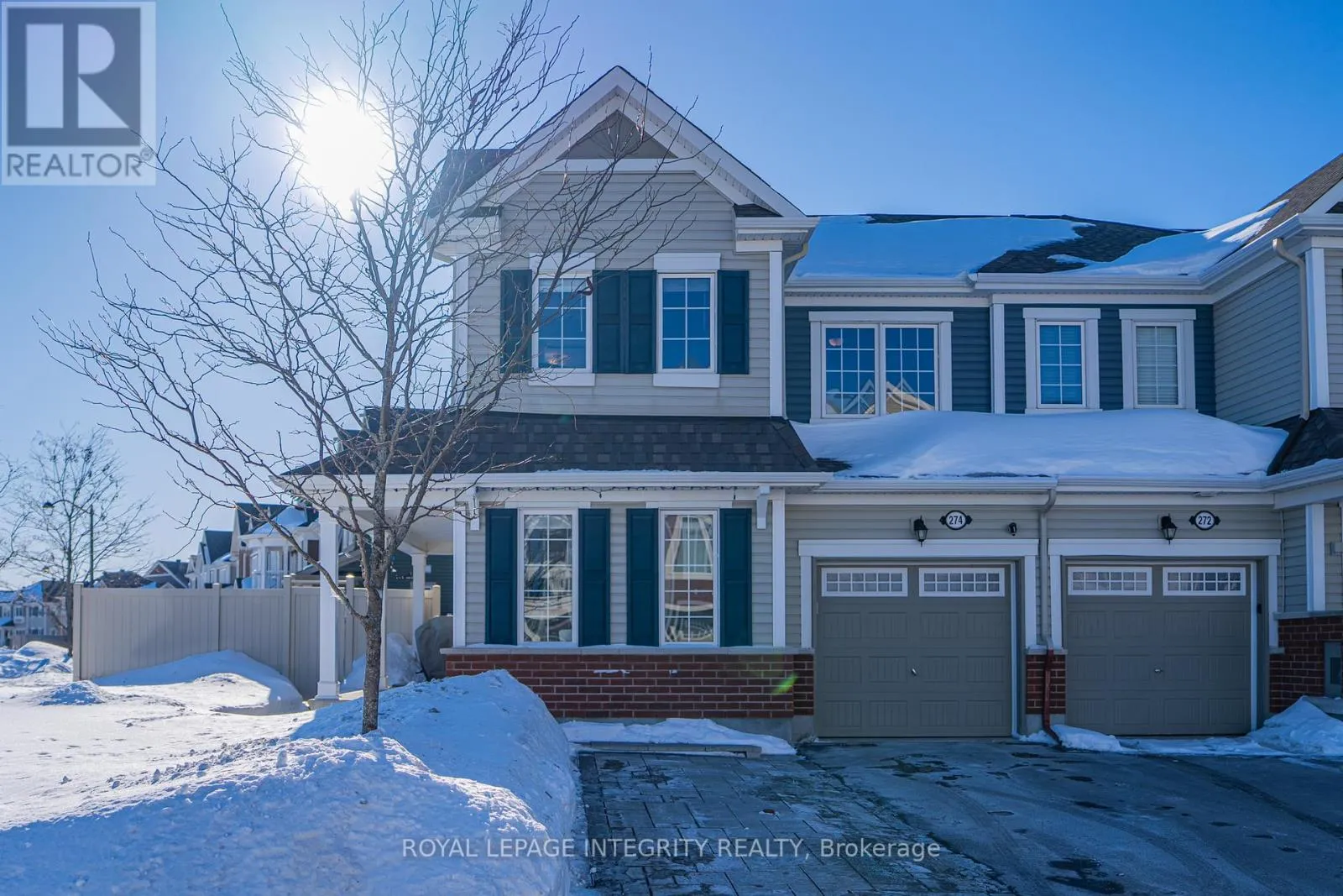 Cross Streets: Brassy Minnow Cres & Burbot St. ** Directions: From Greenbank Rd, turn onto Half Moon Bay Rd, turn onto River Run Ave and turn right onto Burbot St. The property is located on the corner of Brassy Minnow Crescent. Welcome to 274 Brassy Minnow Crescent in the heart of Half Moon Bay! This meticulously maintained end-unit townhome is ideally situated on a premium corner lot in a highly sought-after, family-friendly neighbourhood. Half Moon Bay PS is located directly across the street, offering exceptional convenience for growing families. The main floor features a bright and functional layout, highlighted by a versatile flex room that can easily serve as a home office, playroom, formal dining area, or guest space. The open-concept design creates seamless flow between the living and dining areas. The kitchen showcases a U-shaped layout with quartz countertops, providing generous preparation space and ample cabinetry for storage. Upstairs, three well-proportioned bedrooms, including a spacious primary retreat designed for comfort and relaxation. Two additional bedrooms offer flexibility for family members, guests, or a dedicated workspace. A convenient second-floor laundry area adds practicality and ease to daily routines. The fully finished basement expands the living space and includes a full 3-piece bathroom, making it ideal for a recreation room or guest suite. Step outside to your private backyard oasis. The fully fenced yard features an impressive 24 x 24 ft deck, a 12 x 10 ft gazebo. Perfect for family gatherings, entertaining guests, and hosting children's parties. A10' x 20' interlock extension enhances the front driveway, expanding parking to fit two vehicles.With its desirable corner location, larger yard, and thoughtful upgrades, this home presents a rare opportunity for families seeking both space and convenience. Located just minutes from Barrhaven Marketplace, Costco, grocery stores, restaurants, and everyday amenities. Enjoy easy access to public transit and major routes for convenient commuting. Close to parks, trails, community centres, and the Minto Recreation Complex. Move-in ready and perfectly positioned in one of Barrhaven's fastest-growing community. (id:27476)