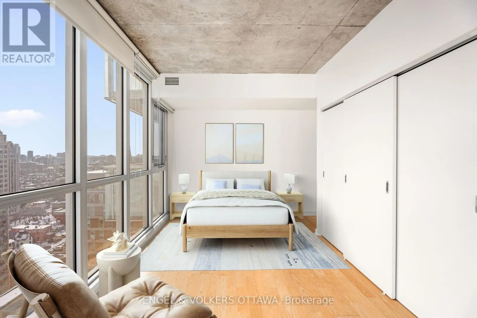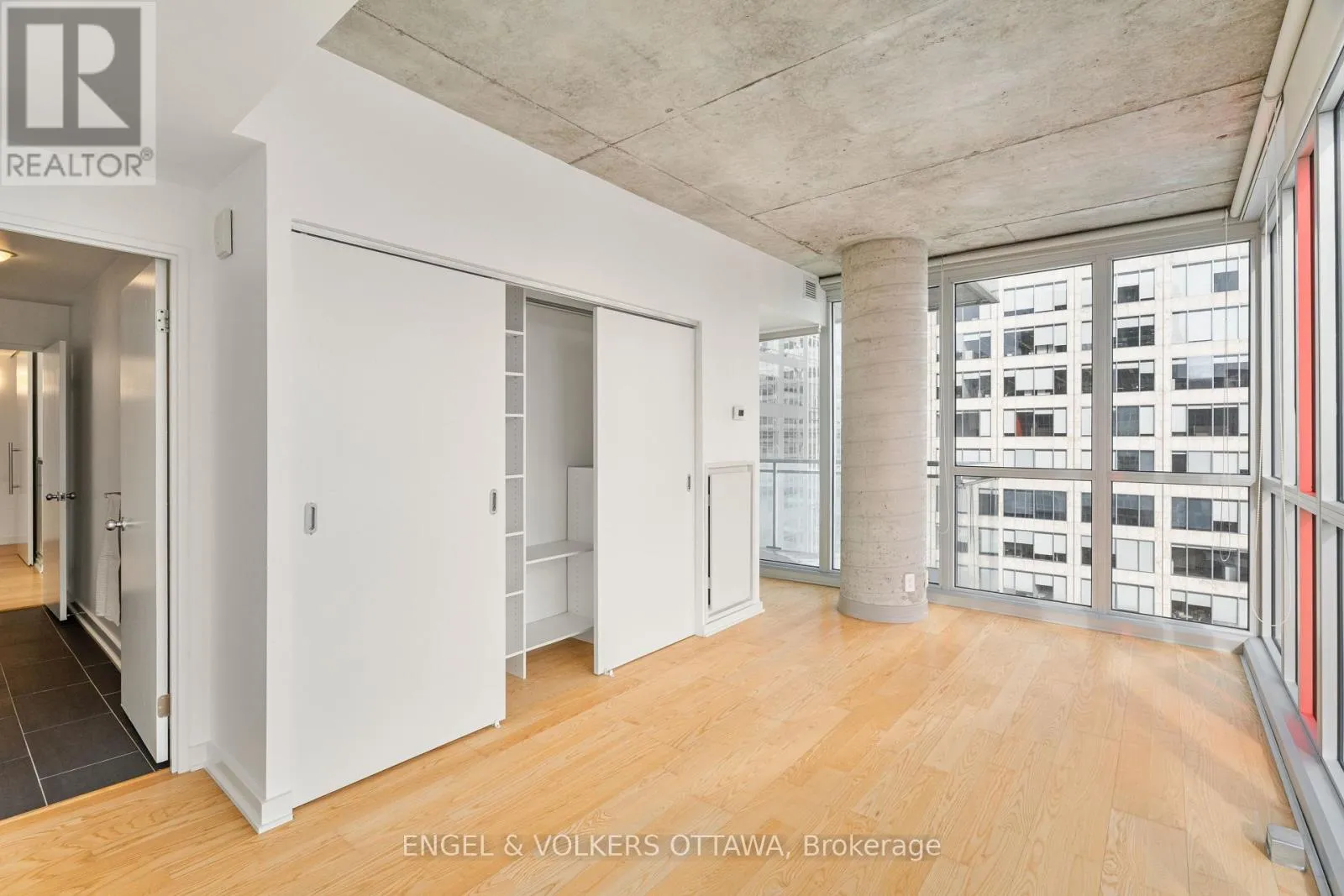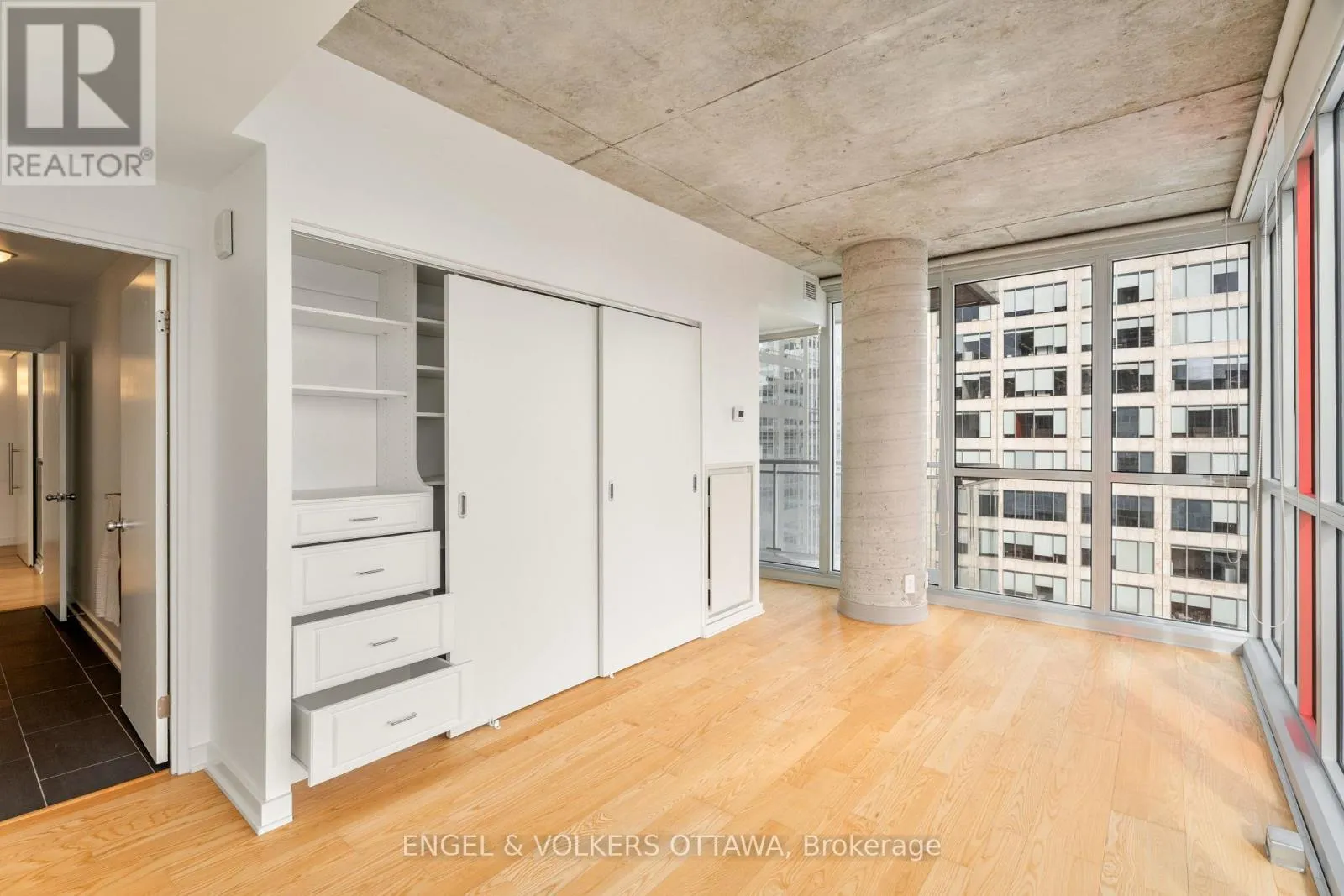 Laurier Ave and Bank Street Welcome to 1610-324 Laurier! A stylish south-facing 2-bedroom, 1-bath corner suite at The Mondrian offering bright interiors and elevated city views. Floor-to-ceiling windows span the open-concept living space, filling the home with natural light. The kitchen features stainless steel appliances, modern open shelving, and seamless flow into the living and dining areas. The spacious primary bedroom includes custom California Closets and convenient cheater ensuite access to the main bath. The second bedroom is perfect as a guest room or home office. Additional highlights include engineered hardwood flooring, custom blinds, excellent storage throughout, and in-suite laundry. Step out onto your oversized, private south-facing balcony with views over the Glebe, the Peace Tower, summer fireworks, and stunning sunsets. Building amenities include concierge services, an outdoor pool, terrace with cabanas, BBQ areas, party room, and a fully equipped fitness centre. Steps to Ottawa's best restaurants, cafés, LRT, Confederation Park, City Hall, and Parliament Hill. This location truly can't be beat! (id:27476)
