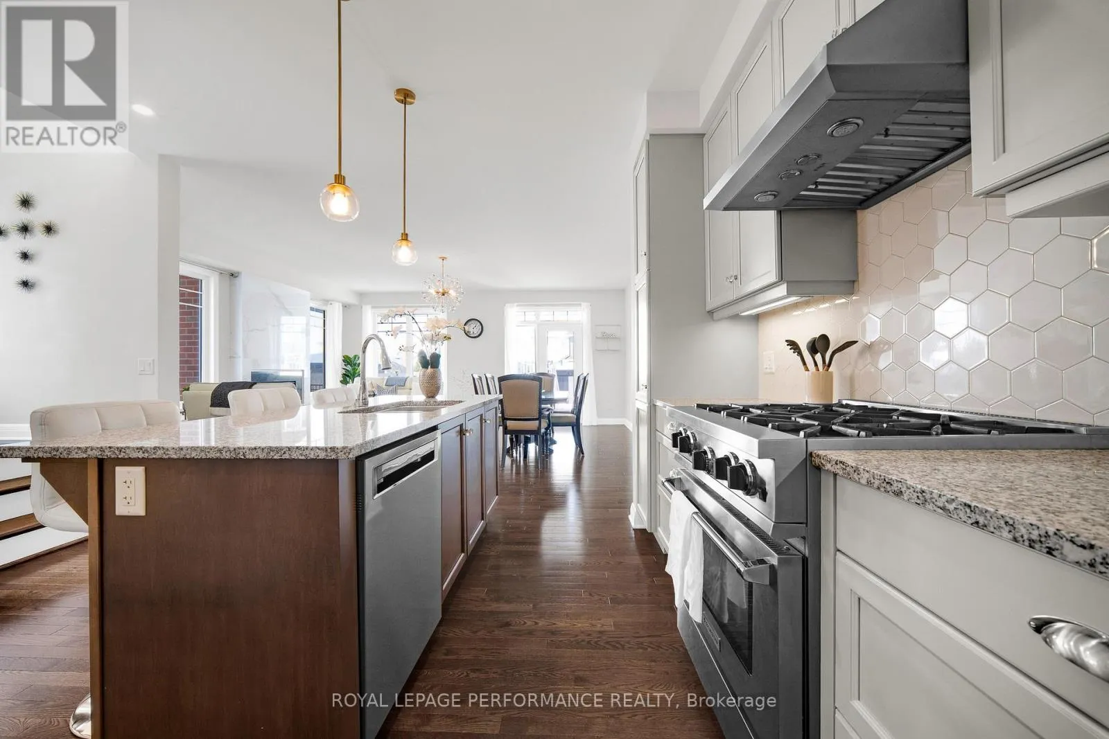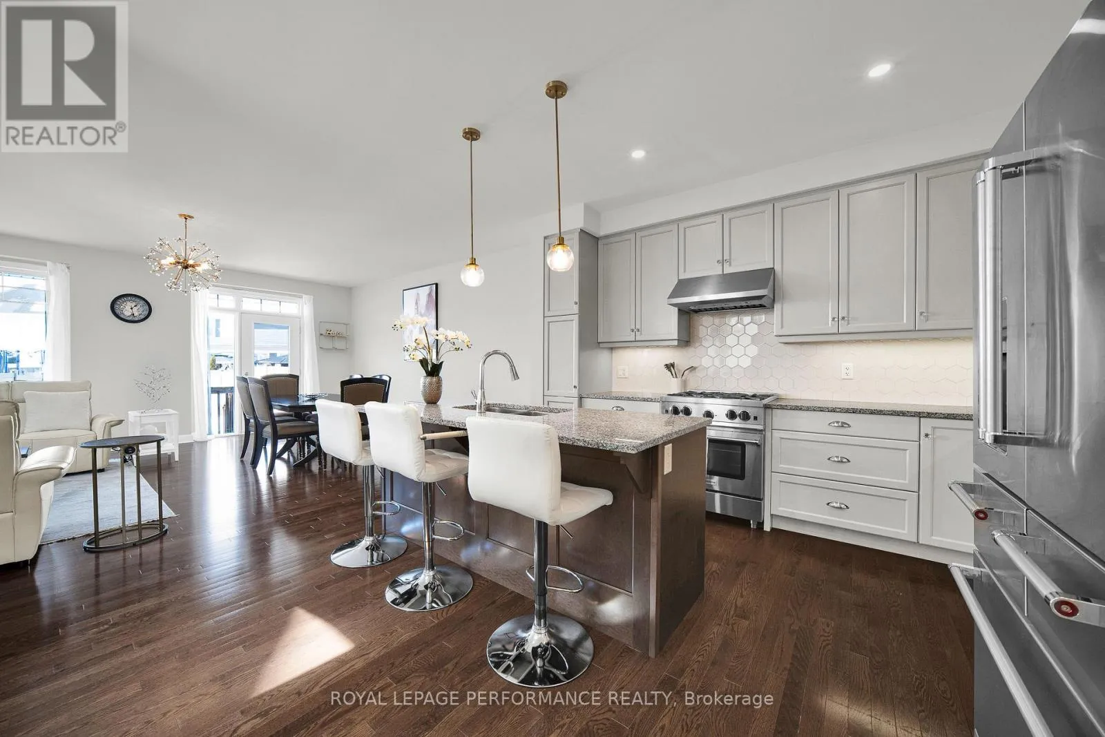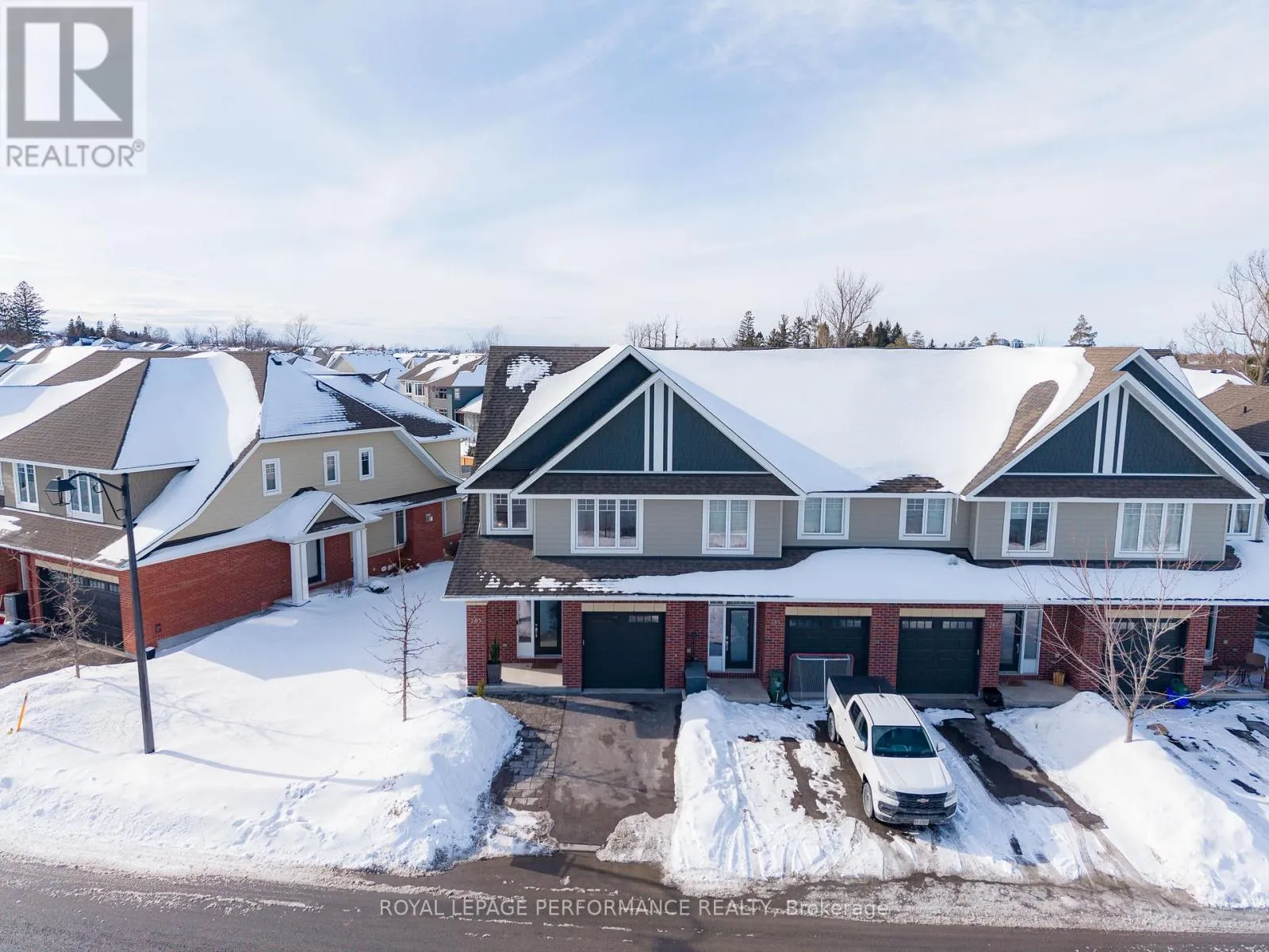 Longfields to Kilspindie. New Price!Welcome to 283 Kilspindie Ridge - a gorgeous Uniform-built end-unit townhouse nestled in the highly sought-after Stonebridge community. Situated on a rare pie-shaped premium lot, this home offers extra outdoor space, added privacy, and exceptional curb appeal - a true standout on the street.Step inside to a bright, open-concept main floor featuring hardwood flooring, elegant staircase, pot lights, and a spacious great room with a beautiful fireplace - perfect for entertaining or relaxing evenings at home. The gourmet chef-inspired kitchen boasts granite countertops, stainless steel appliances, ample cabinetry, and generous counter space ideal for family gatherings.Upstairs, the large primary retreat features hardwood flooring, two closets, and a luxurious 5-piece ensuite. Two additional well-sized bedrooms and a full bathroom complete the upper level.The finished basement provides excellent additional living space and includes a rough-in for a future full bathroom, offering great potential for customization.Recent updates include front door patio stone (2026), enhancing the home's welcoming entrance. The landscaped yard and end-unit location provide added natural light and privacy.Located just minutes from parks, recreation, schools, shopping, and Stonebridge Golf Club, this is an exceptional opportunity to own in one of Ottawa's most desirable communities.Don't miss your chance - book your private showing today. (id:27476)