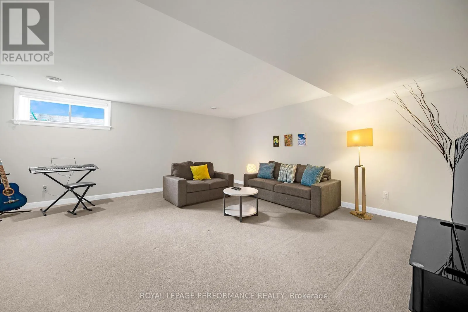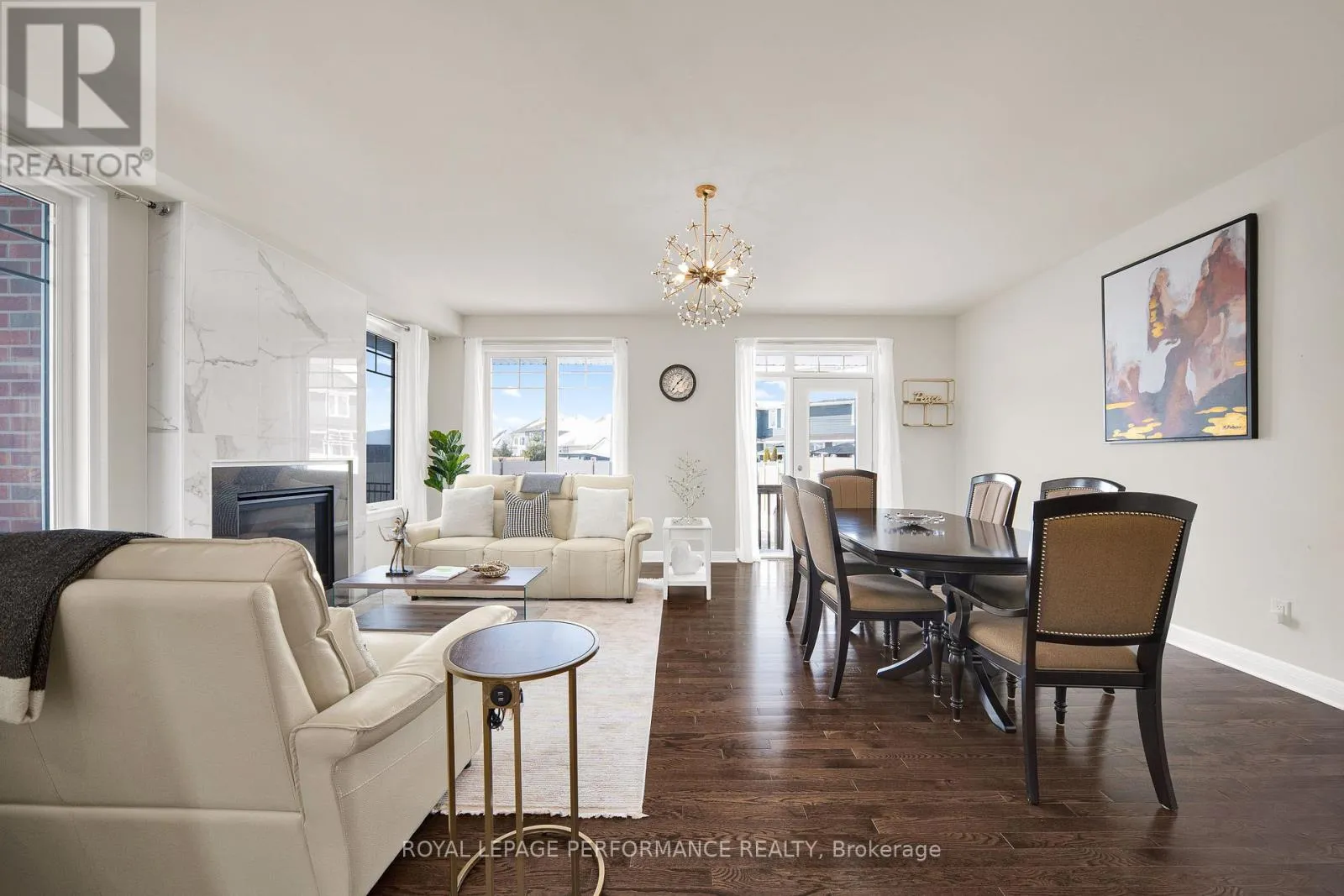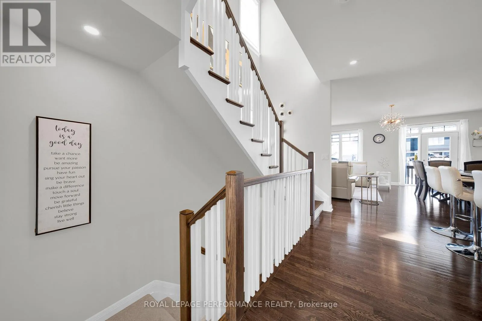 Longfields to Kilspindie. New Price!Welcome to 283 Kilspindie Ridge - a gorgeous Uniform-built end-unit townhouse nestled in the highly sought-after Stonebridge community. Situated on a rare pie-shaped premium lot, this home offers extra outdoor space, added privacy, and exceptional curb appeal - a true standout on the street.Step inside to a bright, open-concept main floor featuring hardwood flooring, elegant staircase, pot lights, and a spacious great room with a beautiful fireplace - perfect for entertaining or relaxing evenings at home. The gourmet chef-inspired kitchen boasts granite countertops, stainless steel appliances, ample cabinetry, and generous counter space ideal for family gatherings.Upstairs, the large primary retreat features hardwood flooring, two closets, and a luxurious 5-piece ensuite. Two additional well-sized bedrooms and a full bathroom complete the upper level.The finished basement provides excellent additional living space and includes a rough-in for a future full bathroom, offering great potential for customization.Recent updates include front door patio stone (2026), enhancing the home's welcoming entrance. The landscaped yard and end-unit location provide added natural light and privacy.Located just minutes from parks, recreation, schools, shopping, and Stonebridge Golf Club, this is an exceptional opportunity to own in one of Ottawa's most desirable communities.Don't miss your chance - book your private showing today. (id:27476)