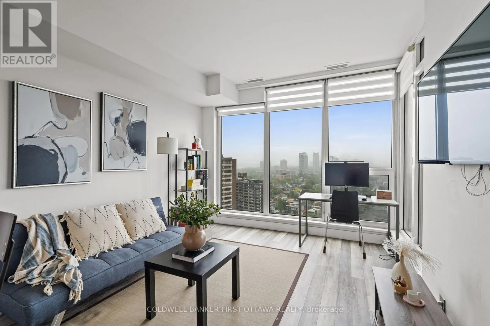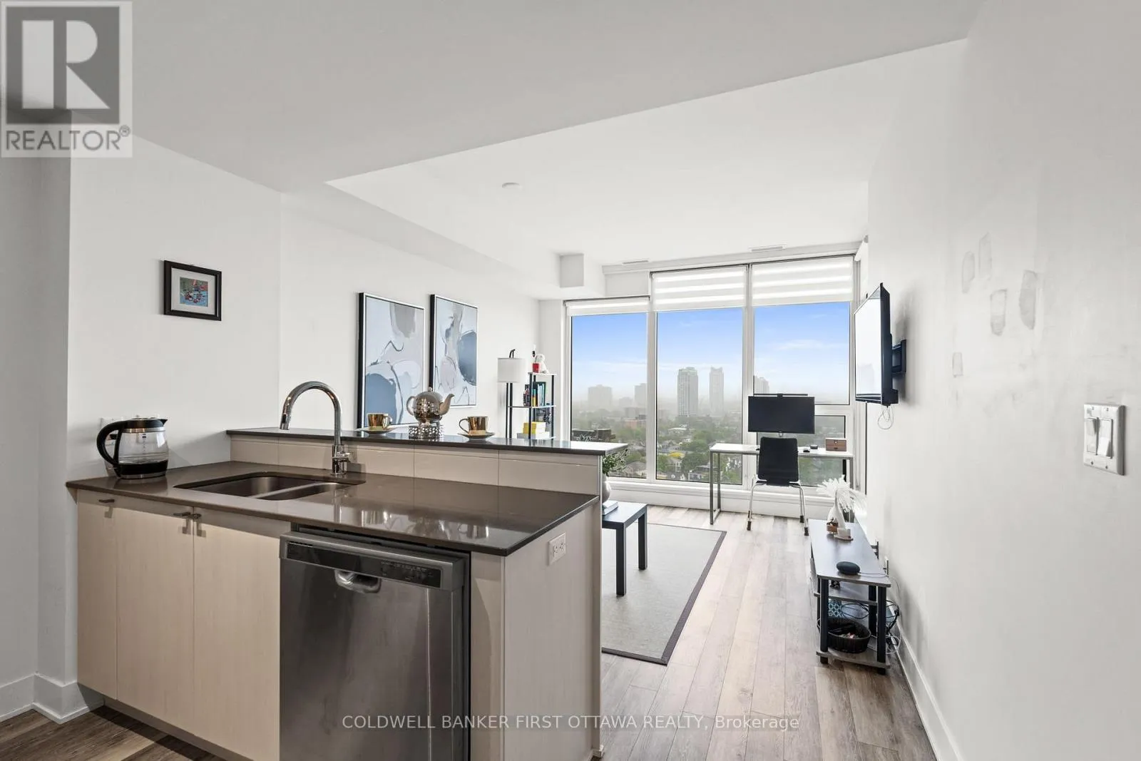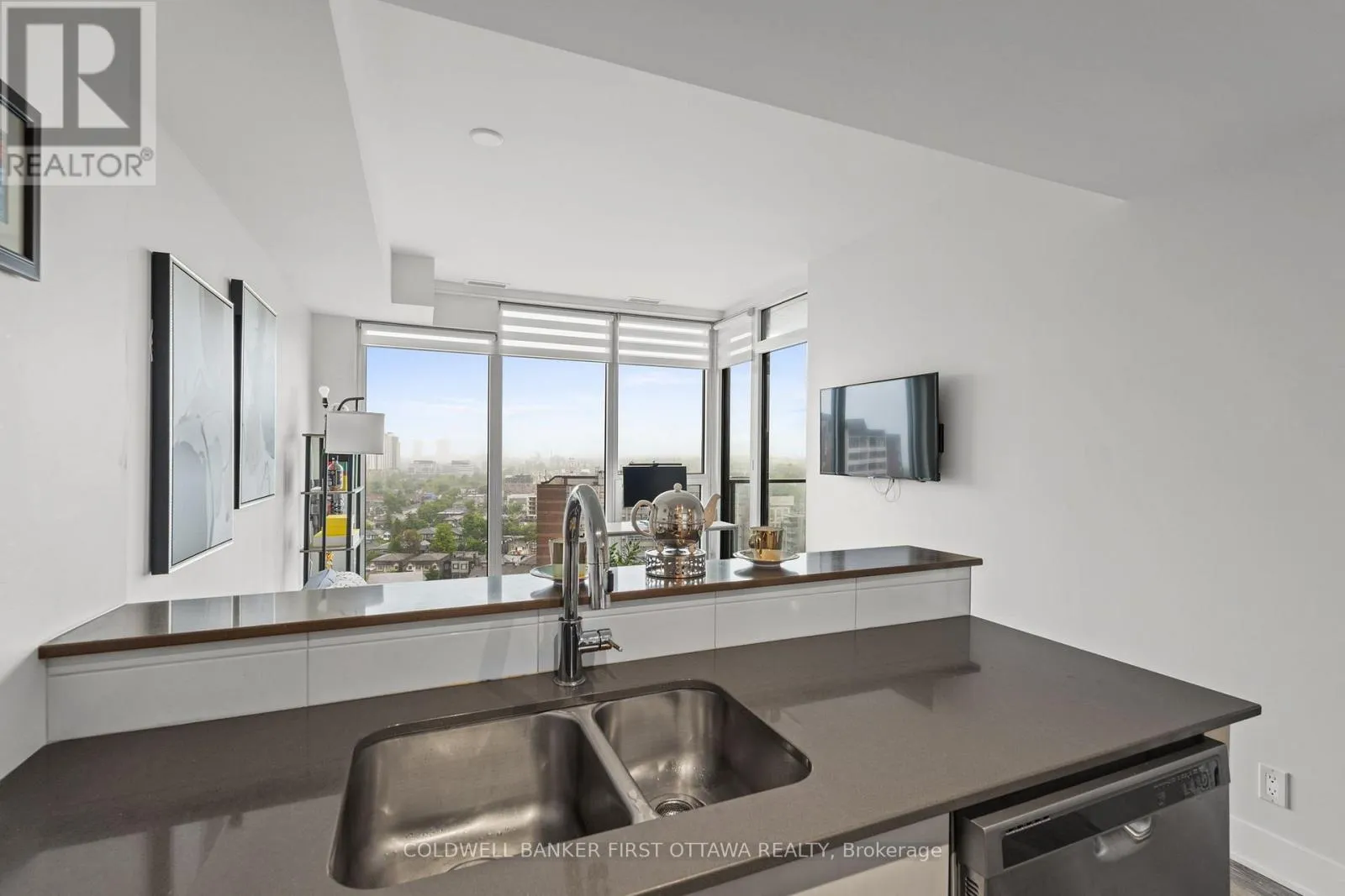 Take 417 to Island Park Dr N Exit, turn left on Byron Ave., turn right on Golden Ave, turn left on Richmond Rd Step into this impeccably upgraded one-bedroom residence with views from the 19th foor! Located at the prestigious UpperWest, whereluxurymeets effortless living. Boasting premium finishes, including sleek granite countertops, a stylish kitchen backsplash, refined cabinet hardware, Zen-inspired mirror sliding doors, and elegant window fixtures, this unit is a testament to modern sophistication. Beyond its impeccable interiors, this home offers the rare advantage of both a parking space and a locker, as well as breathtaking panoramic views of the river and city skyline. Expansive oversized windows in the living room and bedroom food the space with natural light, creating an airy, serene ambiance. The generously sized balcony invites you to unwind with your morning coffee or evening libations while soaking in the picturesque surroundings.The UpperWest itself is a masterpiece of meticulous upkeep and exceptional amenities. Residents enjoy access to two elegantparty rooms, a wraparound terrace complete with BBQ facilities, a cozy freplace, a tranquil refection pool, a chic lounge, a dining area, and astate-of-the-art ftnesscenter. Nestled in the heart of Westboro, this prime location places you just steps away from Ottawas fnest boutiqueshops, dining, andeveryday conveniences all within a few charming blocks. A rare blend of elegance, comfort, and convenience, this condo is atrue urban retreat.Turn-key and ready to move in! (id:27476)