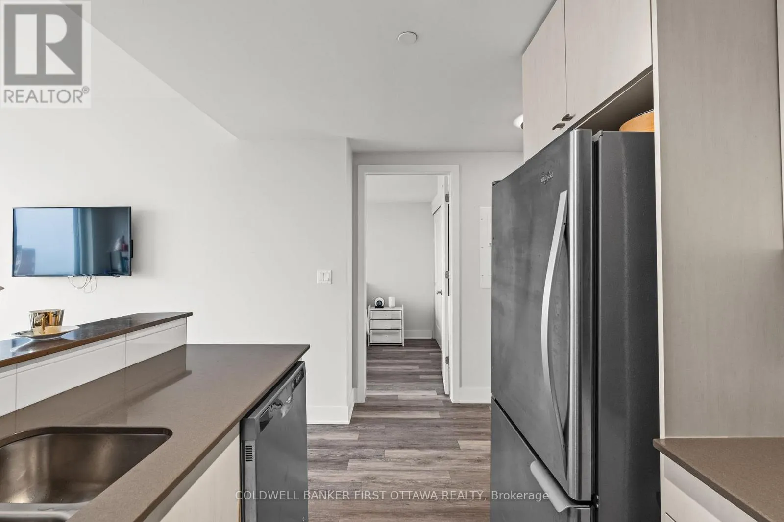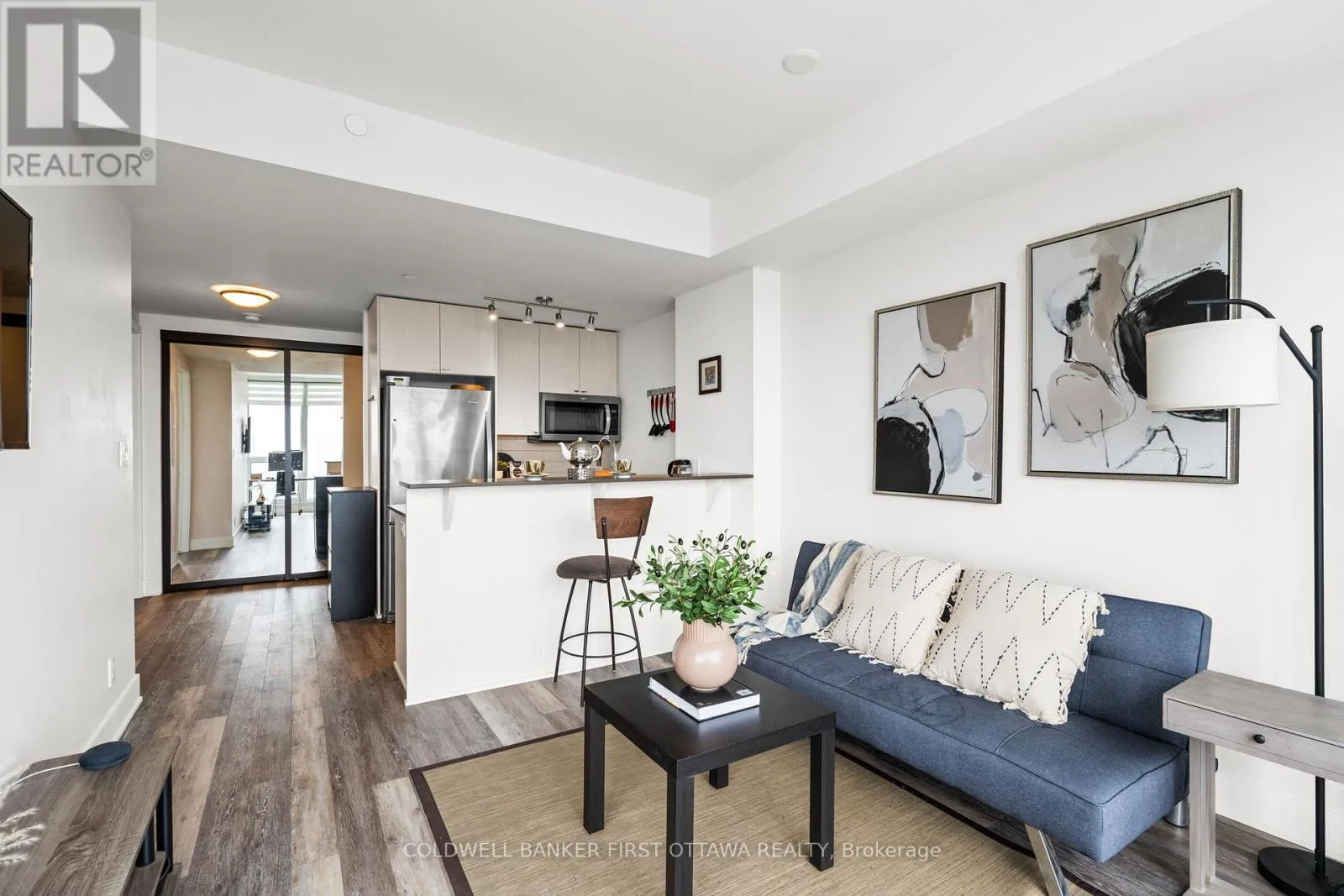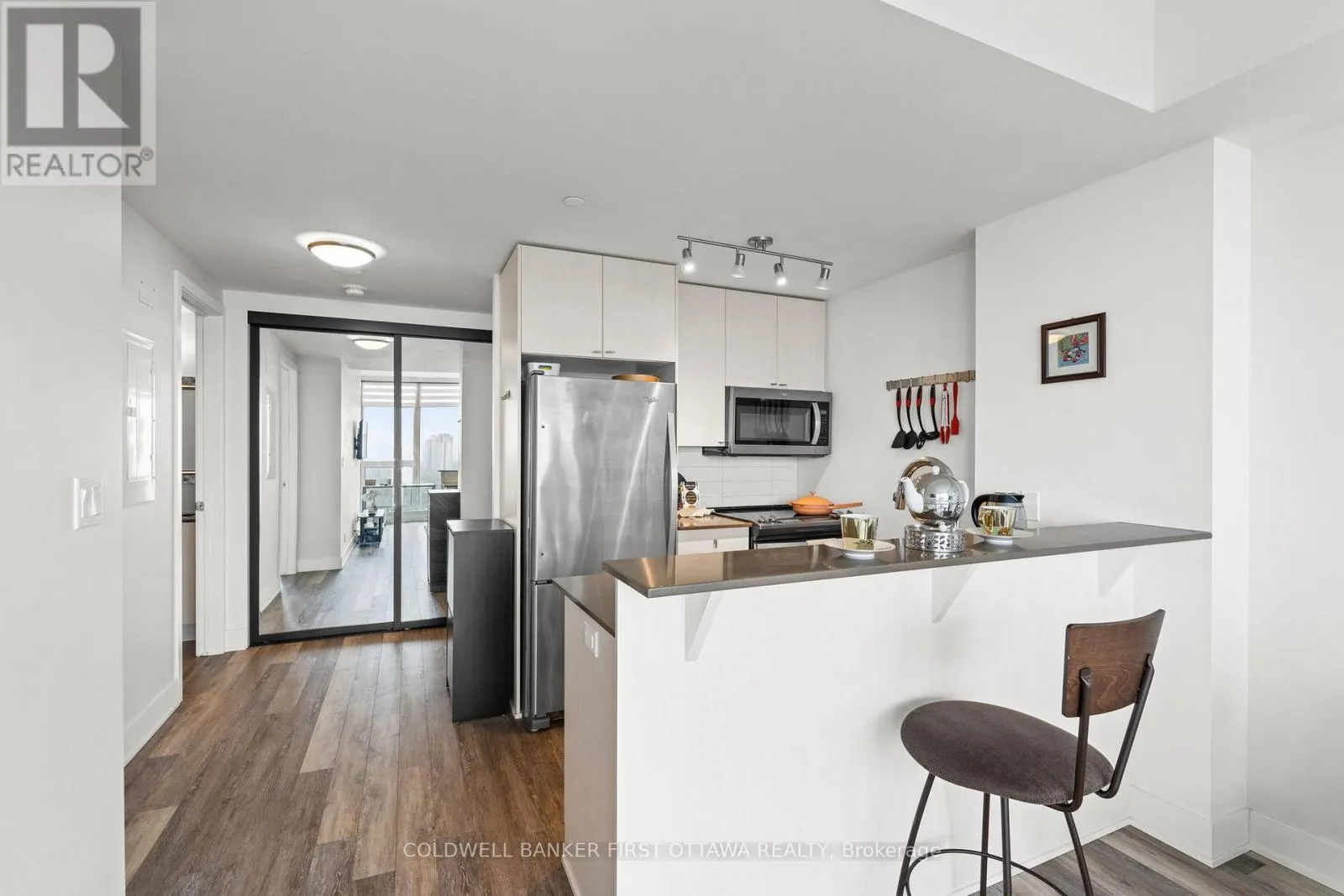 Take 417 to Island Park Dr N Exit, turn left on Byron Ave., turn right on Golden Ave, turn left on Richmond Rd Step into this impeccably upgraded one-bedroom residence with views from the 19th foor! Located at the prestigious UpperWest, whereluxurymeets effortless living. Boasting premium finishes, including sleek granite countertops, a stylish kitchen backsplash, refined cabinet hardware, Zen-inspired mirror sliding doors, and elegant window fixtures, this unit is a testament to modern sophistication. Beyond its impeccable interiors, this home offers the rare advantage of both a parking space and a locker, as well as breathtaking panoramic views of the river and city skyline. Expansive oversized windows in the living room and bedroom food the space with natural light, creating an airy, serene ambiance. The generously sized balcony invites you to unwind with your morning coffee or evening libations while soaking in the picturesque surroundings.The UpperWest itself is a masterpiece of meticulous upkeep and exceptional amenities. Residents enjoy access to two elegantparty rooms, a wraparound terrace complete with BBQ facilities, a cozy freplace, a tranquil refection pool, a chic lounge, a dining area, and astate-of-the-art ftnesscenter. Nestled in the heart of Westboro, this prime location places you just steps away from Ottawas fnest boutiqueshops, dining, andeveryday conveniences all within a few charming blocks. A rare blend of elegance, comfort, and convenience, this condo is atrue urban retreat.Turn-key and ready to move in! (id:27476)