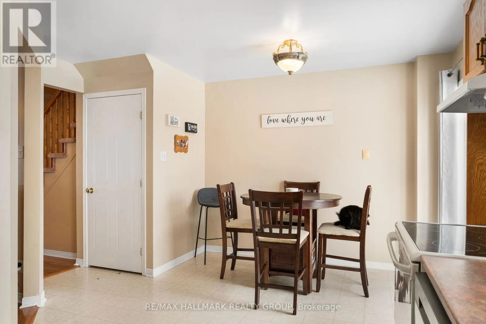 Cross Streets: Portobello. ** Directions: Innes rd to Portobello to Nestingway. Discover the perfect blend of tranquility and urban living in this 3-bedroom, 2-bathroom townhome. Featuring no rear neighbors, this rare find backs onto a serene landscape, offering a private deck where you can truly unwind and feel like in nature. The main level boasts hardwood flooring and an open-concept living and dining area designed for both relaxation and entertaining. The spacious eat-in kitchen is a real treat with loads of cupboard space, balancing modern style with daily functionality. Upstairs, retreat to three bedrooms, including a primary suite with walk-in closet and a spa-like main bath with a soaker tub and oversized separate shower. Lifestyle Highlights: Versatile Space: The partially finished basement is ready for your home office, gym, or family media room. Prime Location: Steps from top-tier shopping, local restaurants, and public transit. Peace of Mind: Significant upgrades include a newer roof (last 10 years) with 35-year shingles, New garage door as of 2025. Convenience: Attached garage with inside entry and central vacuum ready. Schedule your private tour today to experience this great home! (id:27476)