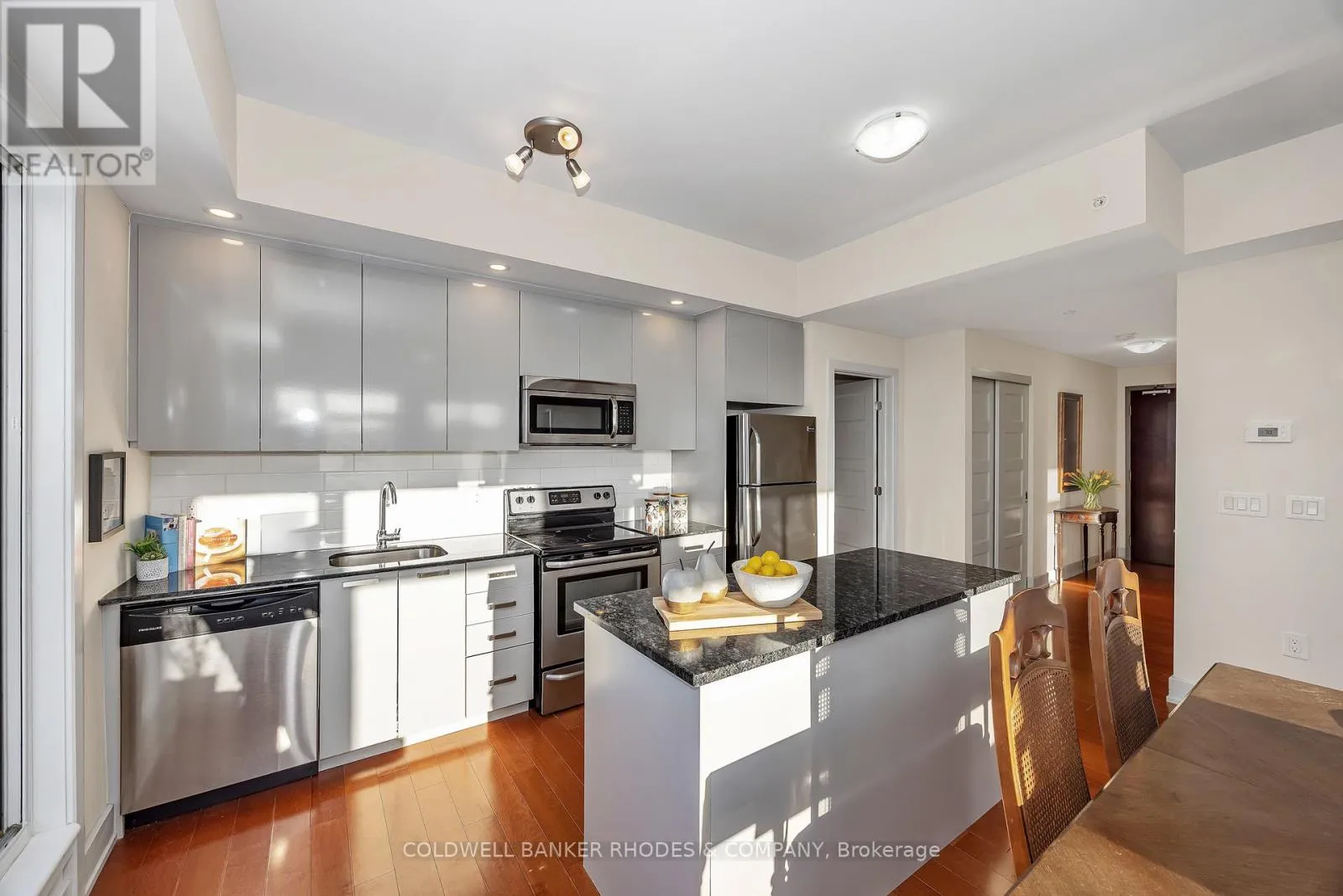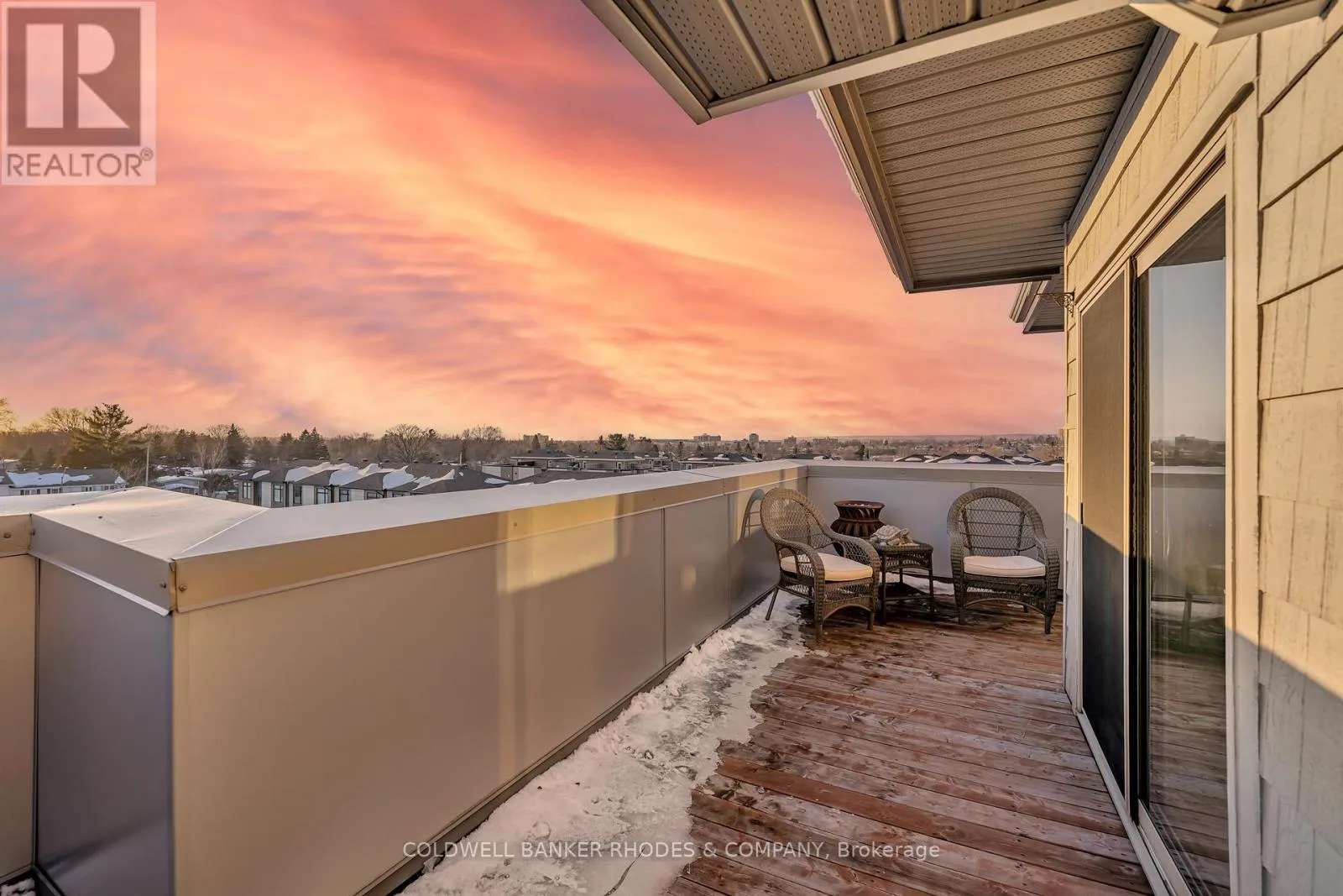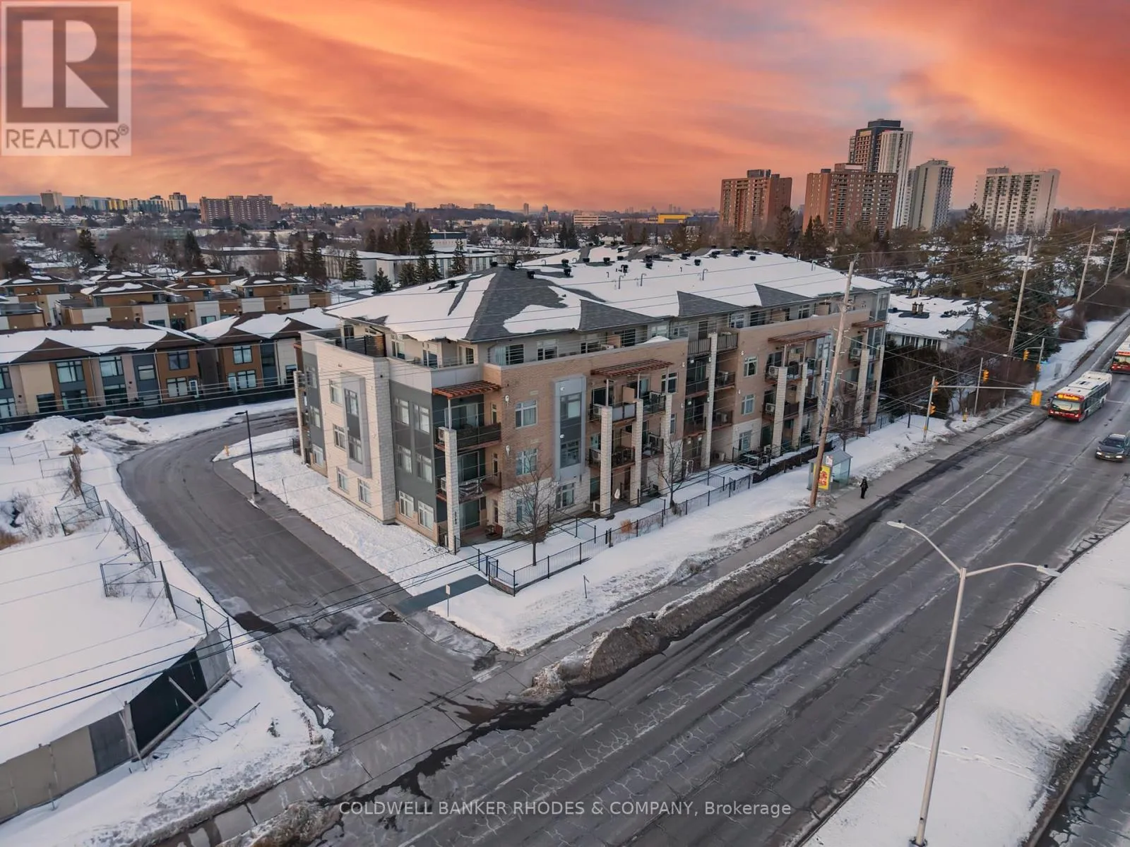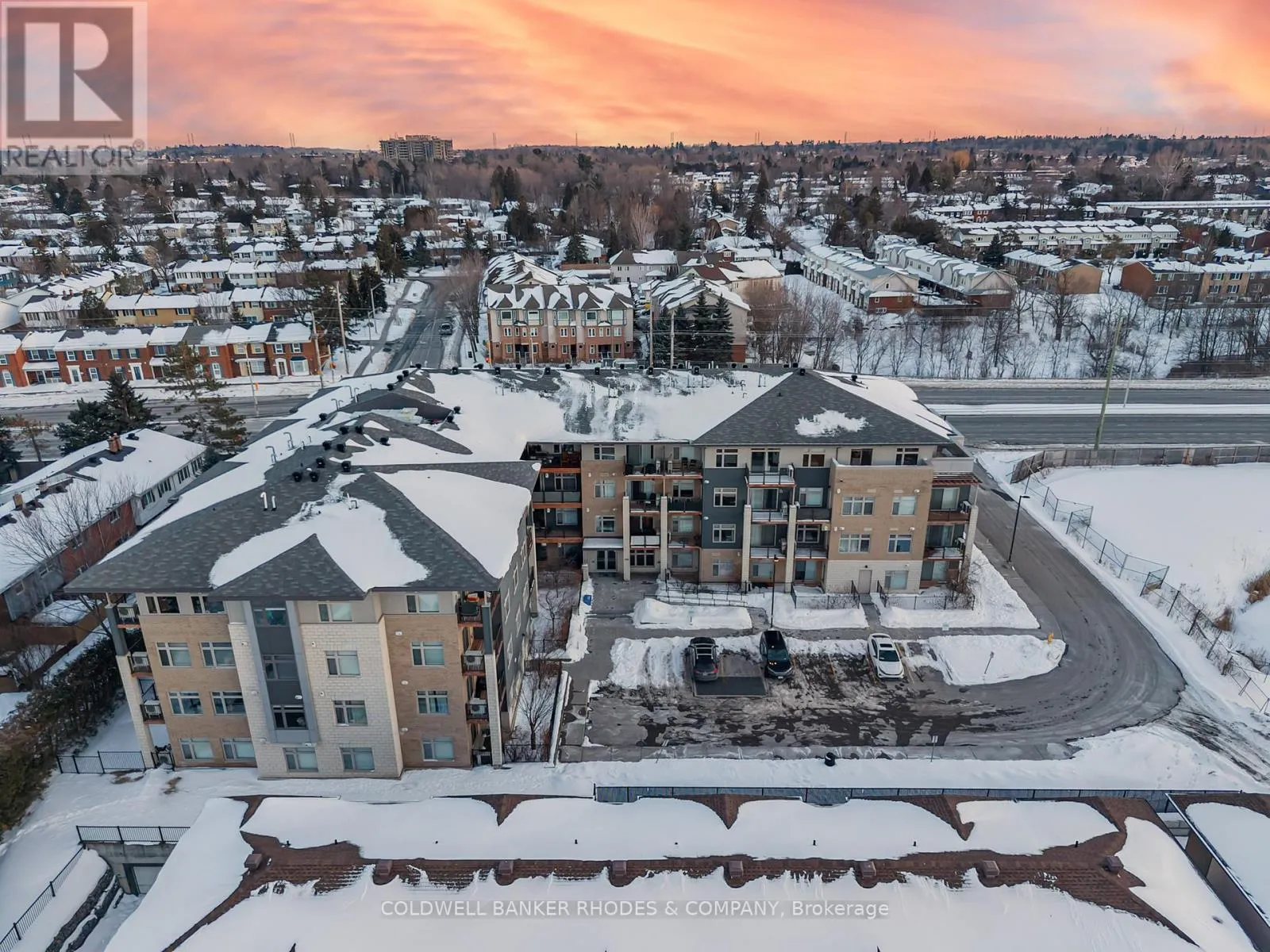 Cross Streets: Baseline Road and Morrison Drive. ** Directions: Baseline Road west, turn left into parking lot area just past building. Perched on the top floor with western exposure, this sun-filled corner unit offers exceptional light, privacy and airy living space! Featuring approximately 1034 sq ft of interior space plus over 450 sq ft of exterior space , this generously proportioned 2 bedroom, 2 full bathroom unit offers windows on two sides, soaring ceilings, and warm hardwood floors flowing throughout the inviting main living space. With generous cupboard space and a centre island, the functional kitchen anchors the unit and provides easy access to the secondary balcony with gas BBQ line. The adjoining living and dining area is bright and welcoming, easily accommodating comfortable furnishings for relaxing or hosting friends. This space extends to a roomy west-facing terrace-perfect for sunset lounging, al fresco meals, and container gardening. The primary bedroom offers ample proportions, roomy walk-in closet and a 3 piece ensuite bath with walk in shower. Situated on the opposite end of the unit, the second bedroom provides flexibility for guests or a home office. This room benefits from a large closet and ensuite access to the main 4 piece bathroom, also accessed from the main foyer. Cross-breezes, sky views, and the quiet of a top-floor position enhance everyday comfort, with the thoughtful layout maximizing both openness and function. In suite laundry, underground heated parking and storage locker. With rare expansive outdoor space, abundant natural light, and a refined yet relaxed atmosphere, this residence delivers elevated condo living in a sunsplashed setting. Within close proximity of amenities, transit, shopping, Queensway Carleton Hospital, as well as nearby access to both 416 and 417, this welcoming unit boasts the perfect combination of lifestyle and convenience within close proximity of everyday essentials! (id:27476)