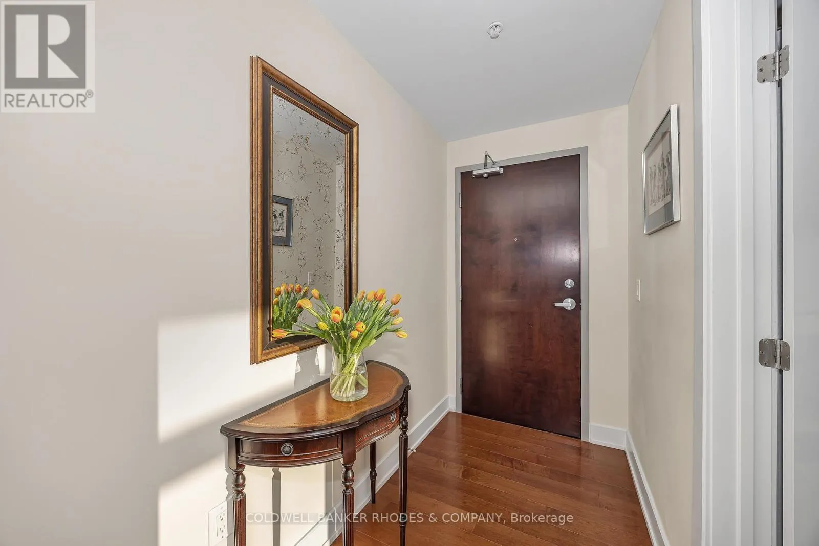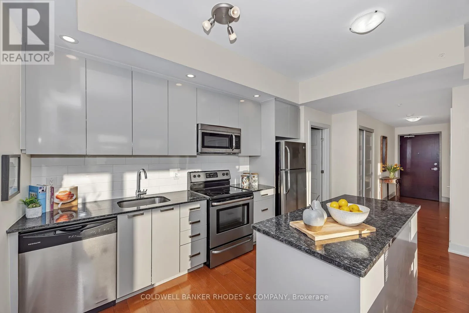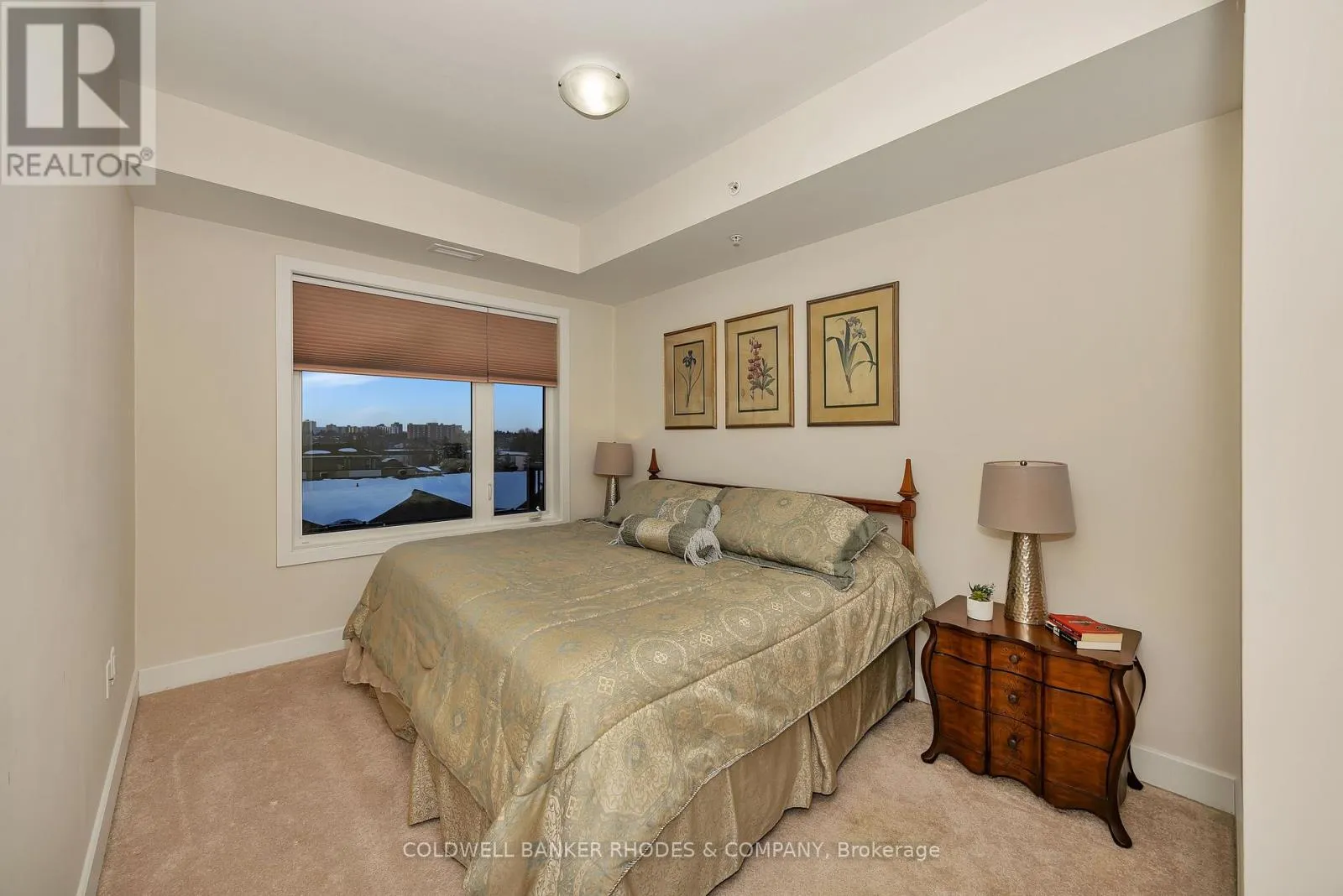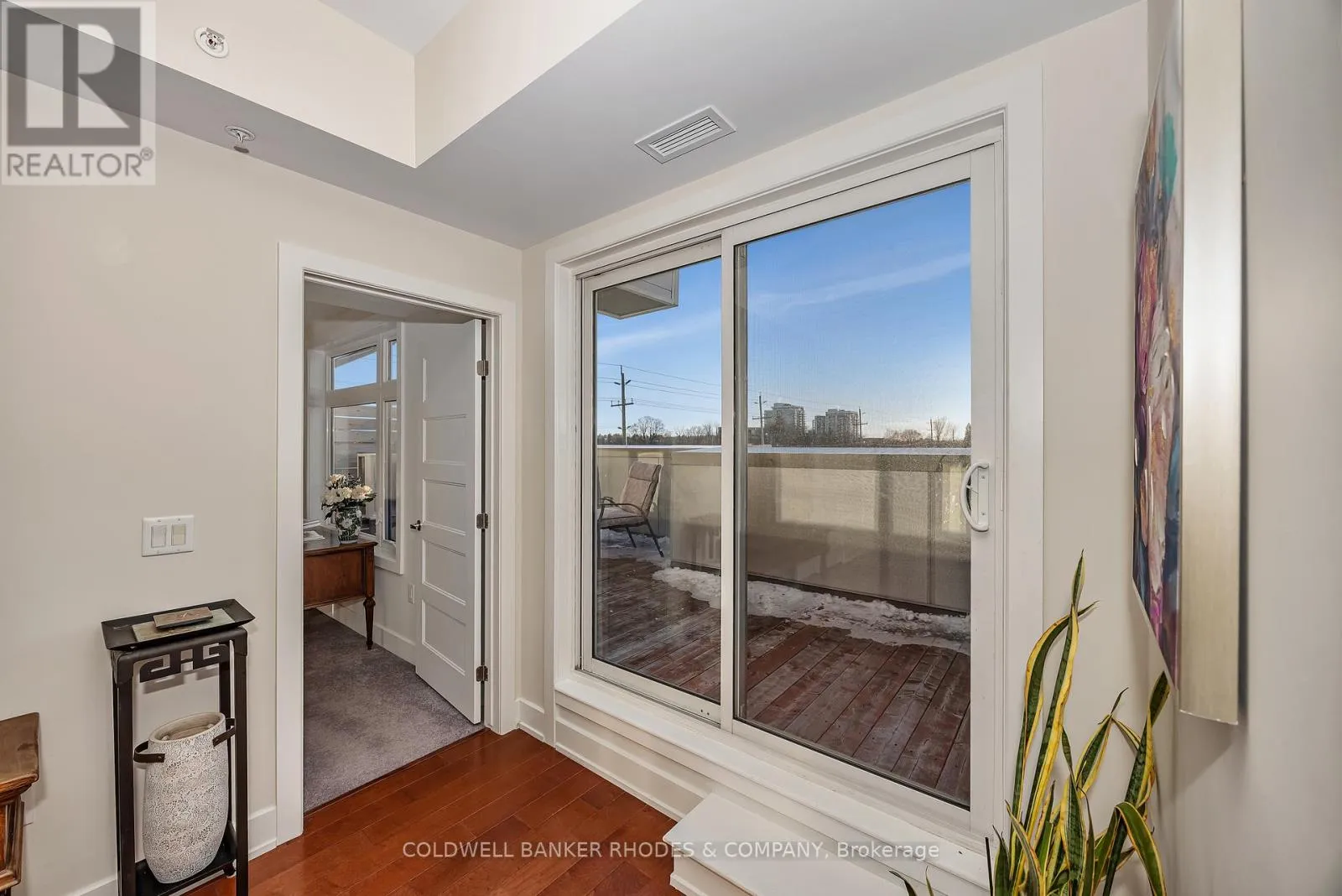 Cross Streets: Baseline Road and Morrison Drive. ** Directions: Baseline Road west, turn left into parking lot area just past building. Perched on the top floor with western exposure, this sun-filled corner unit offers exceptional light, privacy and airy living space! Featuring approximately 1034 sq ft of interior space plus over 450 sq ft of exterior space , this generously proportioned 2 bedroom, 2 full bathroom unit offers windows on two sides, soaring ceilings, and warm hardwood floors flowing throughout the inviting main living space. With generous cupboard space and a centre island, the functional kitchen anchors the unit and provides easy access to the secondary balcony with gas BBQ line. The adjoining living and dining area is bright and welcoming, easily accommodating comfortable furnishings for relaxing or hosting friends. This space extends to a roomy west-facing terrace-perfect for sunset lounging, al fresco meals, and container gardening. The primary bedroom offers ample proportions, roomy walk-in closet and a 3 piece ensuite bath with walk in shower. Situated on the opposite end of the unit, the second bedroom provides flexibility for guests or a home office. This room benefits from a large closet and ensuite access to the main 4 piece bathroom, also accessed from the main foyer. Cross-breezes, sky views, and the quiet of a top-floor position enhance everyday comfort, with the thoughtful layout maximizing both openness and function. In suite laundry, underground heated parking and storage locker. With rare expansive outdoor space, abundant natural light, and a refined yet relaxed atmosphere, this residence delivers elevated condo living in a sunsplashed setting. Within close proximity of amenities, transit, shopping, Queensway Carleton Hospital, as well as nearby access to both 416 and 417, this welcoming unit boasts the perfect combination of lifestyle and convenience within close proximity of everyday essentials! (id:27476)