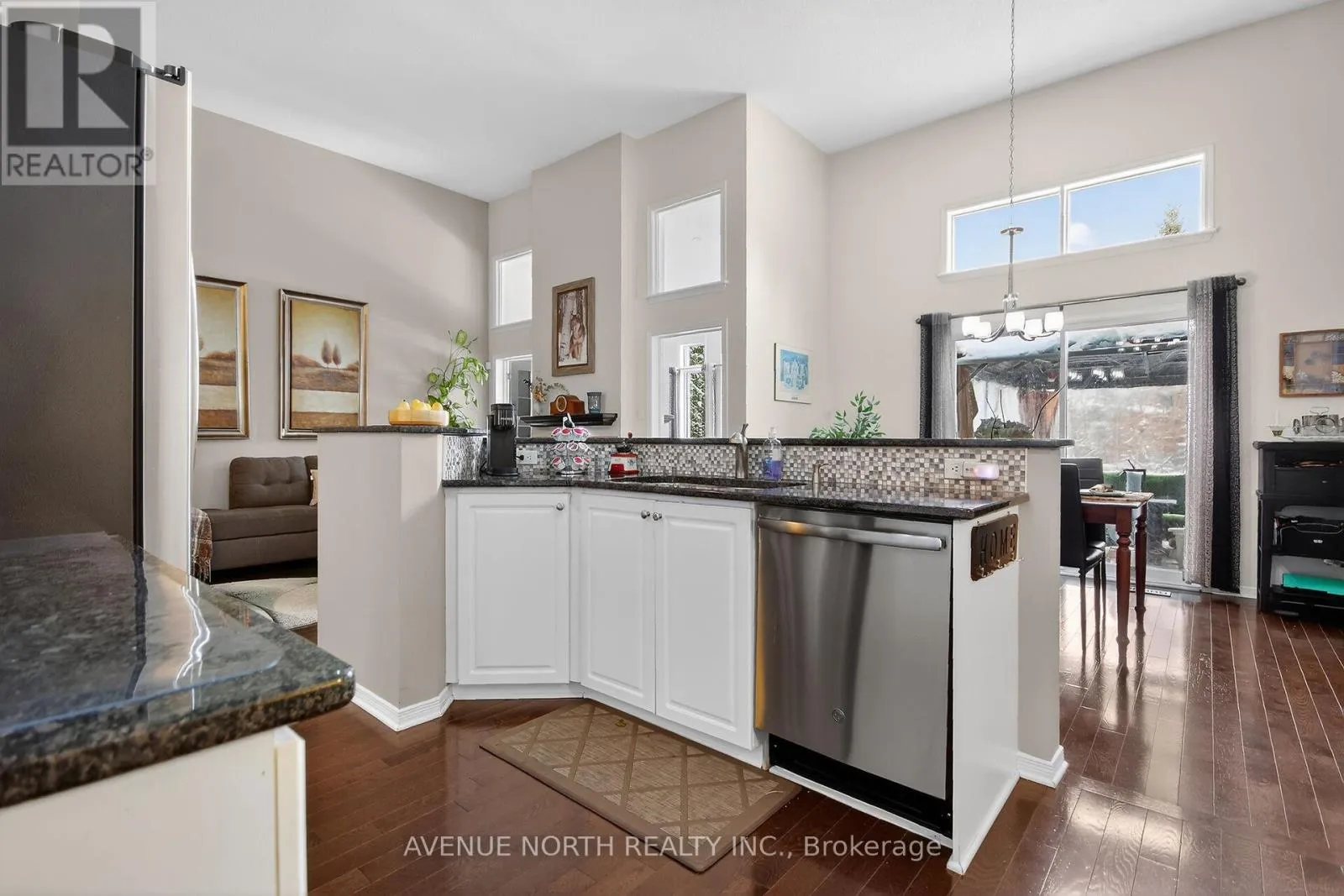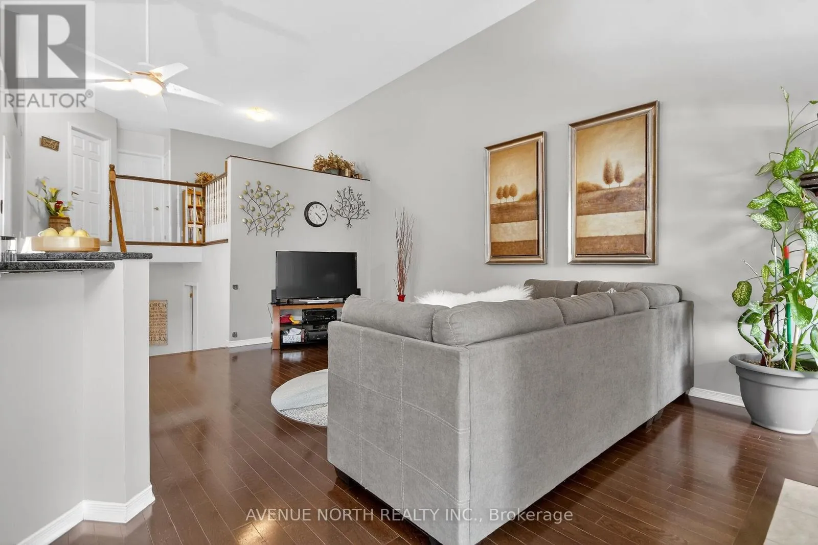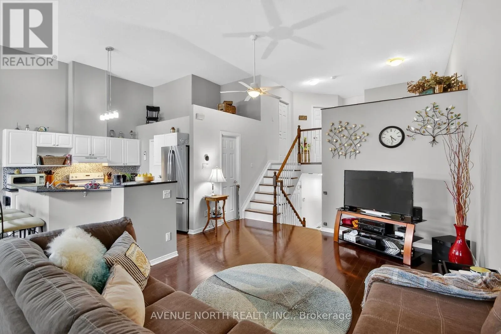 Cross Streets: Kanata Ave and Macassa Circle. ** Directions: Campeau Drive, to Kanata Avenue, left on Macassa Circle. Welcome to 57 Macassa Circle ! This is the executive townhome you've been waiting for. Nestled in a quiet, sought-after enclave in Kanata Lakes, this elegant and spacious home offers style, comfort, a exceptional design and privacy, just minutes from top schools, shopping, recreation and transit. From the moment you arrive, you'll appreciate the iron-gated front yard perfect for pets or young children. Inside, the entry-level den with French doors provides a bright and versatile space for a home office, family room or room to suit your personal family desires. Upstairs, the main living level impresses with soaring vaulted ceilings, gleaming hardwood floors, and an open-concept layout. Relax in the cozy living room with a gas fireplace, or enjoy cooking and entertaining in the stylish kitchen featuring granite countertops, a large pantry, and breakfast bar. A separate dining area abuts the kitchen leading to the bonus sunroom/den with French doors perfect for year-round enjoyment. Enjoy backyard relaxation on your elevated deck featuring a gazebo lounge area, tranquil pond and beautifully landscaped private backyard space !!! The upper floor features a spacious primary bedroom with a walk-in closet, a generous second bedroom, and loft area, with a well-appointed 5 piece bathroom with dual access offering an ensuite feel with accessibility .The fully finished basement adds even more living space, offering a large recreation room, third bedroom, and 4-piece bath ideal for guests, teens, or extended family. Step outside to your private, fully fenced backyard with a gated entrance and no rear access from neighbors making this home a rare find and truly a private outdoor oasis. This chic and stylish home has it all ! Don't miss your chance to live in one of Kanata's most desirable communities! Roof 2015, HWT Owed 2022, Washer 2024, Dryer 2019, Fridge & Dishwasher 2020,TOP Quality LVP 2024, Front Iron Fence 2023, Partially painted 2026. (id:27476)