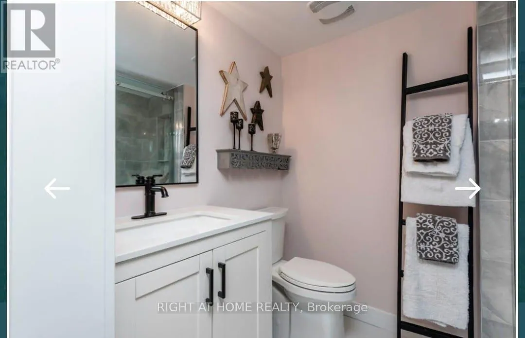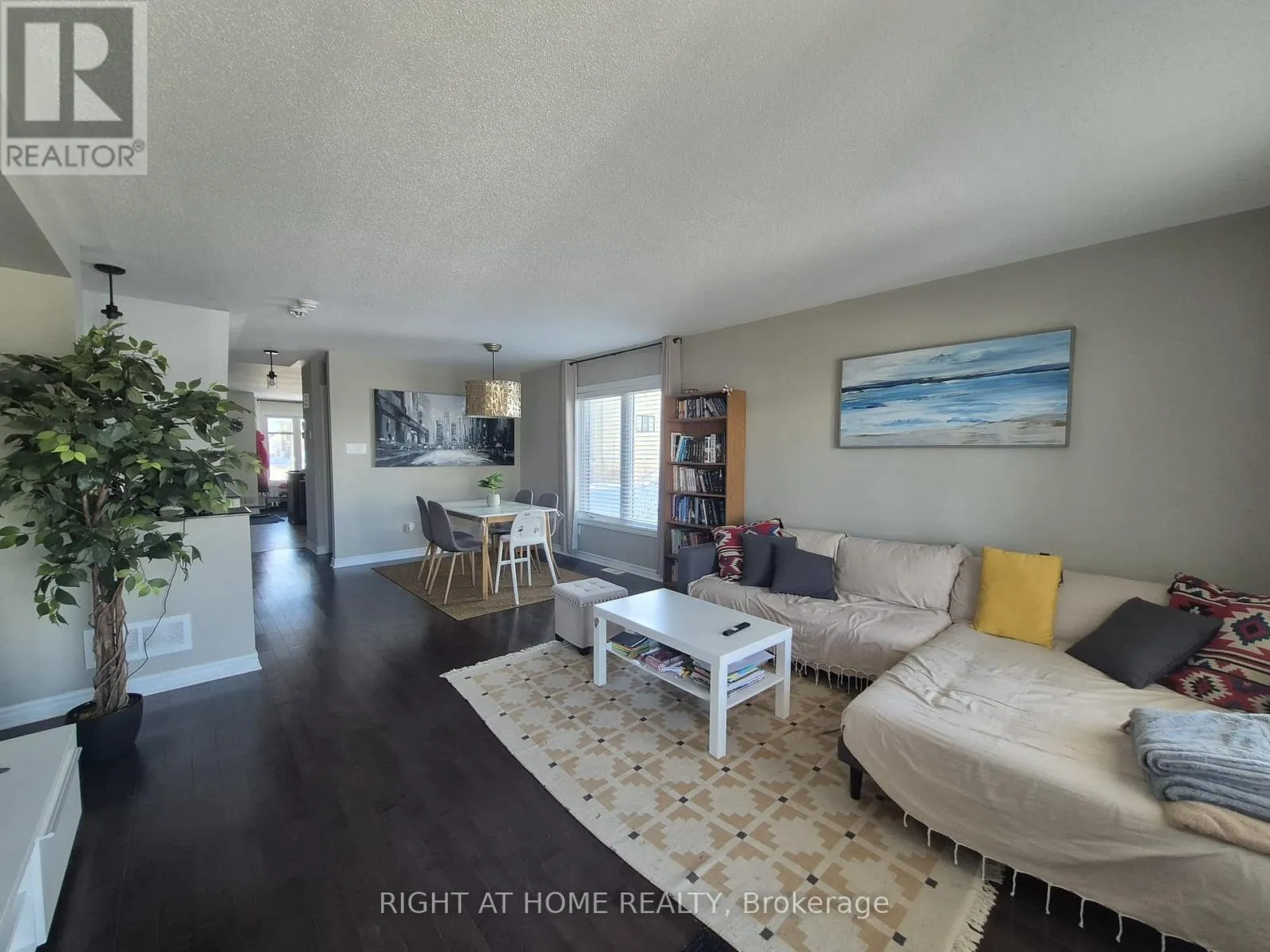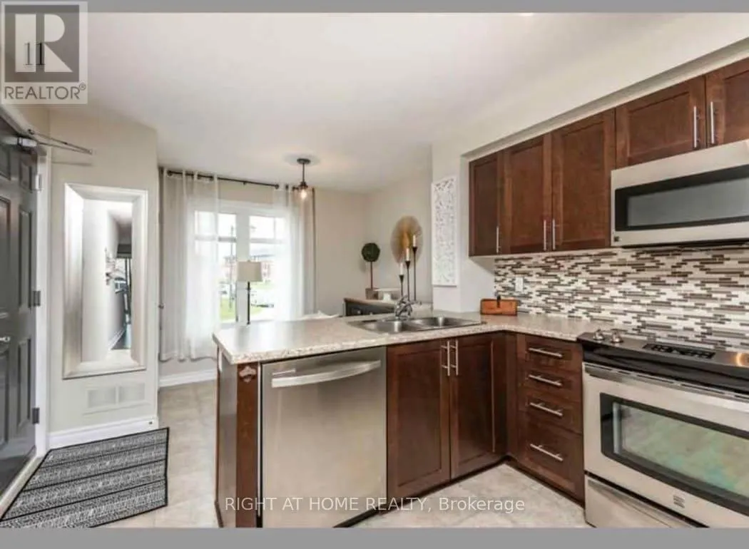 Tenth Line Rd to Brian Coburn Blvd, right onto Esprit, property is located in the circle just past St. Domenic School. Welcome to this stylish lower-end unit terrace home in sought-after Avalon East, offering numerous updates throughout. Featuring a soothing, modern colour palette, this home is truly move-in ready.The front entrance leads into a bright eat-in kitchen complete with a breakfast bar, stainless steel appliances, and ample cabinetry. The spacious living and dining area showcases beautiful hardwood floors and provides direct access to your private balcony and exclusive green space-perfect for relaxing or entertaining. A convenient powder room is also located on the main level.The lower level offers a comfortable retreat with a primary bedroom featuring a fully renovated ensuite, highlighted by modern Italian fixtures and designer tile. The second bedroom is generously sized and also includes its own ensuite, ideal for guests or family. Laundry is conveniently located on this level with stylish sliding barn door access.This lovely home is sure to impress-just unpack and move in! (id:27476)