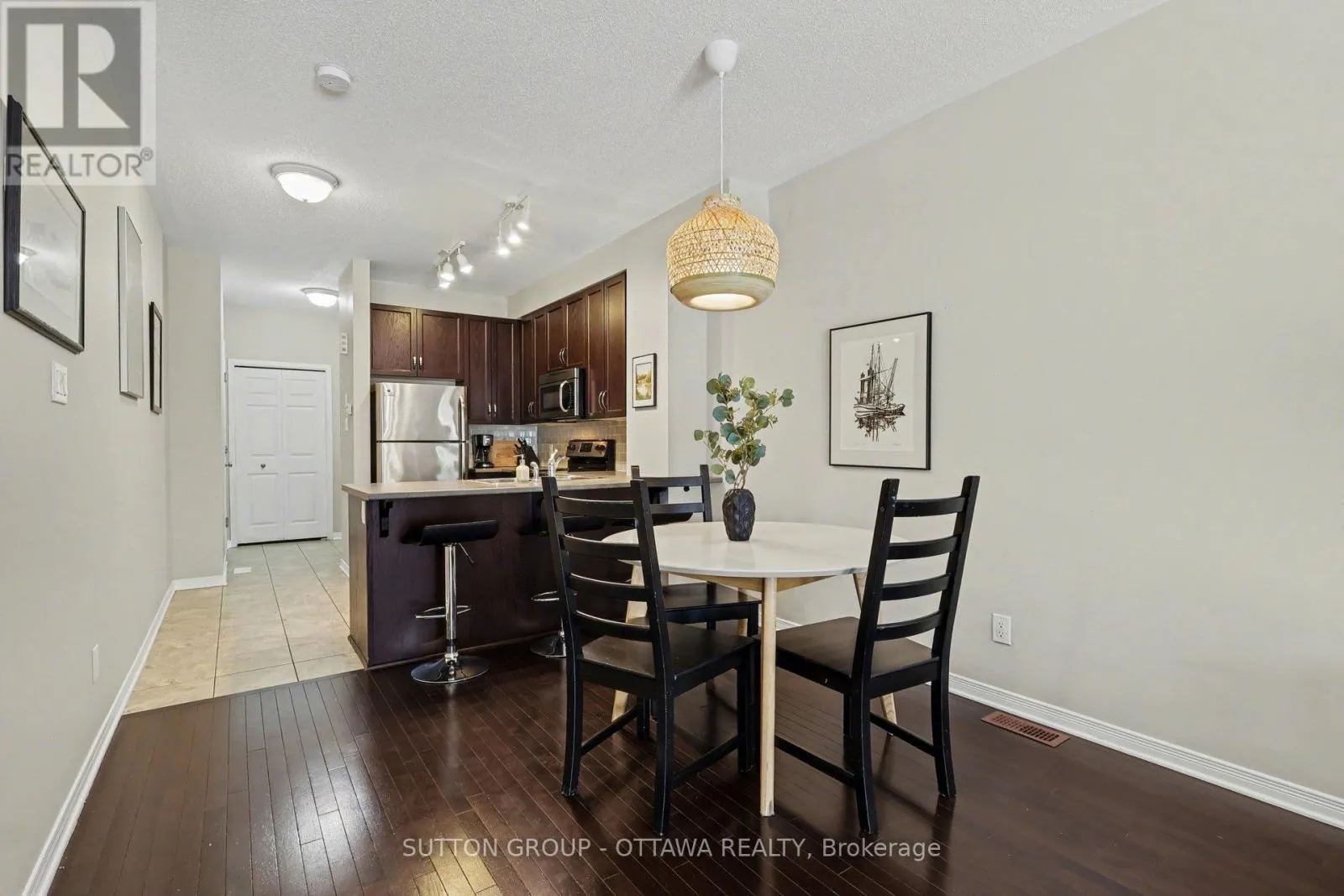 Cross Streets: London Terrace and Hemlock Road. ** Directions: St. Laurent Blvd. to Hemlock Road Eastbound, turn left on London Terrace. Welcome to 340 London Terrace, a gorgeous, bright, and spacious stacked townhome nestled in the highly desirable community of Manor Park, just minutes from downtown, the ByWard Market, Beechwood Village, and scenic walking and cycling paths. Close to a large park,this location is ideal for nature lovers and pet owners alike. The main level features rich hardwood flooring and an inviting open-concept design with 9-ft ceilings, creating an airy and comfortable living space. The stylish kitchen is equipped with stainless steel appliances, luxurious cabinetry, ample counter space, a double sink, and a breakfast bar-perfect for casual dining or entertaining. The spacious, sun-filled living and dining areas flow seamlessly to your private patio and backyard retreat, offering the perfect place to relax or host guests. The lower level offers two generously sized bedrooms, each with double closets, along with a well-appointed 3-piece bathroom. A conveniently located laundry area and additional storage space enhance everyday functionality. Enjoy low-maintenance living in an established, sought-after neighbourhood surrounded by green space, while remaining close to transit, parks, and all urban amenities. A/C (2025). Parking included. 24-hour irrevocable on all offers. (id:27476)