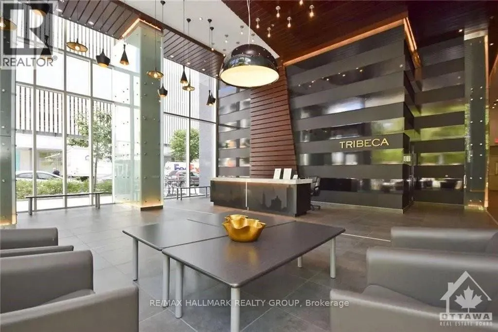 Cross Streets: Corner of Metcalfe and Nepean. ** Directions: Corner of Metcalfe and Nepean Street. Available April 1. Bright and modern one-bedroom plus den condo with parking in the heart of Ottawa Centre at the prestigious Tribeca. This well-designed unit offers a functional open-concept layout with hardwood floors, granite countertops, and floor-to-ceiling windows that fill the space with natural light. The living and dining area connects seamlessly to the kitchen, creating a comfortable setting for both everyday living and entertaining. The modern kitchen features granite counters, ceramic tile flooring, and a full suite of six appliances, including in-unit laundry. The den provides a versatile space ideal for a home office or study nook, while the spacious bedroom offers ample closet storage. A well-appointed full bathroom completes the layout. Residents enjoy access to the Tribeca Club, which includes a fully equipped fitness centre, indoor pool, sauna, exercise room, and private lounge. The building also offers security and the convenience of a Farm Boy grocery store on the ground floor. Underground parking and a storage locker are included. Heat, air conditioning, and water are included in the rent. Tenant pays electricity, approximately $50 per month. Available April 1. No pets please. (id:27476)
