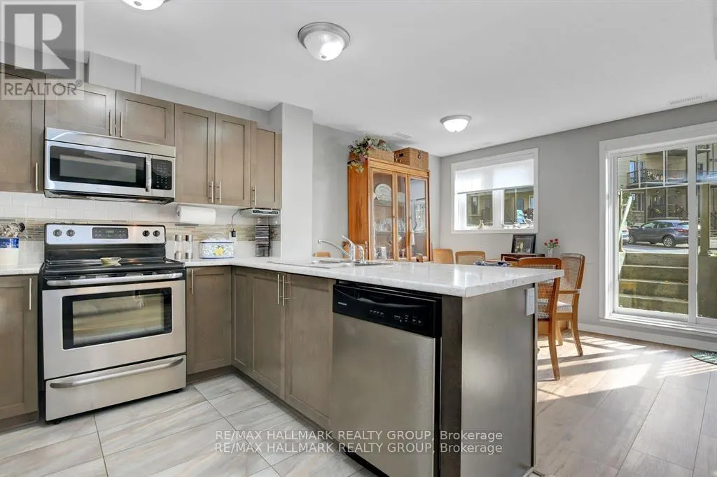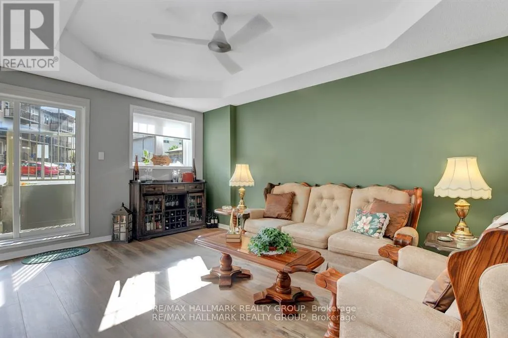 Cross Streets: Longfields. ** Directions: Ask Siri. Looking for condo living that feels more like home? This bright and stylish 2-bedroom + den, 2-bathroom unit in Barrhaven delivers comfort, convenience, and a touch of the unexpected. Step into the open-concept layout where living, dining, and kitchen spaces flow together effortlessly. The modern kitchen features clean lines, great storage, and plenty of prep space - perfect for everyday meals or entertaining guests.The den offers flexible living - ideal as a home office, creative studio, or cozy guest room. Two generous bedrooms, including a primary with ensuite, provide the privacy and comfort you need. Best of all? A walkout with direct outdoor access - rare for condo living and perfect for morning coffee or letting pets stretch their legs. All this in a fantastic Barrhaven location close to shopping, parks, schools, and transit. Stylish, practical, and move-in ready - this one checks all the boxes! 1 parking spot included. (id:27476)