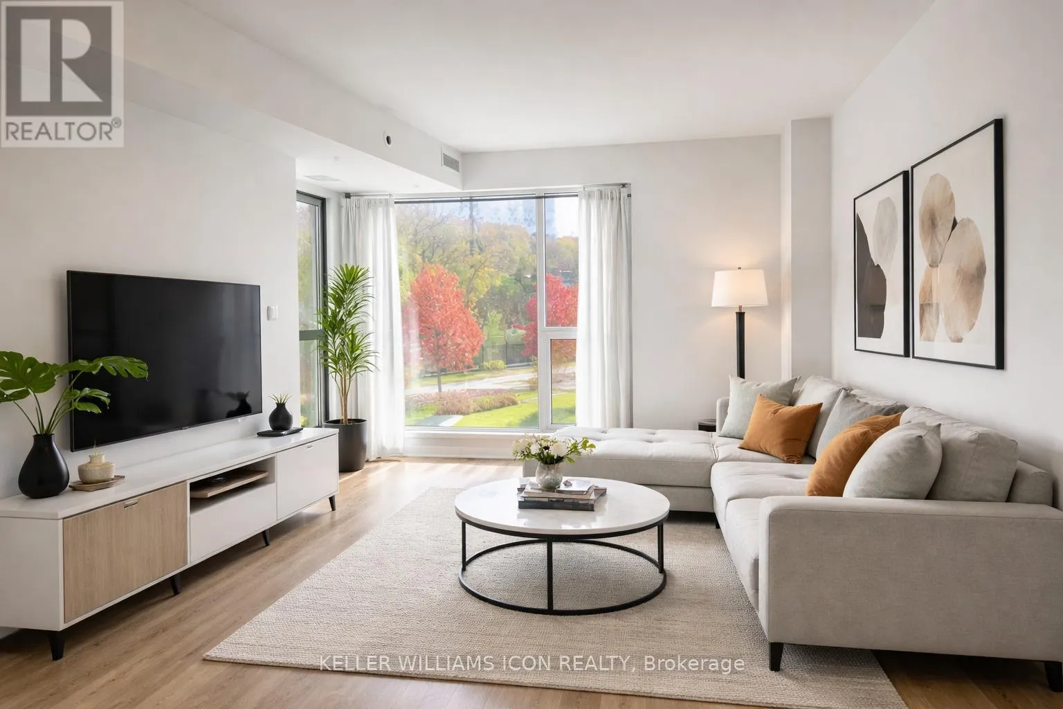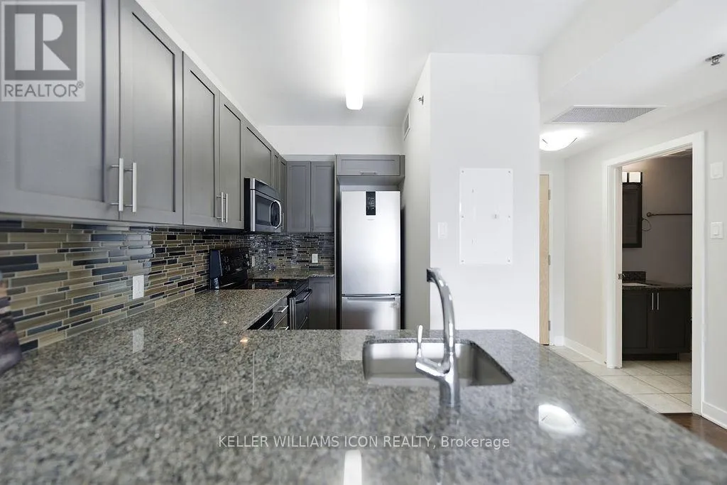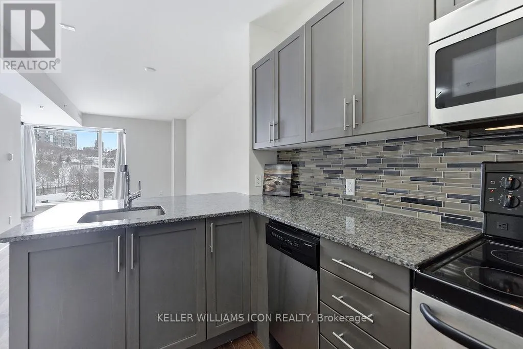 Cross Streets: Lett St & Fleet St. ** Directions: From Wellington St, turn onto Lett St, 300 Lett on the left side. Street parking in front of the building. Welcome to Unit 206 at 300 Lett Street, a beautifully maintained "Lily" model condo offering approximately 613 sq. ft. of modern, efficient living in the heart of LeBreton Flats. This bright 1-bedroom, 1-bathroom suite features an open-concept layout designed for comfort and functionality-ideal for professionals, first-time buyers, downsizers, or investors. The upgraded kitchen showcases granite countertops, a breakfast bar, stainless steel appliances, and enhanced cabinetry, flowing seamlessly into the sun-filled living and dining area with floor-to-ceiling windows and access to a private balcony. Hardwood flooring and fresh paint add to the move-in-ready appeal. The spacious bedroom offers generous closet space and large windows, while the stylish bathroom features a quartz-topped vanity, a deep tub, and conveniently includes in-suite laundry. This LEED-certified building offers premium amenities including a rooftop terrace, outdoor pool with change rooms, a fully equipped fitness centre, and a party room with a kitchen. Unbeatable location just steps to Ottawa River pathways, parks, LRT, downtown, Parliament Hill, and the vibrant communities of Little Italy, Chinatown, and Hintonburg. (id:27476)