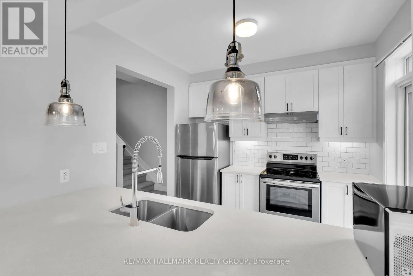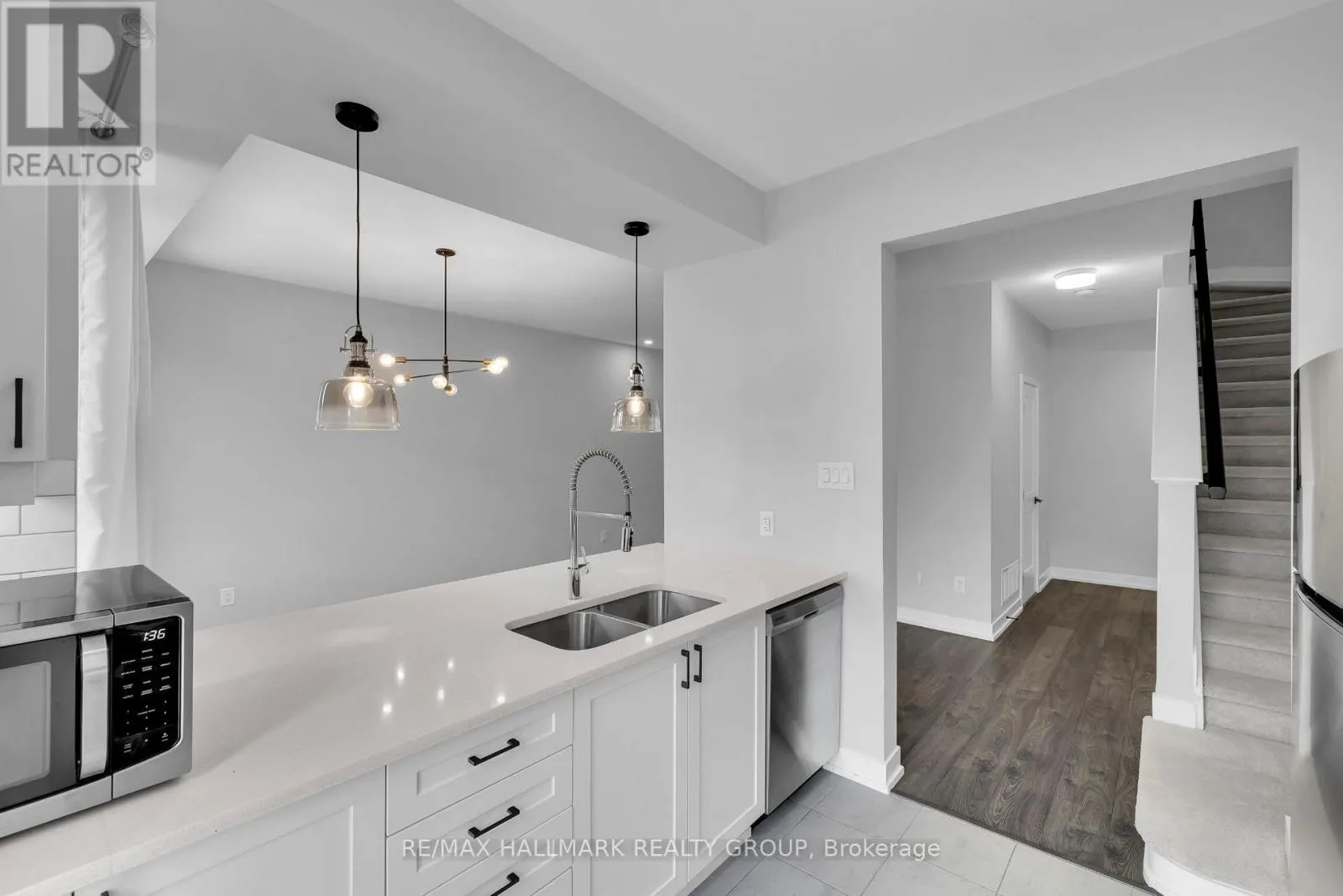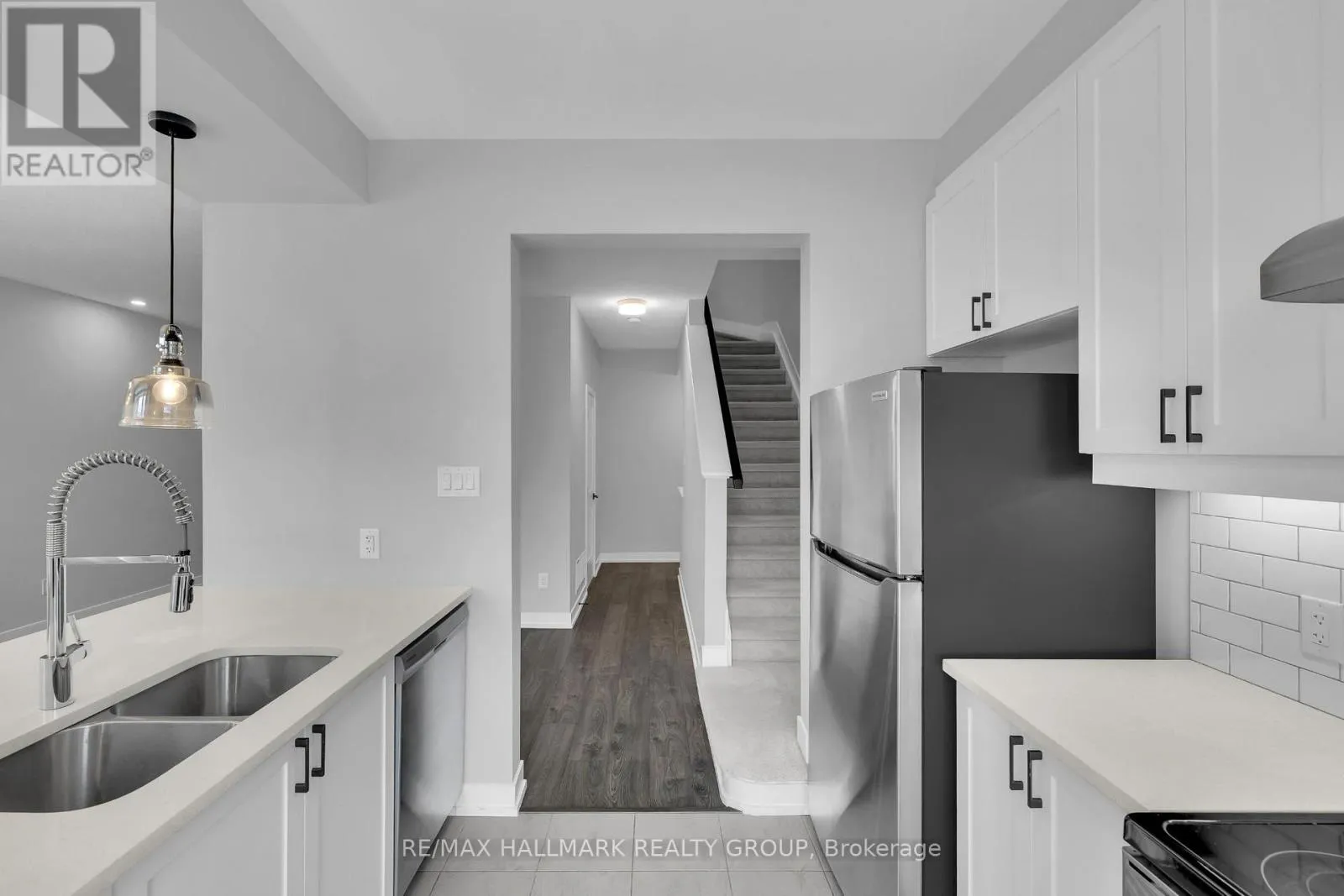 Cross Streets: Darjeeling Avenue & Jockvale Road. ** Directions: South on Greenbank Road, Right on Darjeeling Avenue, Right on Jockvale, Left on Anyolite Private. Welcome to 233 Anyolite - the Bluestone model by Mattamy Homes, spanning 1,401 sq ft! Designed with comfort, functionality, and style in mind, this home offers over $30,000 in designer upgrades and a layout perfect for modern living. Step into the spacious foyer and head upstairs to the open-concept main level, featuring luxury vinyl floors, large windows, and upgraded pot lights throughout. The bright, modern kitchen is a chef's dream, complete with quartz countertops, sleek cabinetry, stainless steel appliances, and an eat-up breakfast bar with a convenient pass-through window. Enjoy your morning coffee or unwind after work on the large, south-facing balcony. The upper level features two spacious bedrooms and a full bathroom. The primary bedroom includes a walk-in closet, while both rooms offer plenty of natural light and storage. The home's neutral finishes, white walls, light grey-brown flooring, and modern detailing create a clean and inviting atmosphere that suits any style.Located in one of Ottawa's most sought-after neighbourhoods, this home is just minutes from top-rated schools, parks, shops, and restaurants. Barrhaven offers a welcoming community feel with convenient access to major transit routes, walking trails, and everyday amenities. Move-in ready and thoughtfully designed, 233 Anyolite is the perfect place to call home. (id:27476)