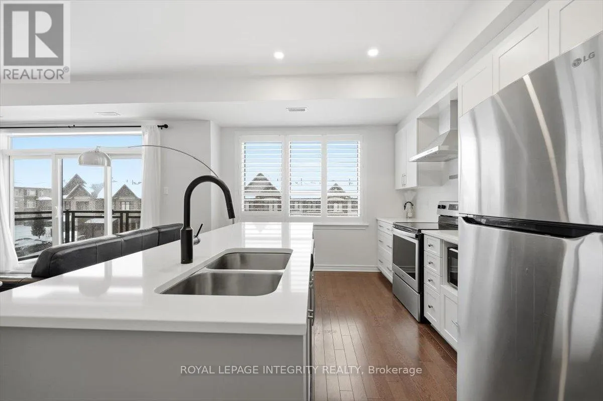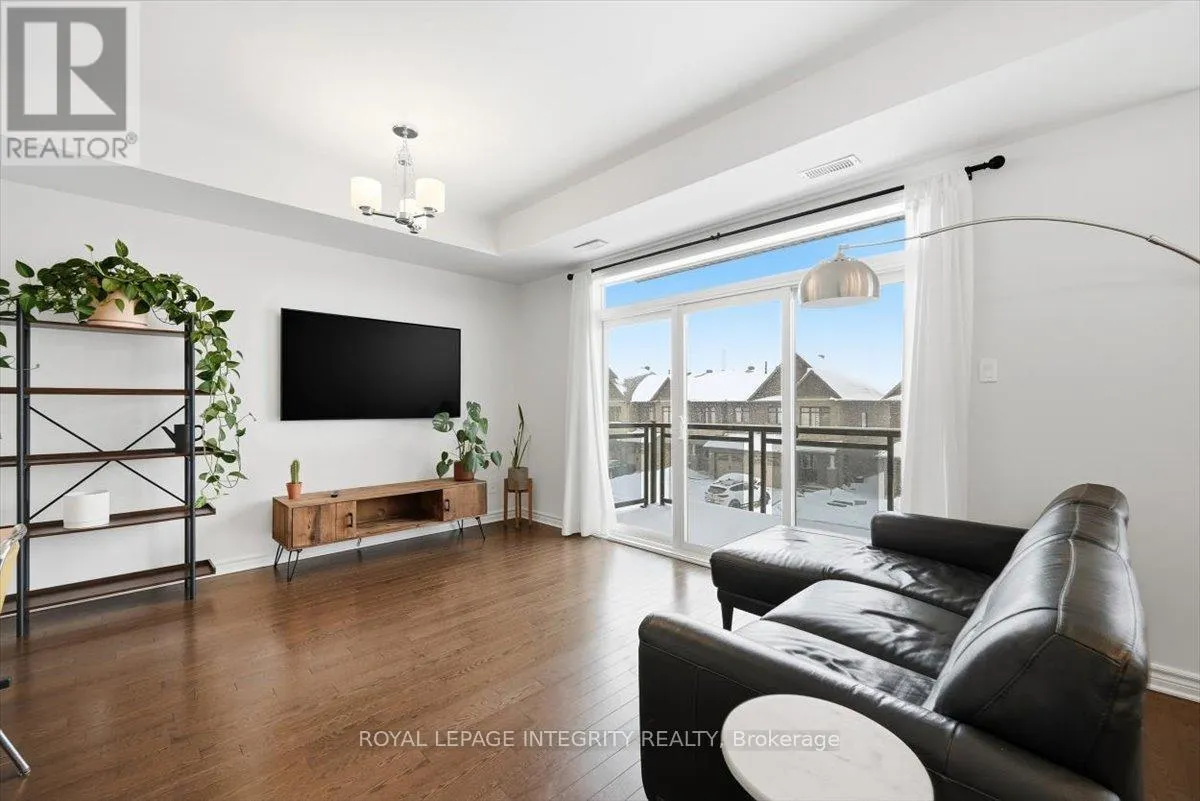 Cross Streets: Brian Coburn / Fern Casey. ** Directions: Brian Coburn to Fern Casey, right on Axis. Rarely offered Richcraft 3-bedroom, 3-bathroom upper-level condo with 2 parking spaces in sought-after Trailsedge! Nestled in a quiet Orléans neighbourhood, this bright and spacious open-concept home is filled with natural light and showcases 9-foot ceilings, gleaming hardwood floors, California shutters, and a thoughtfully designed layout. The stylish kitchen features crisp white cabinetry, quartz countertops, stainless steel appliances, and an extended island with seating that overlooks the inviting living and dining area. Step out from the living room onto your private balcony, perfect for relaxing or entertaining. The main level is completed by a convenient partial bathroom and a versatile nook ideal for a home office. Upstairs, you'll find a generous primary bedroom with a wall of closet and its own 3 piece ensuite, two well-sized secondary bedrooms, a full bathroom, and a dedicated laundry area. Low maintenance fees include snow removal, exterior landscaping and grass cutting, bike storage and general upkeep. Enjoy being surrounded by parks, nature trails, and bike paths, while still just minutes from shopping, amenities, and transit. (id:27476)