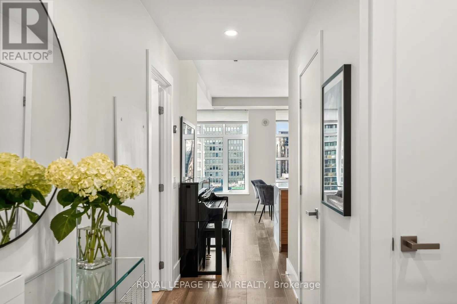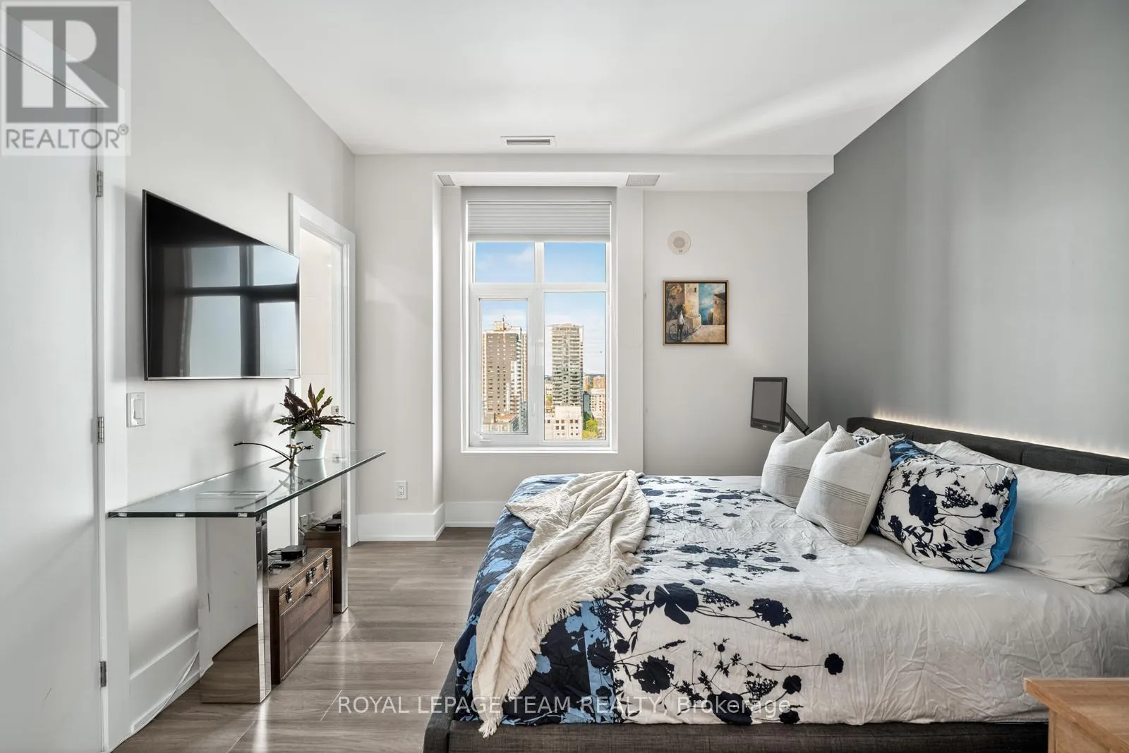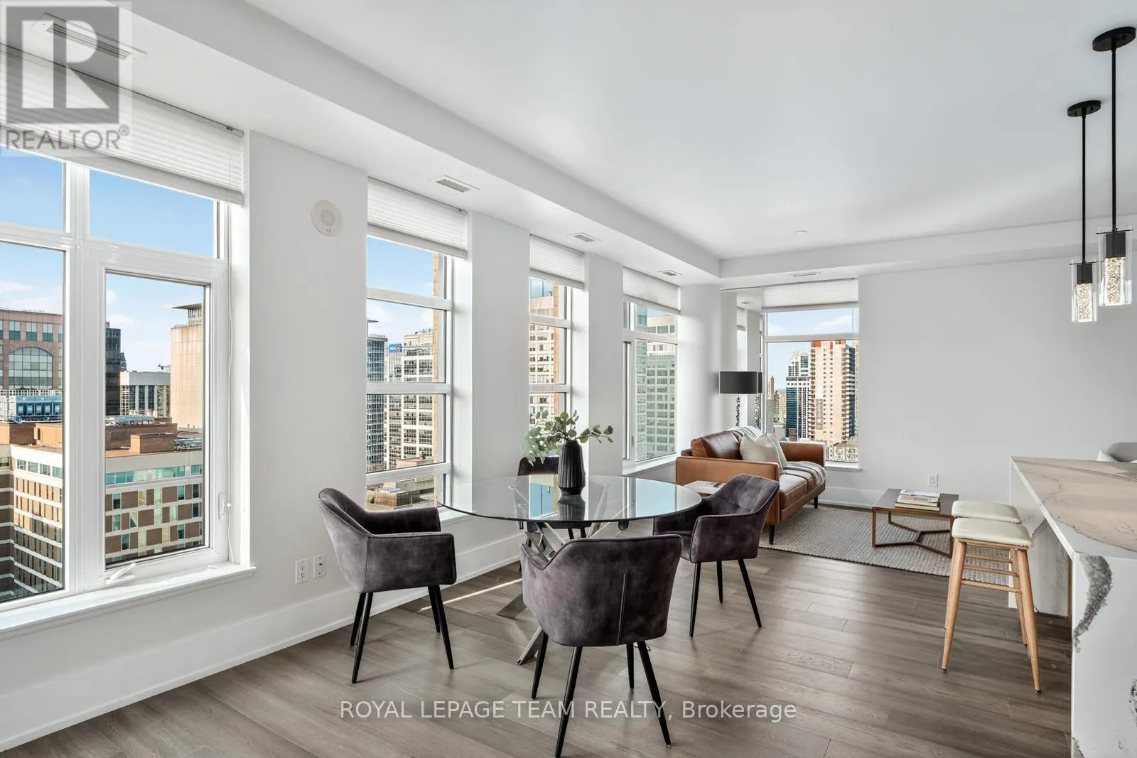 Cross Streets: Kent and Nepean. ** Directions: Kent St between Lisgar and Nepean. Experience refined urban living in this fully renovated 19th-floor corner penthouse at Hudson Park, showcasing approximately $120,000 in quality renovations. Floor-to-ceiling windows frame breathtaking panoramic views of downtown Ottawa the moment you step inside. The sun-filled, open-concept layout features wide plank hardwood floors, a private balcony, and a stunning custom kitchen complete with a one-of-a-kind quartz island, quartz backsplash, luxury appliances, and sleek walnut cabinetry - designed for both effortless entertaining and everyday elegance. The spacious primary suite offers a sunken walk-in closet and a spa-inspired ensuite with a rain shower. A generous second bedroom and full bath provide flexibility for guests or a sophisticated home office. Hudson Park, built by Charlesfort Developments, is celebrated for its Art Deco-inspired architecture and solid construction. Amenities include a rooftop terrace with BBQs and skyline views, fitness centre, lounge, indoor parking with planned EV charging installation, and two landscaped courtyards. Steps to Lyon LRT, Parliament, shops, cafés, and river pathways - this is a rare opportunity to own a truly exceptional downtown residence. (id:27476)