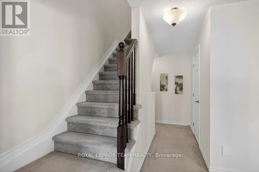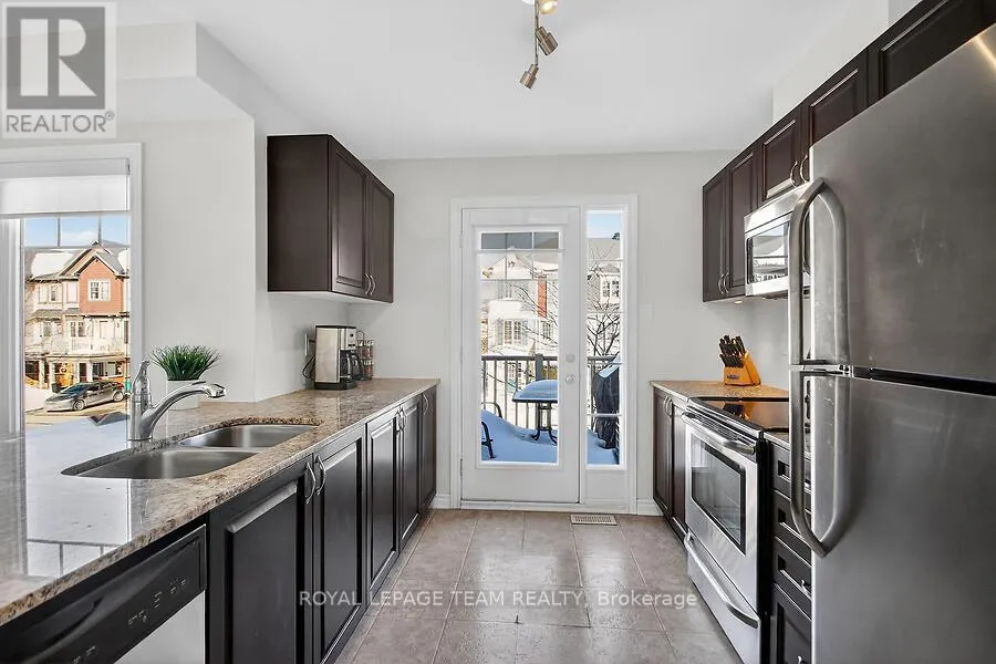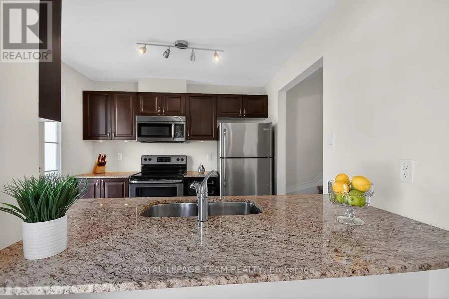Cross Streets: Huntmar/Maple Grove. ** Directions: Huntmar to Maple Grove, right on Grenadine. Welcome to this charming 3-storey townhome in the highly sought-after neighbourhood of Fairwinds. This Mattamy ' Appleby' model offers approx. 1100 sq ft of living space. A spacious foyer welcomes you on entry, with inside access to the garage, laundry room and storage. This bright, open-concept home features 2 bedrooms and 1.5 baths, with a combined living/dining area, ideal for entertaining. Functional kitchen with granite breakfast bar and stainless steel appliances. Relax on your large balcony, which is perfect for BBQ's and lounging. Large windows and a thoughtful layout maximize light and flow. Primary bedroom with walk in closet and direct access to main bath. Location is everything, enjoy quick access to shops, parks, transit, Tanger Outlets, restaurants and the CTC Centre. Extra long driveway can accommodate 2 cars. Move in ready for young professionals or investors. (id:27476)