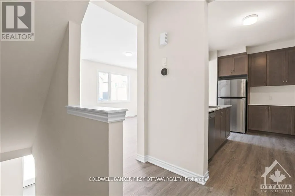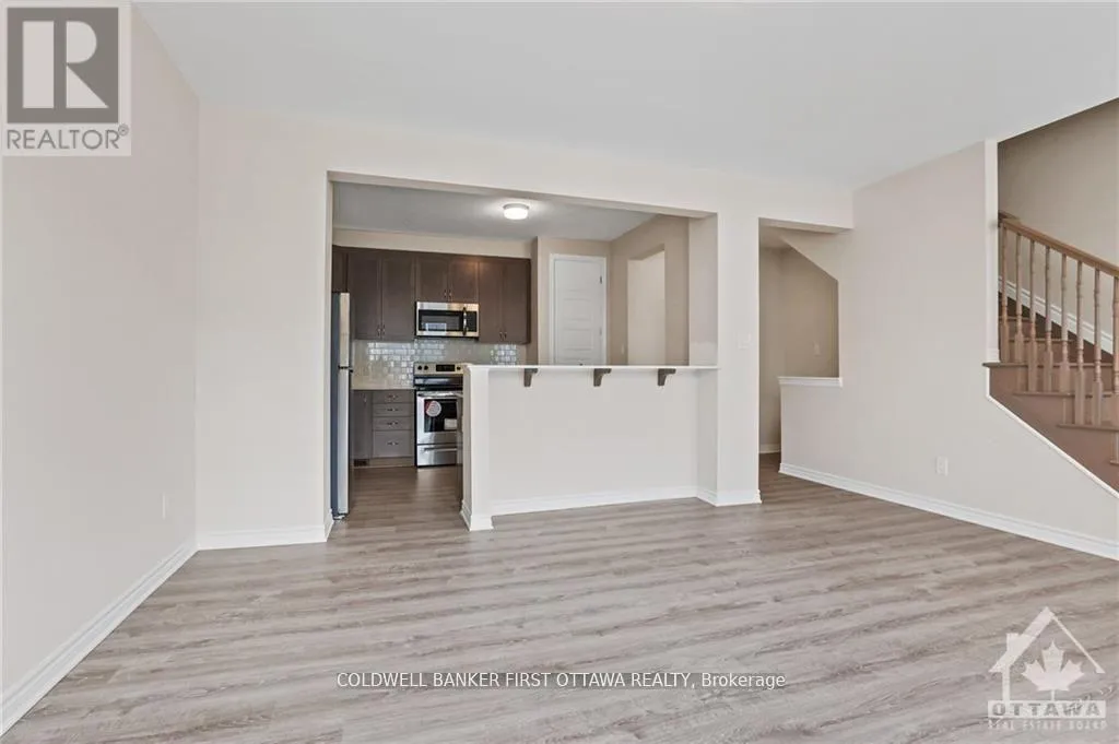 Stittsville Main, to Culdaff Road, Right on Ballinora Lane. Impeccably upgraded and turn-key, this exceptional townhome offers sophisticated living in a prime location. Situated with convenient access to Tanger Outlets, Highway 417, public transit, and planned community amenities, it is a model of modern efficiency. The interior showcases an airy, open-concept design with nine-foot ceilings, leading to a stunning kitchen appointed with quartz countertops, premium stainless steel appliances, and a breakfast bar. A private walkout balcony extends the living space outdoors, perfect for relaxing or entertaining. Upstairs, the thoughtfully designed floor plan features generously sized bedrooms, highlighted by a serene primary retreat with a walk-in closet and a three-piece ensuite. A flawless residence, ready for its next discerning owner (id:27476)