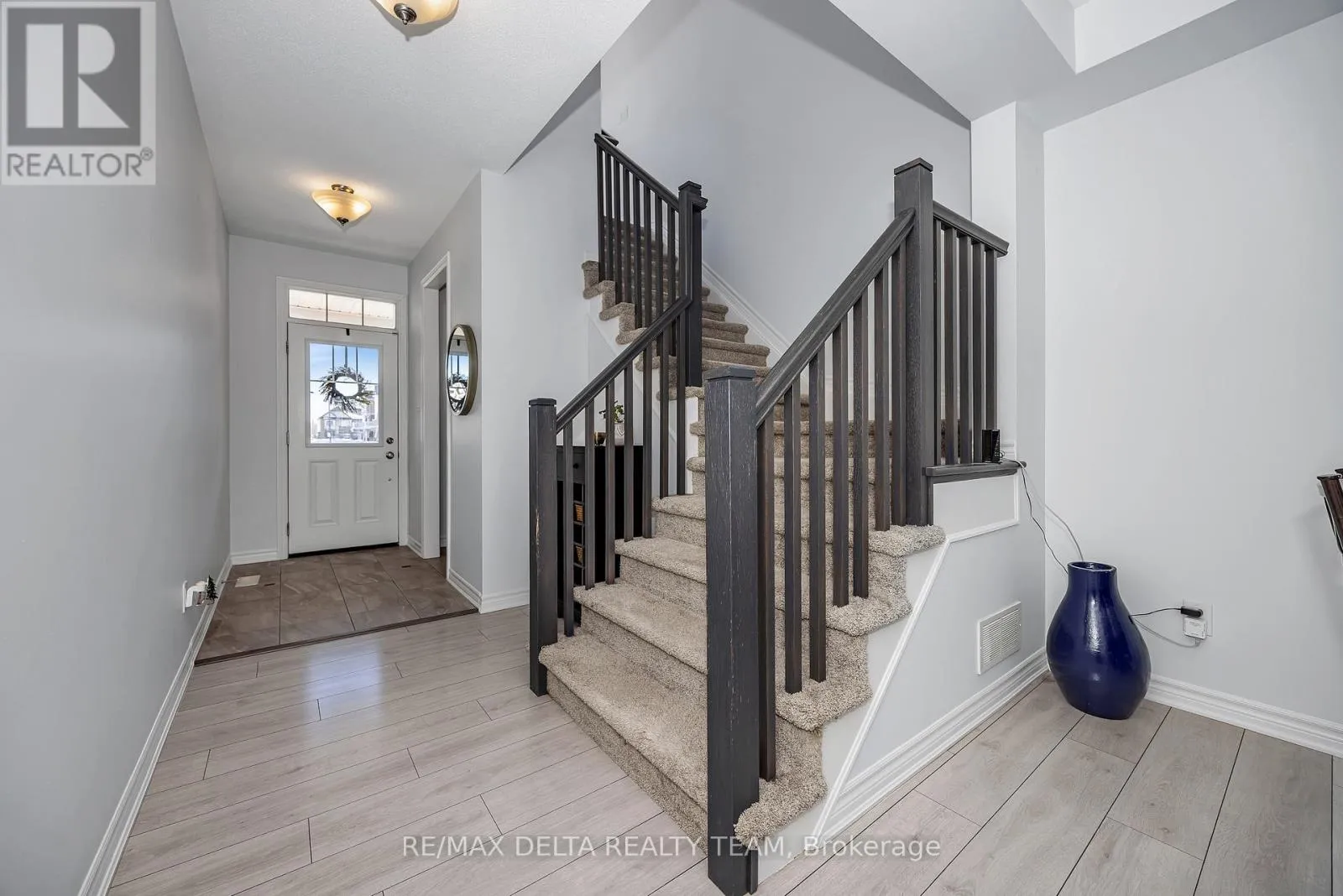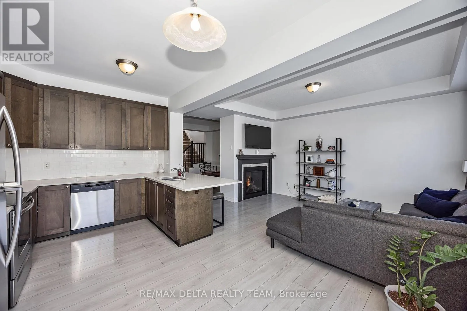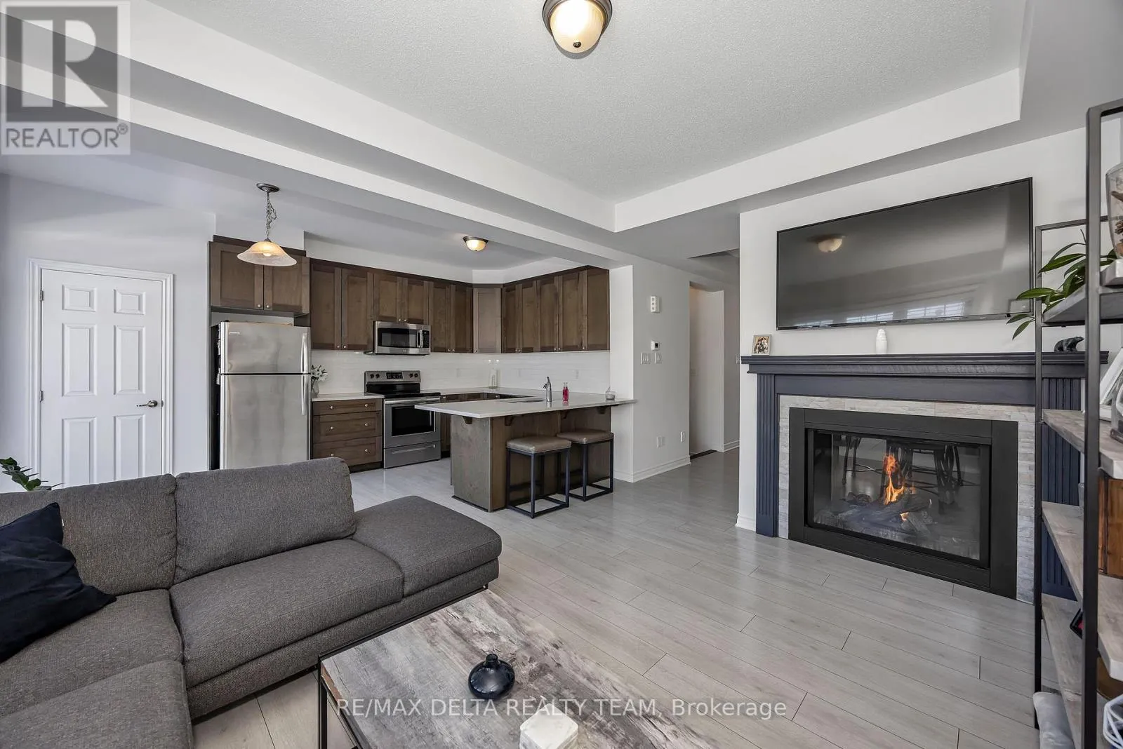 Cross Streets: Mer Bleue. ** Directions: Mer Bleue Road to Willow Aster. Welcome to this beautiful 3-bedroom, 3-bathroom Lilac Model by Mattamy Homes. Ideally located just minutes from shopping, recreation, restaurants, and schools, this property features no direct rear neighbors, separated instead by a peaceful walking path. The main floor offers a bright and functional layout, including a welcoming foyer with separate mudroom and closet, a spacious living and dining area divided by a stunning double-sided gas fireplace. An eat-in kitchen and powder room make this level perfect for both everyday living and entertaining. Upstairs, you will find a cozy sitting/loft area, three well-sized bedrooms, a convenient laundry room, and a 4-piece main bathroom. The primary bedroom serves as a private retreat, complete with a walk-in closet and a 4-piece ensuite. The basement is already framed with a subfloor and a 3-piece rough-in installed, offering excellent potential for future customization. Additional highlights include a landscaped interlock front that provides an extra parking spot, and a garage equipped with shelving and a workbench. This is a fantastic opportunity to own a well-maintained, move-in-ready home in a prime location. (id:27476)
