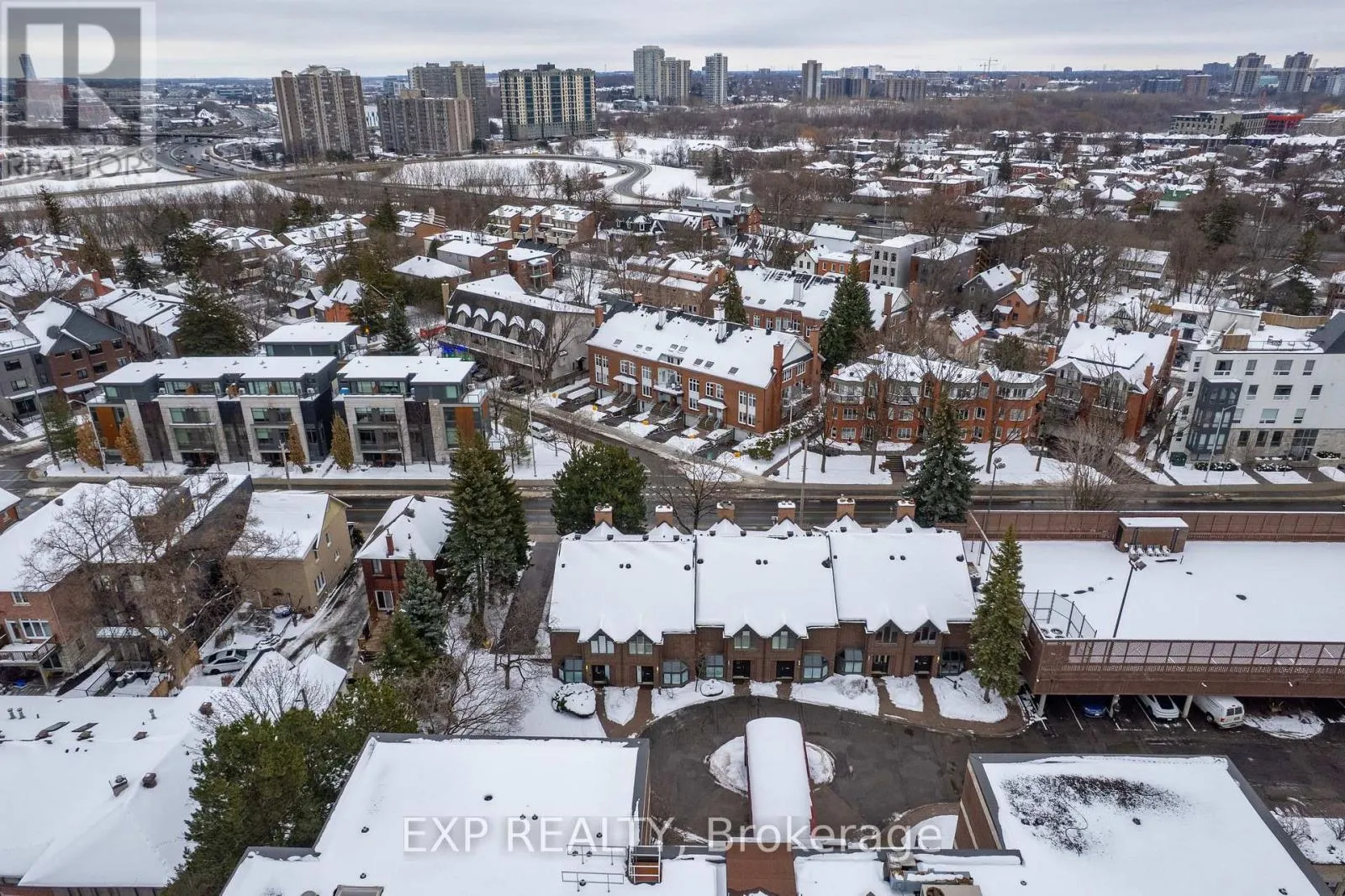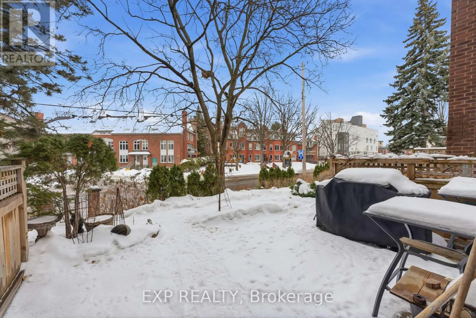 Cross Streets: Echo Drive / Main Street. ** Directions: Main St to Echo Drive. Welcome home to refined urban living at Canal One Eleven, a rare and prestigious townhouse condominium offering downtown living in an exclusive community, resort-style amenities, and unparalleled access to the Rideau Canal. This private residence welcomes you with a spacious foyer and hardwood flooring throughout, leading into a bright kitchen with a breakfast nook that flows seamlessly into the open-concept living and dining area, anchored by a cozy wood-burning fireplace. Upstairs, two generously sized bedrooms provide exceptional comfort, including a primary suite, with a full ensuite, double closets and a second bedroom with its own full bath. The finished basement adds valuable flexibility with a large den ideal for guests, a home office, or entertainment, along with a dedicated laundry room offering excellent storage. A completely separate private entrance provides direct access to your underground parking space, keeping your vehicle warm and secure year-round. The home also features a private backyard, perfect for outdoor living. Residents enjoy privileged access to premium amenities including an indoor pool, hot tub, sauna, fitness centre, squash court, golf swing net, rooftop tennis court, and on-site security. Steps from the canal, this exceptional location offers immediate access to Ottawa's highways and parkways for effortless commuting, along with skating, walking, and cycling paths that connect seamlessly to the University of Ottawa, Parliament Hill, and the best of downtown living. Some photos are virtually staged. Upstairs flooring and basement den flooring have been digitally altered in select photos to reflect renovation potential and does not reflect current conditions. (id:27476)