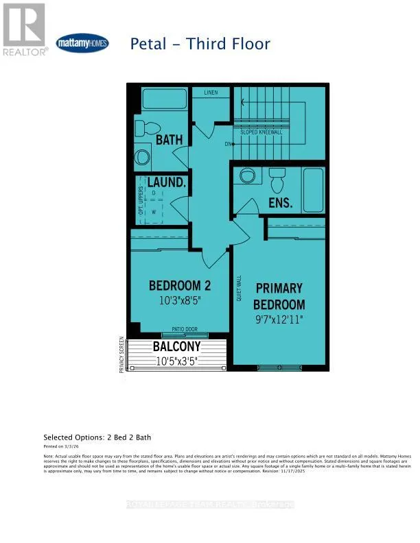 Cross Streets: Leone Farrell/Calendula. ** Directions: From March Rd. turn onto Linseed Rd. then turn right onto Leone Farrell St. then turn left onto Calendula Pl., property is on the left. Be the first to live in Mattamy's Petal, a beautifully designed 2 bed, 2 bath freehold townhome offering modern living and unbeatable convenience in the Northwoods community in Kanata. This 3-storey home features a welcoming foyer with closet space, direct garage access, a den, and luxury vinyl plank (LVP) flooring on the ground floor. The second floor boasts an open-concept great room, a modern kitchen with quartz countertops, ceramic backsplash, and stainless steel appliances, a dining area, and a private balcony for outdoor enjoyment. The second level also includes luxury vinyl plank (LVP) flooring and a powder room for convenience. On the third floor, the primary bedroom features a 3 pc ensuite, while the second bedroom offers ample space with access to the main full bath. A dedicated laundry area completes the upper level. A second full bath can be added for additional comfort and convenience. Located in the vibrant Northwood community, this home is just minutes away from the marketplace, highway, schools, shopping, restaurants, and more! Don't miss this incredible opportunity! Images provided are to showcase builder finishes only. (id:27476)