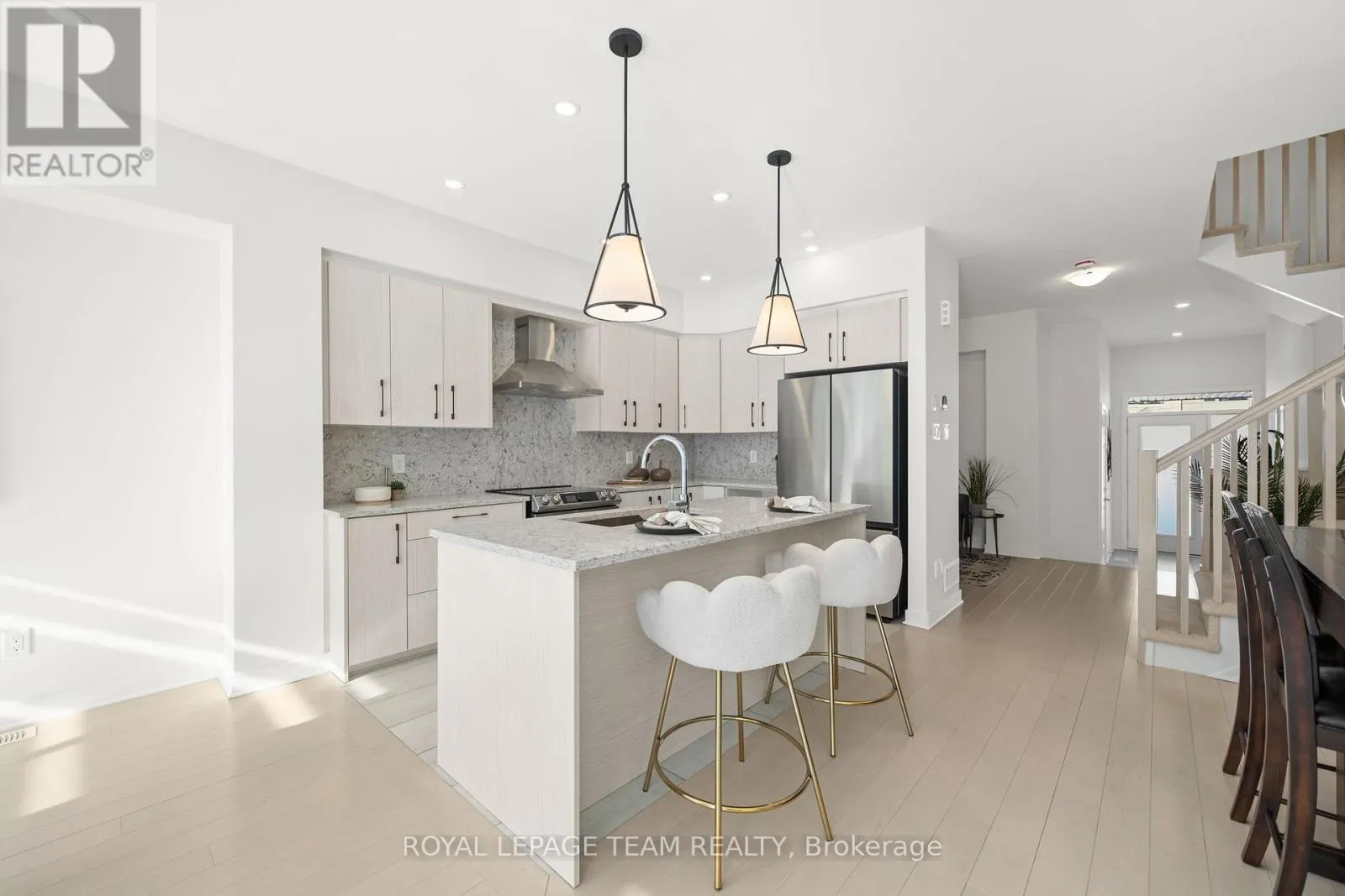 Cross Streets: Atrium Ridge and Brain Good Ave. ** Directions: Take River Road to Atrium Road, then turn onto Trumpeter Grove. Surrounded by parks and close to top schools, this beautifully designed 3-bedroom townhouse offers a popular layout with generous space. The main floor features an additional den-perfect as a home office or extra living area, your call. Countertops and backsplash are beautifully finished with quartz-elegant and easy to maintain. Upgraded cabinetry perfectly complements the luxury flooring, creating a bright and inviting atmosphere. The living room and dining area flow seamlessly with a well-defined, open layout.Elegant wood stair railings lead to the second floor, where 3 spacious bedrooms provide flexibility for your lifestyle. A generous loft offers a peaceful retreat for reading, relaxing, or play. The primary bathroom features a double sink vanity for added convenience.Finished basement with lookout adds extra brightness and livable space. This is truly a move-in-ready home that combines comfort, convenience, and style in one perfect package. (id:27476)