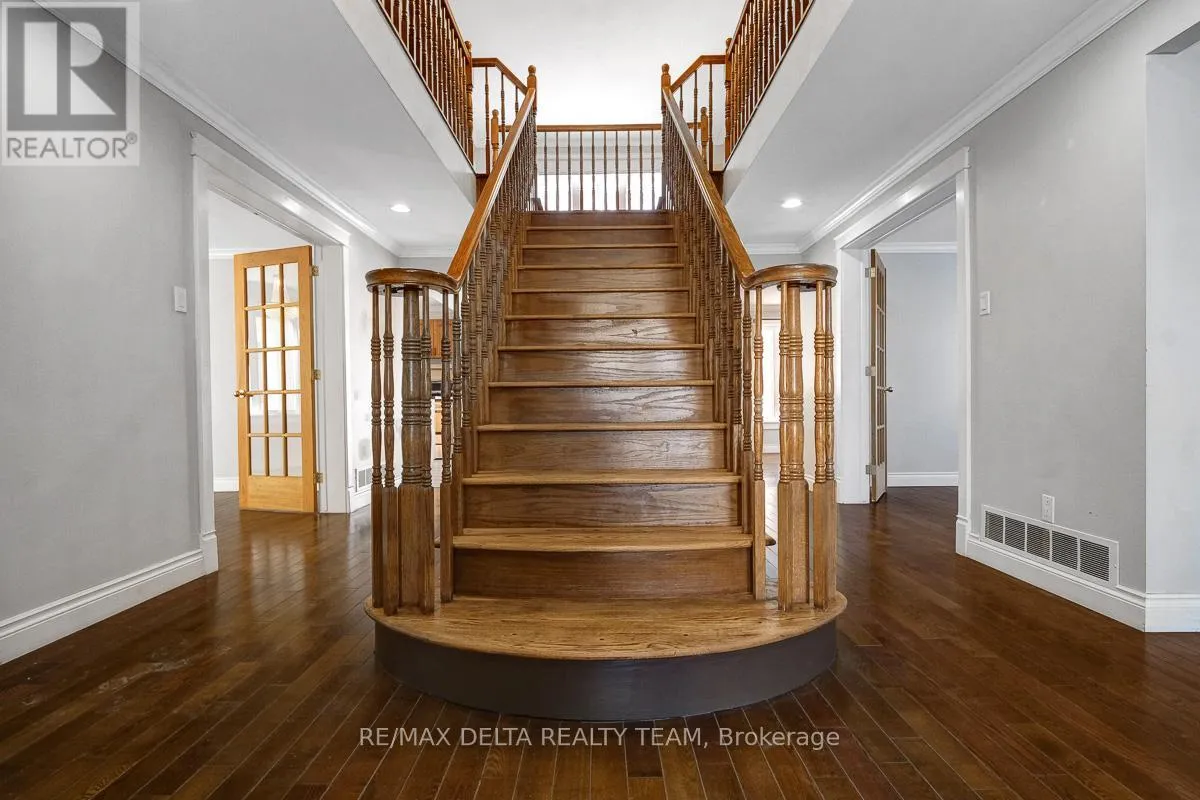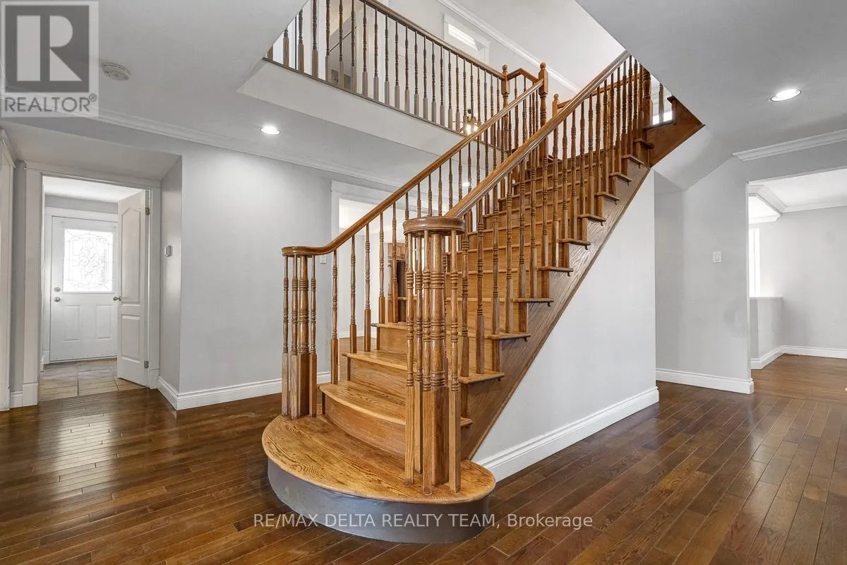 Cross Streets: Jeanne D'arc Blvd/Hunters Run Drive. ** Directions: HWY 174 to Jeanne D'arc S. to Hunters Run Drive. WALKING DISTANCE to many amenities including: groceries, cinema, banks, library, schools, parks, restaurants, stores & much more. STEPS away from bus stop, LRT & EASY access to downtown Ott via 174. Rarely available spacious 4-bedroom, 4-bath detached home backing onto a private ravine in a prime Ottawa location! Offering over 3,070 sq ft above grade plus a fully finished basement, this brick-front home combines space, privacy, and convenience - just steps to transit, including LRT, and minutes to downtown. The main floor features a stunning oak staircase and hardwood flooring throughout the formal living and dining rooms, a spacious family room with wood-burning fireplace, and a dedicated den/home office perfect for remote work. The eat-in kitchen offers natural wood cabinetry, granite countertops, a large island, and stainless steel appliances, with patio doors leading to the west-facing backyard.Enjoy a fully fenced, pool-sized yard with deck and shed, surrounded by mature trees and backing directly onto a ravine for exceptional privacy and peaceful views. Upstairs, hardwood continues throughout, including a bright loft overlooking the ravine. The generous primary suite features a walk-in closet with organizers, built-in makeup station, and a renovated ensuite with freestanding tub and glass shower. All secondary bedrooms are well-sized and filled with natural light. The finished basement offers a massive recreation room and full bathroom, ideal for a teen retreat, guest space, or future in-law potential, plus ample storage. Updates include: Roof (35-year shingles, 2009), Furnace & A/C (2021), owned hot water tank, new garage doors, and newer interlock for added curb appeal.Double garage and double-wide driveway accommodate up to 6 vehicles. Rare ravine lot offering space inside and out, with easy access to transit, amenities, and downtown. 24-hour irrevocable on all offers. (id:27476)