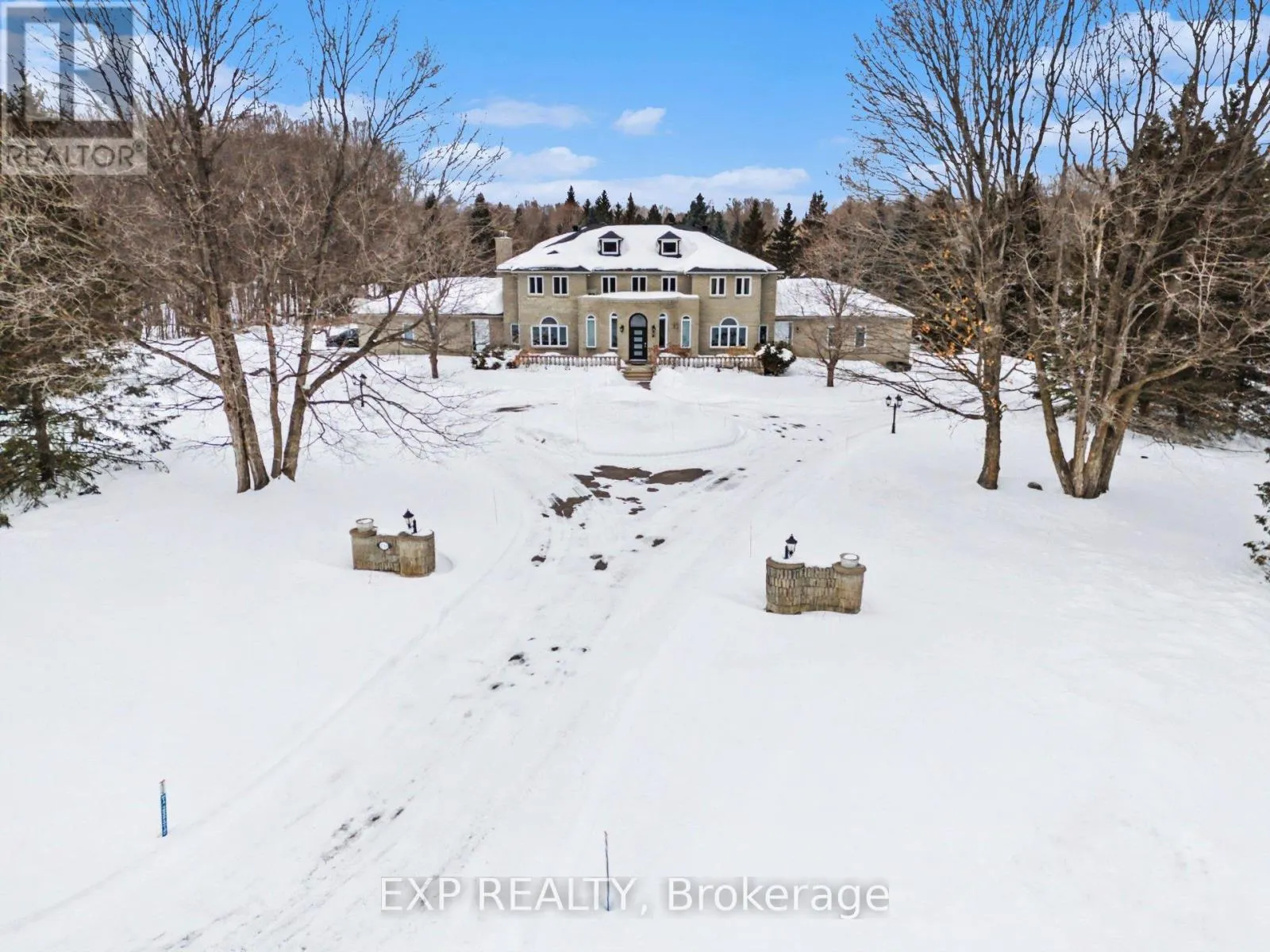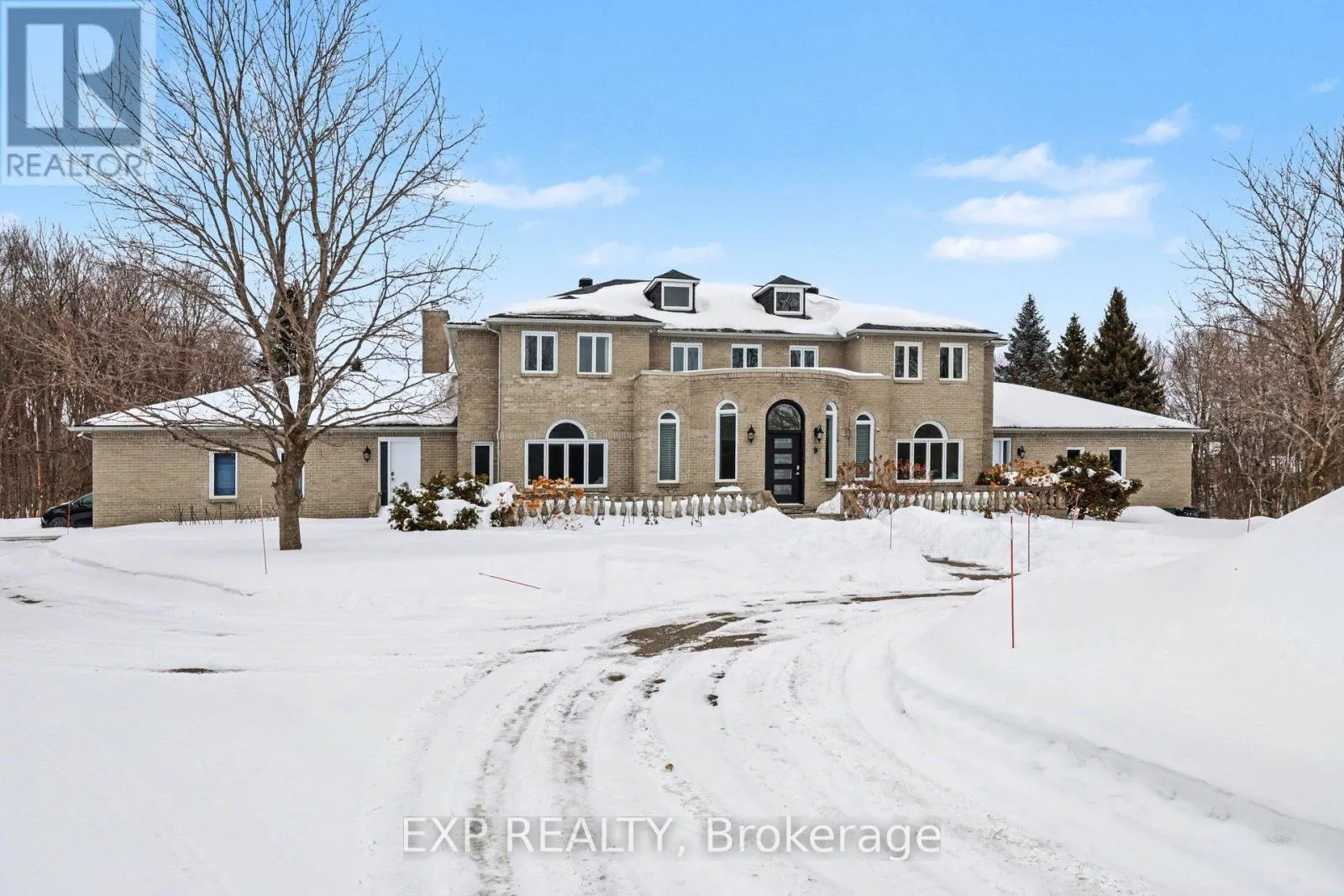 Cross Streets: Limebank Rd & Mitch Owens Rd. ** Directions: Head South on Limebank Road then turn left onto Knights Road. Property will be on your left. Welcome to your private estate in the heart of Rideau Forest, set on approximately 2 acres surrounded by mature trees and manicured grounds. Offering over 5,500 sq ft above grade, this impressive all brick two story home features 5 bedrooms and 7 bathrooms, with every bedroom complete with its own ensuite. A grand vaulted foyer sets the tone, leading into expansive principal rooms designed for both everyday living and large scale entertaining. The formal dining room comfortably accommodates twenty guests, while the kitchen and breakfast area overlook the rear gardens and inground Gunite pool, creating a seamless indoor outdoor connection. The main level includes multiple living spaces, a den or optional bedroom, and elegant finishes throughout including hardwood flooring and crown moulding. Upstairs, the primary suite is a retreat of its own, featuring a marble appointed 5 piece ensuite, generous walk in closet, and a private sitting area framed by oversized windows. The fully finished lower level adds exceptional versatility with a sprawling recreation room, media space, full bath, additional bedroom, and direct access from the garage, ideal for extended family or guests. Car enthusiasts and collectors will appreciate the rare dual triple car garages with inside entry, offering parking for six vehicles. Major updates include roof, windows and exterior doors replaced in 2018, along with two high efficiency furnaces, two A/C units, and two hot water tanks. Outdoors, enjoy a 36' x 17' inground pool enclosed by elegant wrought iron fencing, expansive interlock, and lush lawns that offer both privacy and presence. A distinguished residence in one of the city's most sought after estate communities. (id:27476)