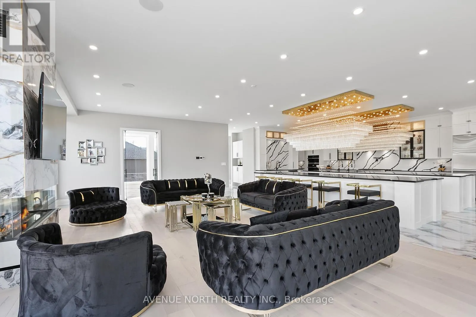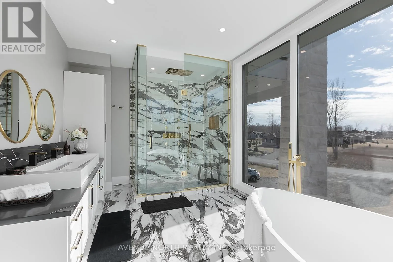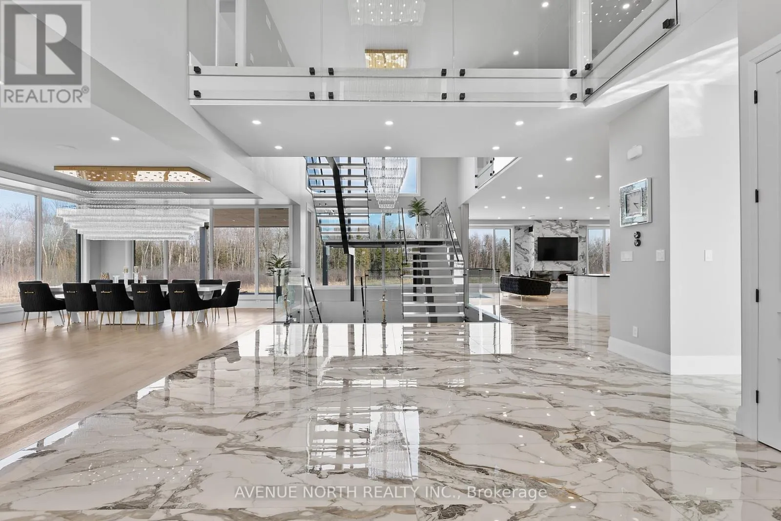 Cross Streets: Old Prescott Road to Shoreway Drive. ** Directions: Old Prospect Road to Donwell Drive, Right onto Shoreway Drive. WATERFRONT LUXURY MASTER PIECE ON SUNSET LAKE! Situated on an extraordinary 38,947-square-foot lot with a private sandy beach, this 2023-built waterfront estate offers over 7,400 square feet of refined living space and breathtaking sunset views. Designed for both multi-generational living and grand entertaining, the home can be offered fully furnished at an additional cost, providing a seamless turnkey opportunity. A dramatic 19-foot foyer welcomes you into an elegant main level featuring 10-foot ceilings and an open-concept layout. The chef's kitchen is a true showpiece with two impressive 18-foot islands, premium Jenn-Air appliances, a 6-burner gas range, double ovens, a 36" fridge, separate 30" freezer, coffee bar, private butler's pantry, and walk-in pantry. The kitchen flows seamlessly into the lake-facing great room with fireplace and stunning water views. A ventilated sunroom and glass-enclosed study provide exceptional spaces for relaxation and working from home.The main floor also includes a laundry room, mudroom, full bath with pet wash, and access to a 5-car garage with 15-foot ceilings-ideal for car lifts.Upstairs, a spacious landing opens to a family room. The primary suite features a fireplace, private balcony, and spa-inspired ensuite with a soaking tub and dual sinks. Five additional bedrooms, three full baths, a second laundry room, and an expansive terrace perfect for entertaining complete the level.Outdoor living is exceptional, with multiple balconies, a covered hot tub area with outdoor fireplace, and direct waterfront access from the private sandy beach. The semi-finished basement is pre-wired with plumbing rough-ins, offering endless potential for a gym, theatre, or custom retreat. A rare opportunity to own a true lakeside masterpiece combining luxury, scale, and spectacular natural beauty for creating family memories. ** This is a linked property.** (id:27476)