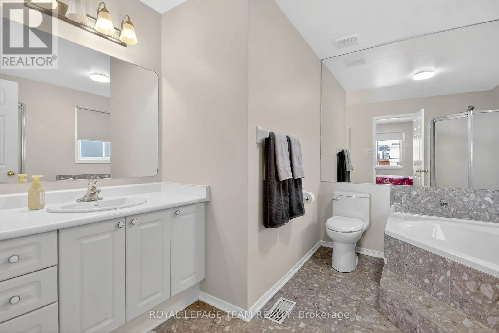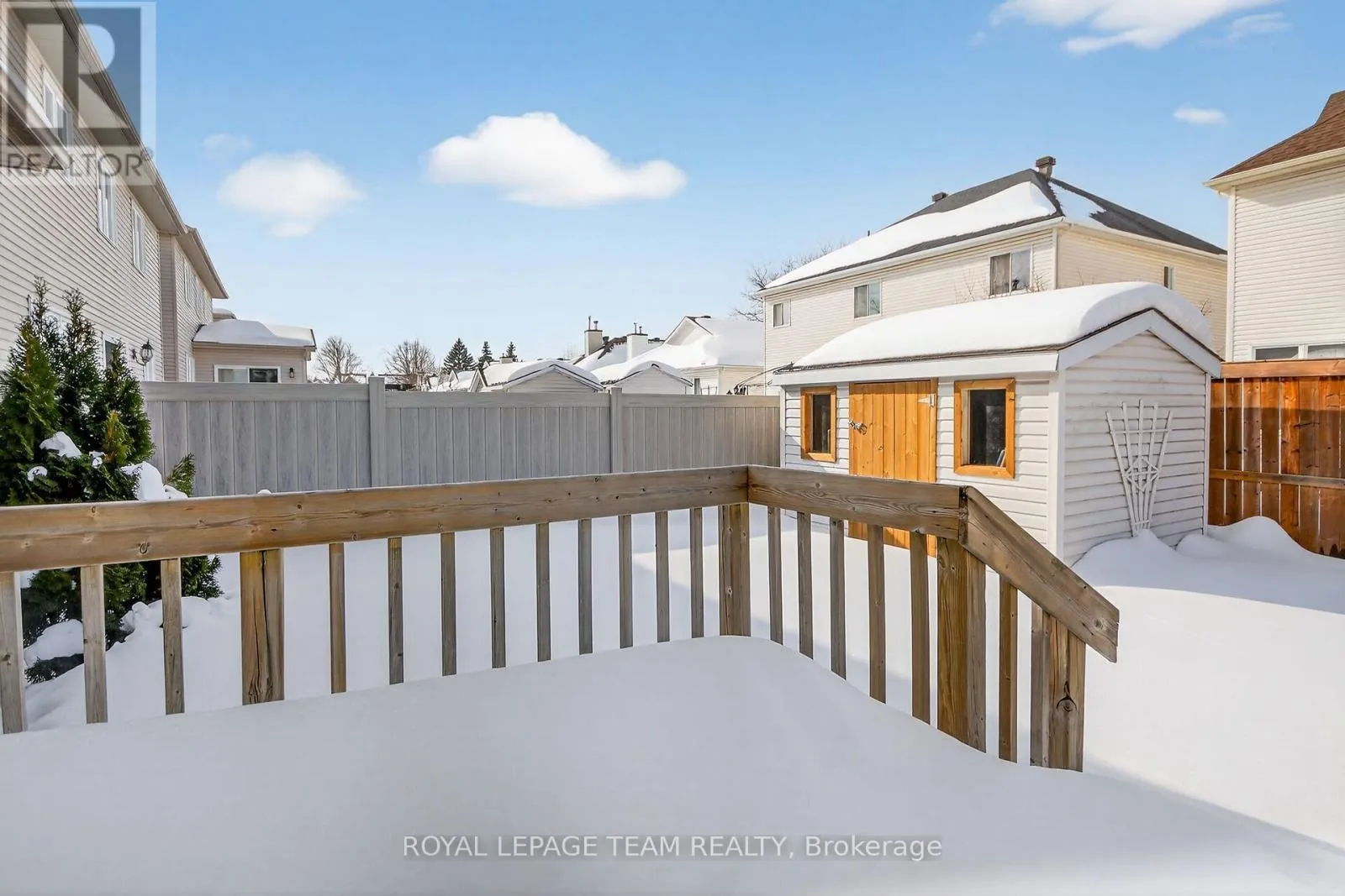 Cross Streets: Woodroofe Ave / Rideaucrest Dr. ** Directions: From Woodroofe Ave., turn east on Rideaucrest, turn right on Markland Cr., Newborough Cr. is on the Right. Welcome to this beautiful home on quiet, friendly Newborough Crescent, in the heart of Barrhaven, Chapman Mills. This spacious, well designed two-bedroom home has been meticulously maintained and well loved by previous owner. Built by Tamarack Homes, the "Bridlington" model provides 1333 sq. ft* of above grade comfortable living space (MPAC*). The kitchen offers an abundance of storage and counter space, a microwave shelf and a pantry. Enjoy morning coffee in the sunny southern eat-in nook, nestled by the bay windows. Living/Dining rooms are open-concept, framed by the handy bar counter, and accented with a cozy gas fireplace. Perfect for entertaining! Step out to the 3-season solarium and enjoy the setting sun and backyard views, through the all-around window enclosure, (flooring 2025). Gorgeous primary bedroom looks out on the backyard. Large enough to easily accommodate a king-sized bed, with sizable closet and extra floorspace. Retreat to the luxurious 4-pce ensuite bathroom, marble floors, roman tub, separate shower. Tidy, fully fenced yard, comes complete with a shed. Main living areas are graced by gleaming hardwood flooring. Tile flooring in Kitchen and Foyer 2025. New fencing 2021. Large unfinished basement, w/high ceilings, primed for future development, if desired. Easy access main floor washer/dryer. Inside access to 2-car garage. Laneway re-paved in 2021. Check out the attractive interlock walkway! Offers to be presented Tuesday, March 10; however, the sellers reserve the right to entertain pre-emptive offers. Steps to top schools, parks and the Chapman Mills Conservation area along the Rideau River. Tons of shopping, services and restaurants, all just around the corner. Farm Boy is a 3-minute drive! This gem of a bungalow won't last long. Book your viewing today! (id:27476)