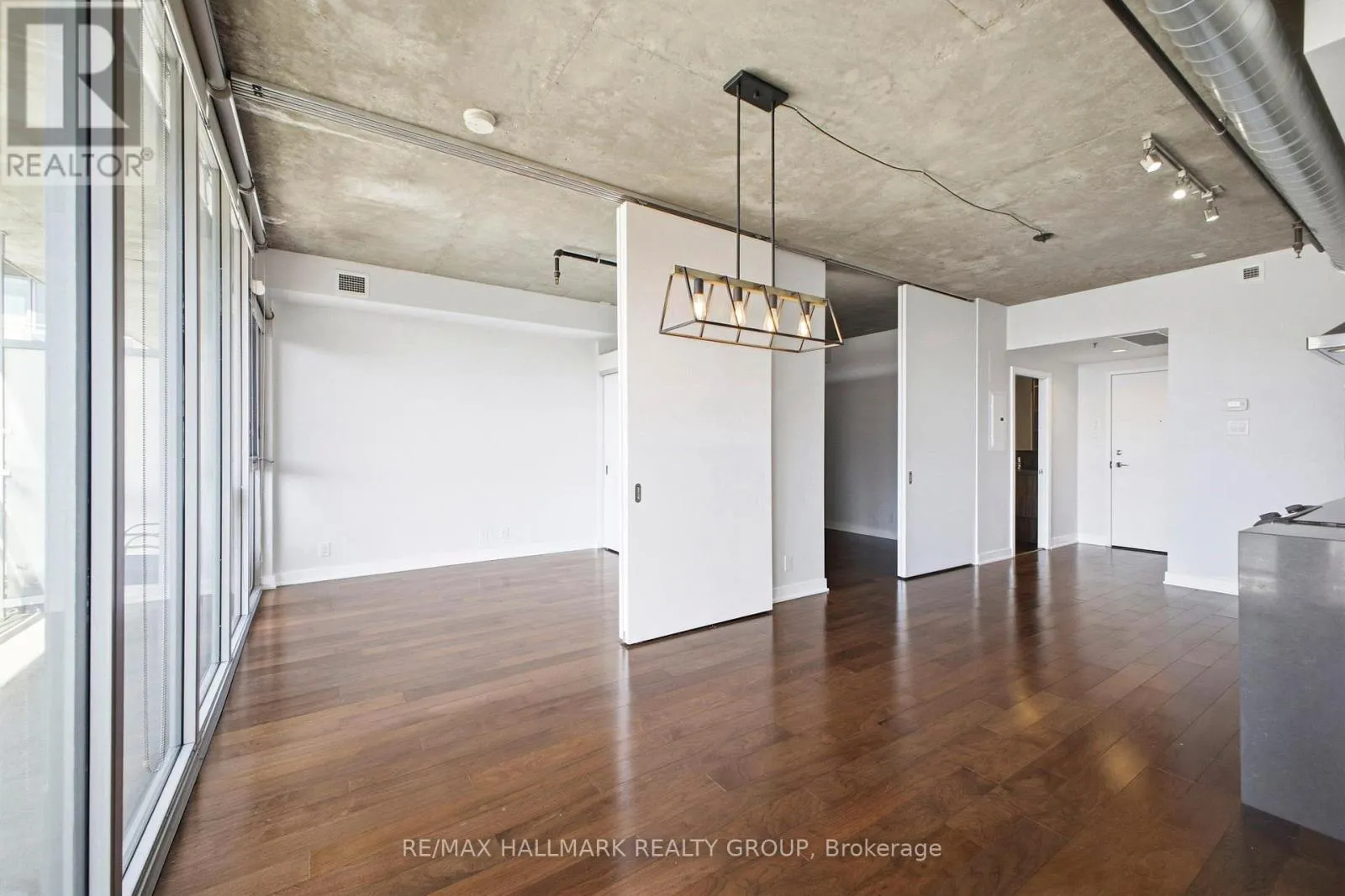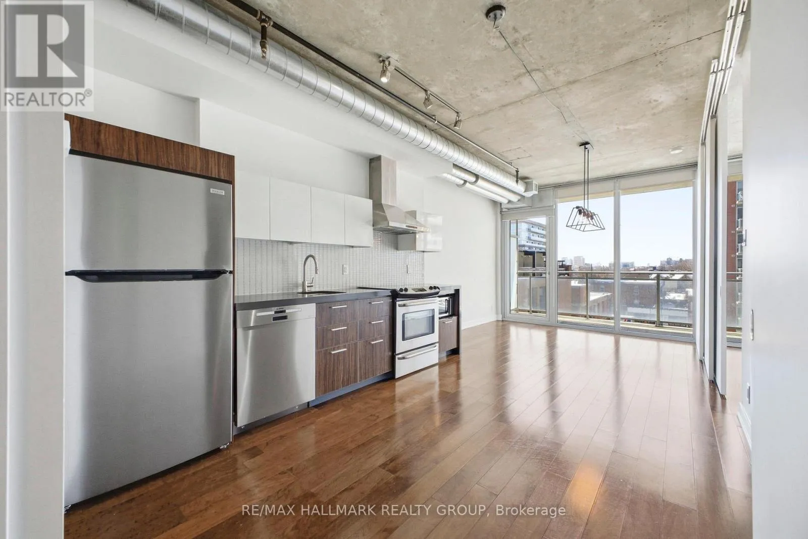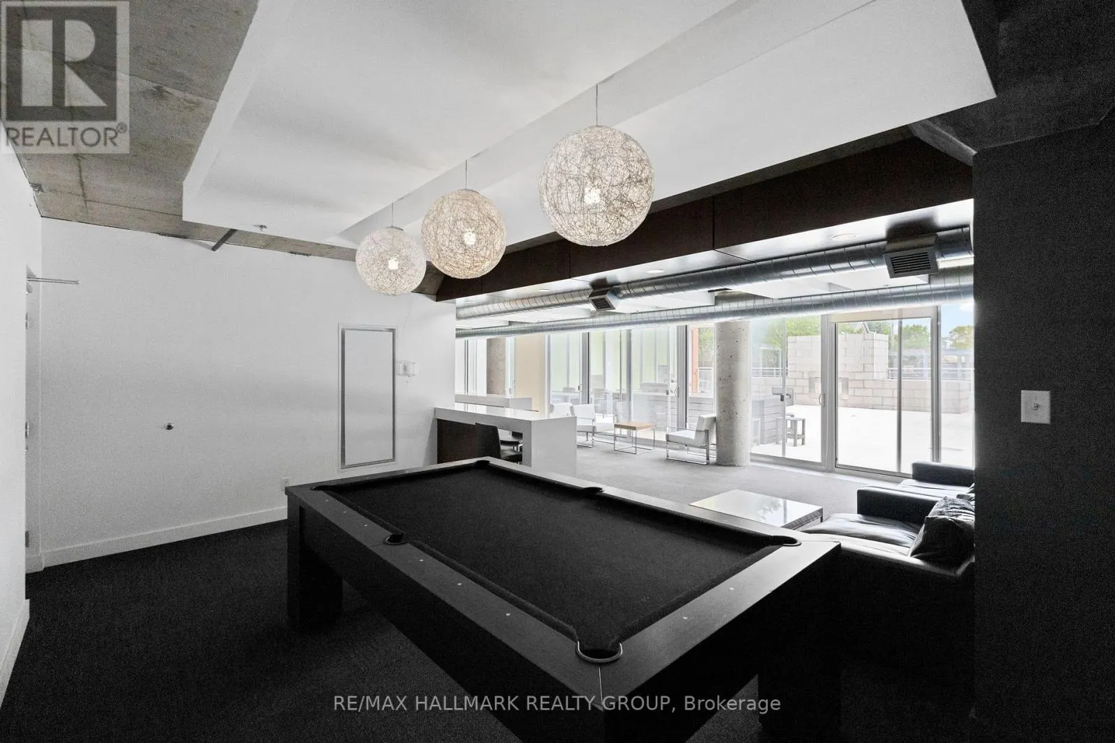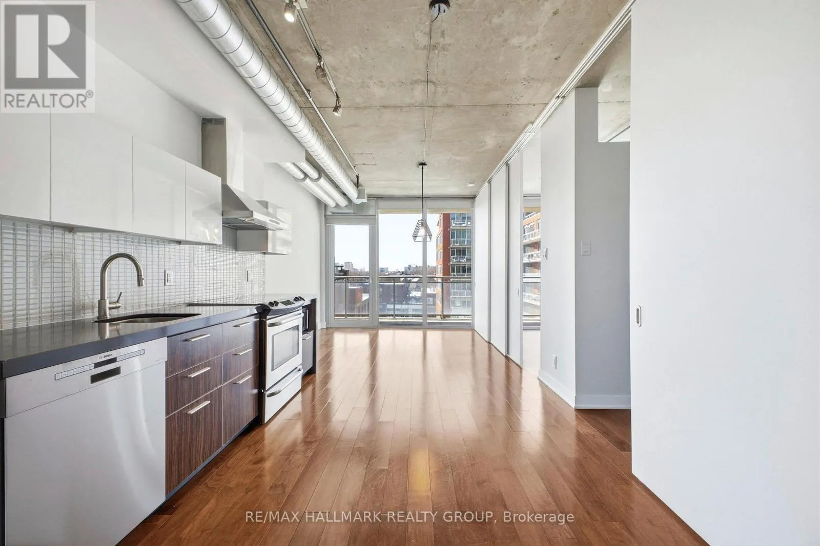 Bank Street & McLeod Street Experience urban living at its finest in the heart of vibrant Centretown. Welcome to The Hideaway at 340 McLeod Street, a sophisticated 1-bedroom plus den residence that perfectly balances modern luxury with a stylish industrial edge. Spanning 615 square feet of thoughtfully designed living space, this condo feels remarkably open and airy thanks to nine-foot ceilings, floor-to-ceiling windows, and exposed concrete and piping that lend a chic, loft-like character to the home. The interior features gleaming hardwood floors throughout, a stylish and functional kitchen, boasting quartz countertops and stainless steel appliances. The primary bedroom serves as a flexible retreat with movable privacy doors, while the generously sized den offers the perfect footprint for a home office, guest space, or quiet library. Beyond the living area, step out onto your private balcony to enjoy your morning coffee or unwind in the evening. While this unit is centered on a walkable lifestyle, it includes a dedicated storage locker for your convenience. Residents of The Hideaway enjoy a resort-style amenity package that is second to none in the city. You will have access to an outdoor heated saltwater pool with a dedicated lounging area, a ground-floor terrace with a cozy fireplace, a fully equipped fitness center, a theater room, and a stylish party room complete with a bar and pool table. Situated just steps from the shops and restaurants of Elgin Street and Lansdowne, and with easy access to Highway 417 and Parliament Hill, this property offers an unparalleled downtown experience. (id:27476)