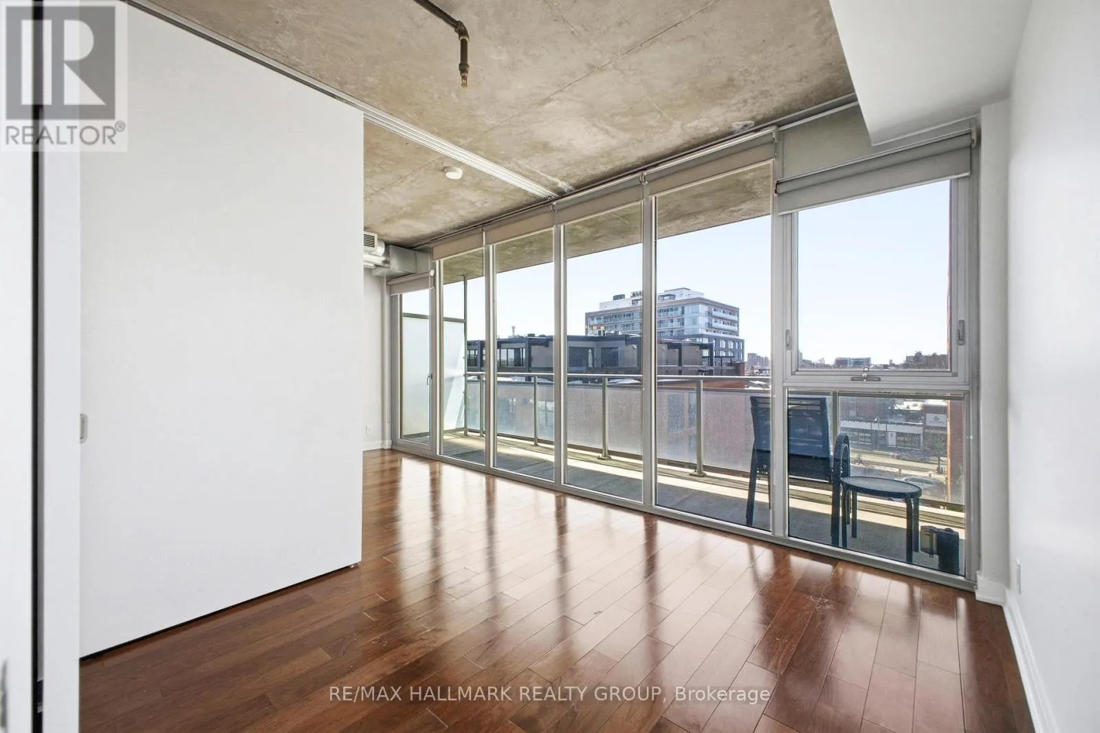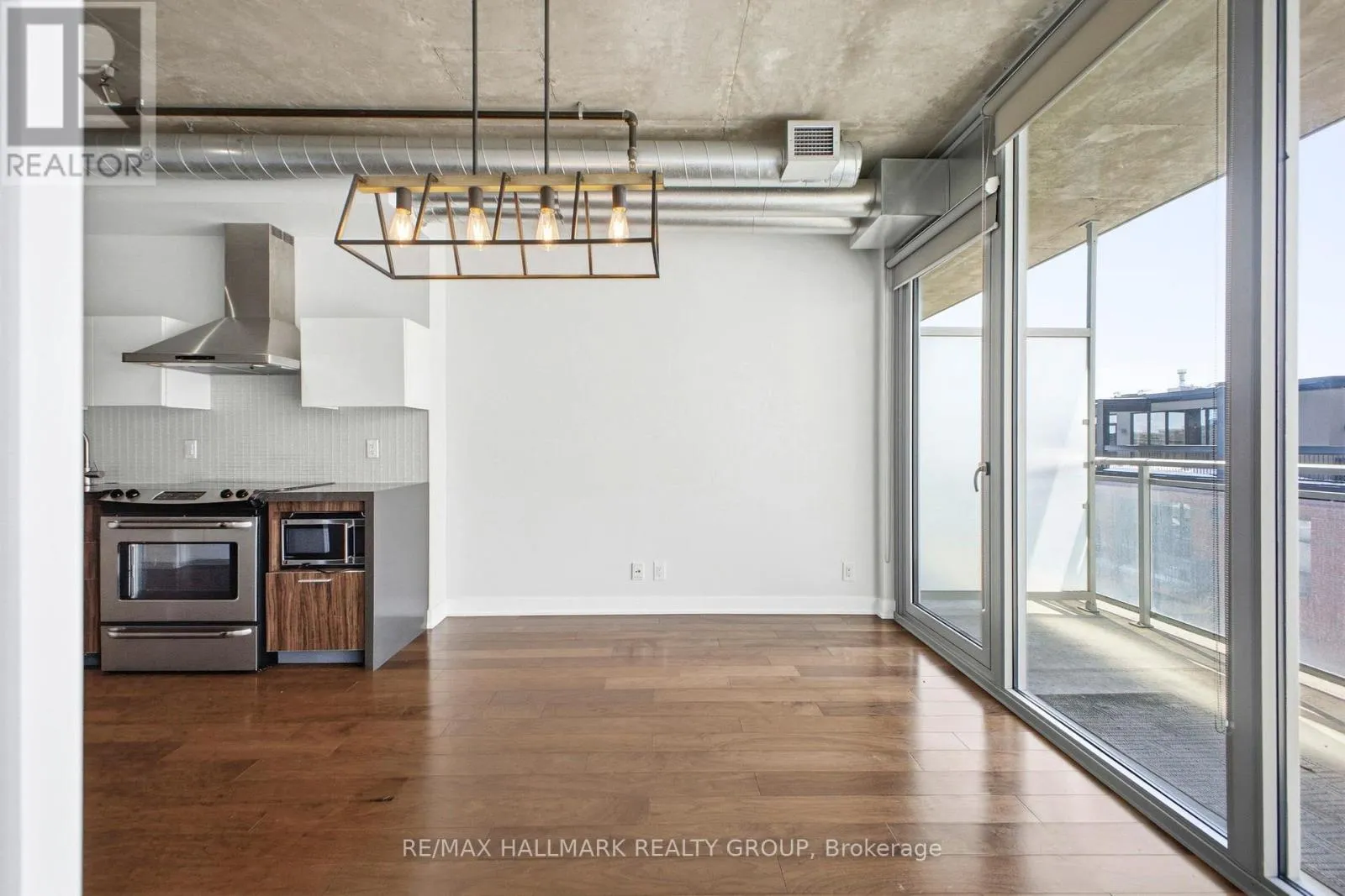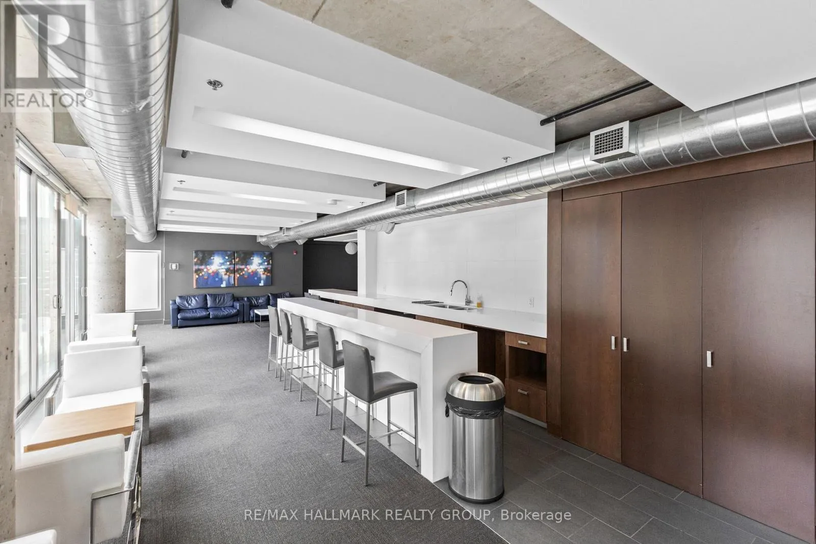 Bank Street & McLeod Street Experience urban living at its finest in the heart of vibrant Centretown. Welcome to The Hideaway at 340 McLeod Street, a sophisticated 1-bedroom plus den residence that perfectly balances modern luxury with a stylish industrial edge. Spanning 615 square feet of thoughtfully designed living space, this condo feels remarkably open and airy thanks to nine-foot ceilings, floor-to-ceiling windows, and exposed concrete and piping that lend a chic, loft-like character to the home. The interior features gleaming hardwood floors throughout, a stylish and functional kitchen, boasting quartz countertops and stainless steel appliances. The primary bedroom serves as a flexible retreat with movable privacy doors, while the generously sized den offers the perfect footprint for a home office, guest space, or quiet library. Beyond the living area, step out onto your private balcony to enjoy your morning coffee or unwind in the evening. While this unit is centered on a walkable lifestyle, it includes a dedicated storage locker for your convenience. Residents of The Hideaway enjoy a resort-style amenity package that is second to none in the city. You will have access to an outdoor heated saltwater pool with a dedicated lounging area, a ground-floor terrace with a cozy fireplace, a fully equipped fitness center, a theater room, and a stylish party room complete with a bar and pool table. Situated just steps from the shops and restaurants of Elgin Street and Lansdowne, and with easy access to Highway 417 and Parliament Hill, this property offers an unparalleled downtown experience. (id:27476)