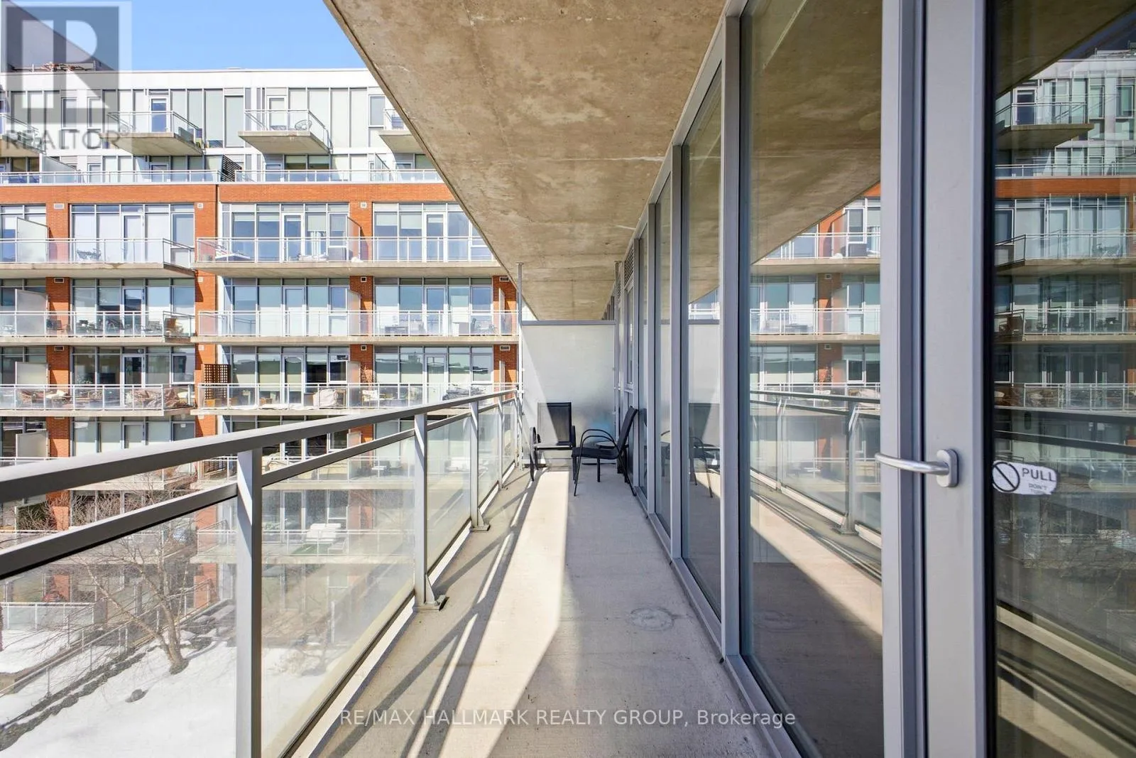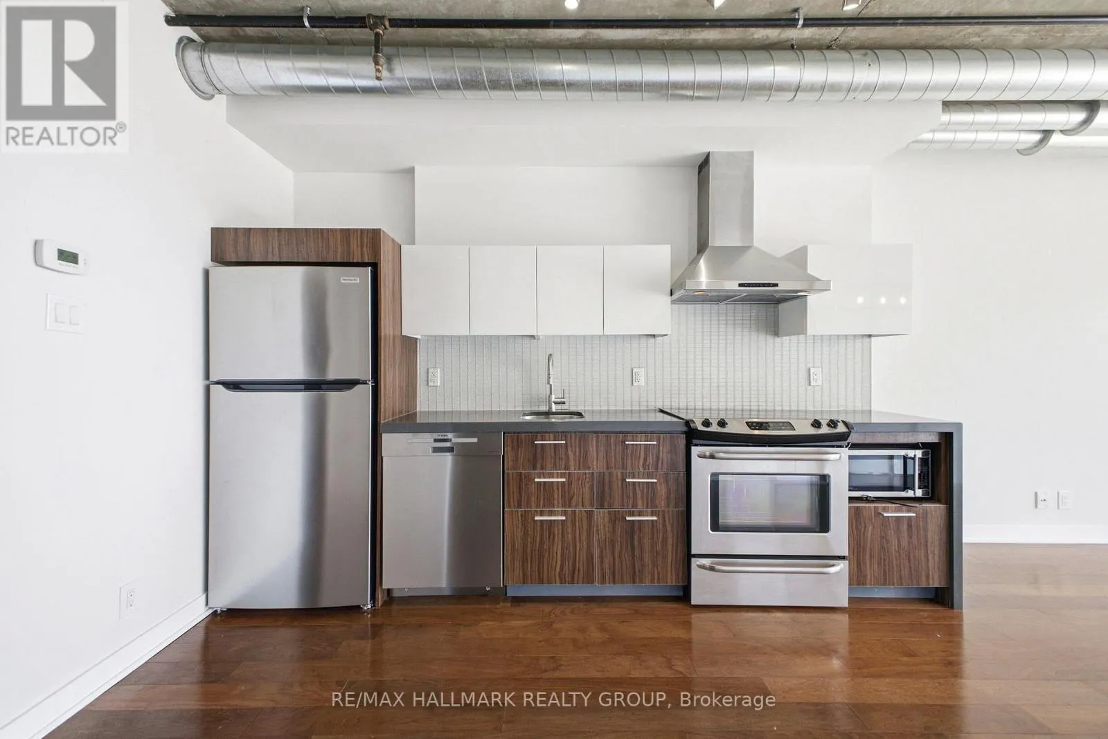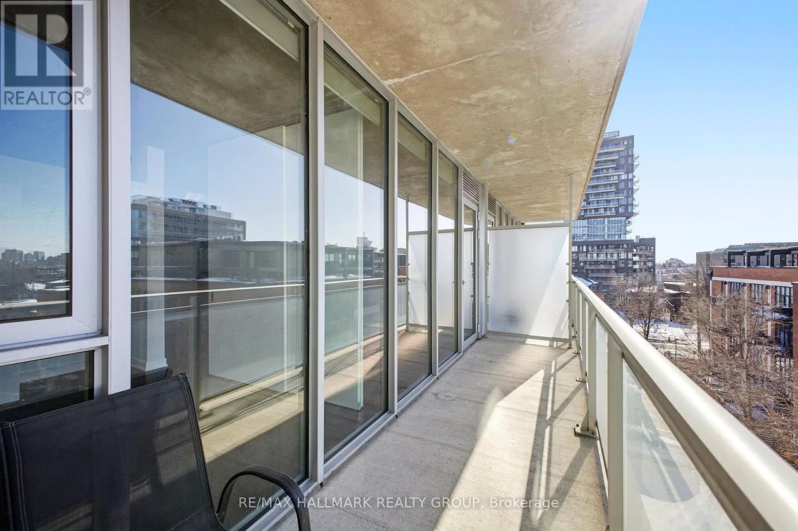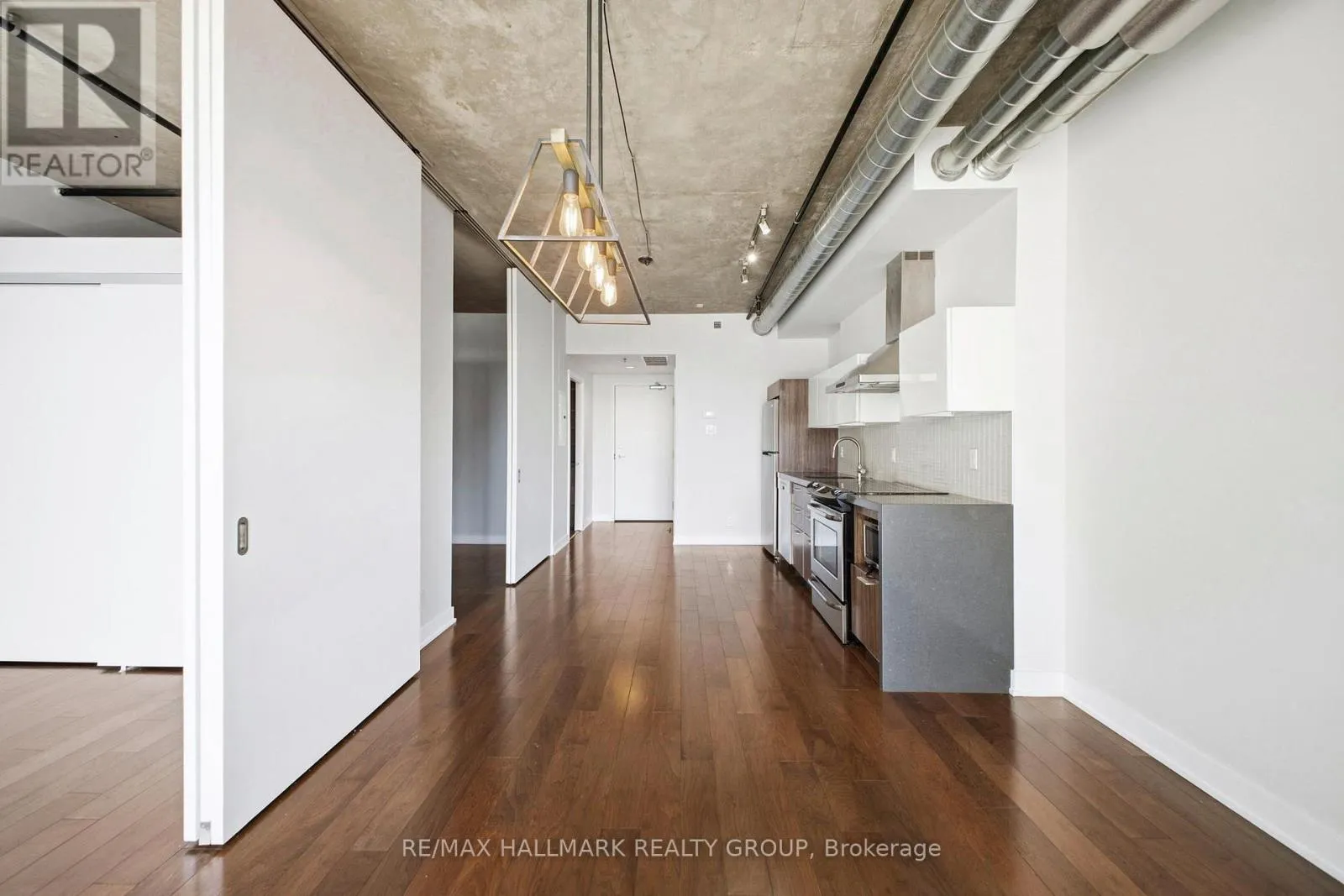 Bank Street & McLeod Street Experience urban living at its finest in the heart of vibrant Centretown. Welcome to The Hideaway at 340 McLeod Street, a sophisticated 1-bedroom plus den residence that perfectly balances modern luxury with a stylish industrial edge. Spanning 615 square feet of thoughtfully designed living space, this condo feels remarkably open and airy thanks to nine-foot ceilings, floor-to-ceiling windows, and exposed concrete and piping that lend a chic, loft-like character to the home. The interior features gleaming hardwood floors throughout, a stylish and functional kitchen, boasting quartz countertops and stainless steel appliances. The primary bedroom serves as a flexible retreat with movable privacy doors, while the generously sized den offers the perfect footprint for a home office, guest space, or quiet library. Beyond the living area, step out onto your private balcony to enjoy your morning coffee or unwind in the evening. While this unit is centered on a walkable lifestyle, it includes a dedicated storage locker for your convenience. Residents of The Hideaway enjoy a resort-style amenity package that is second to none in the city. You will have access to an outdoor heated saltwater pool with a dedicated lounging area, a ground-floor terrace with a cozy fireplace, a fully equipped fitness center, a theater room, and a stylish party room complete with a bar and pool table. Situated just steps from the shops and restaurants of Elgin Street and Lansdowne, and with easy access to Highway 417 and Parliament Hill, this property offers an unparalleled downtown experience. (id:27476)