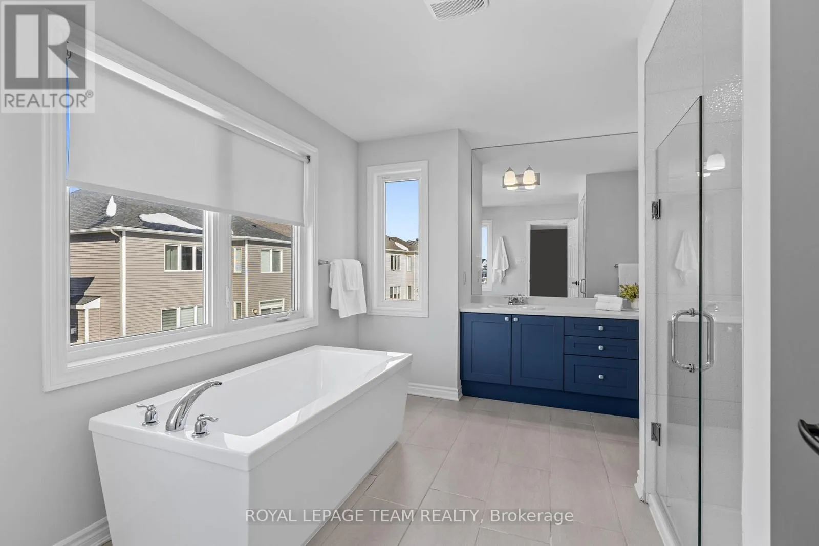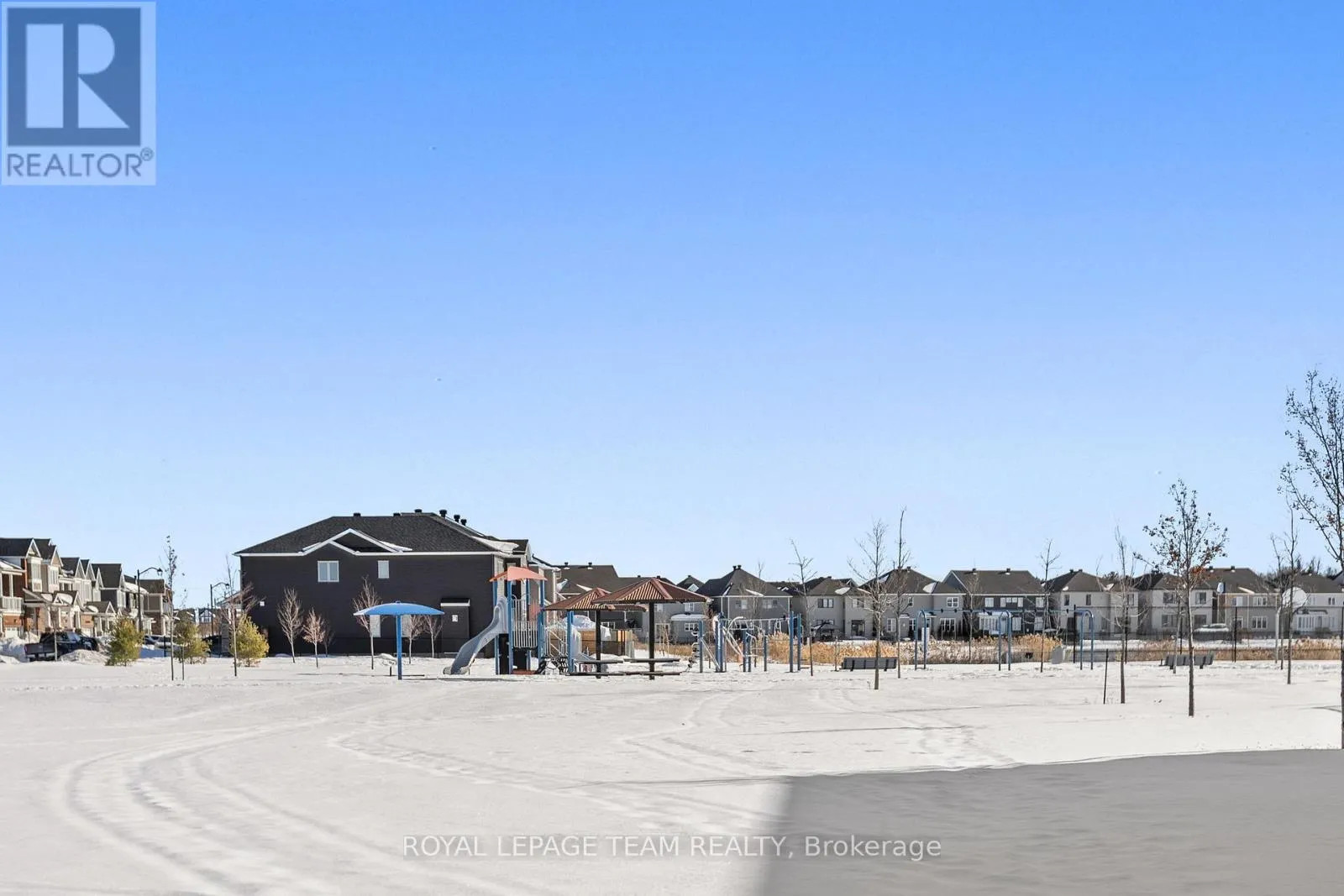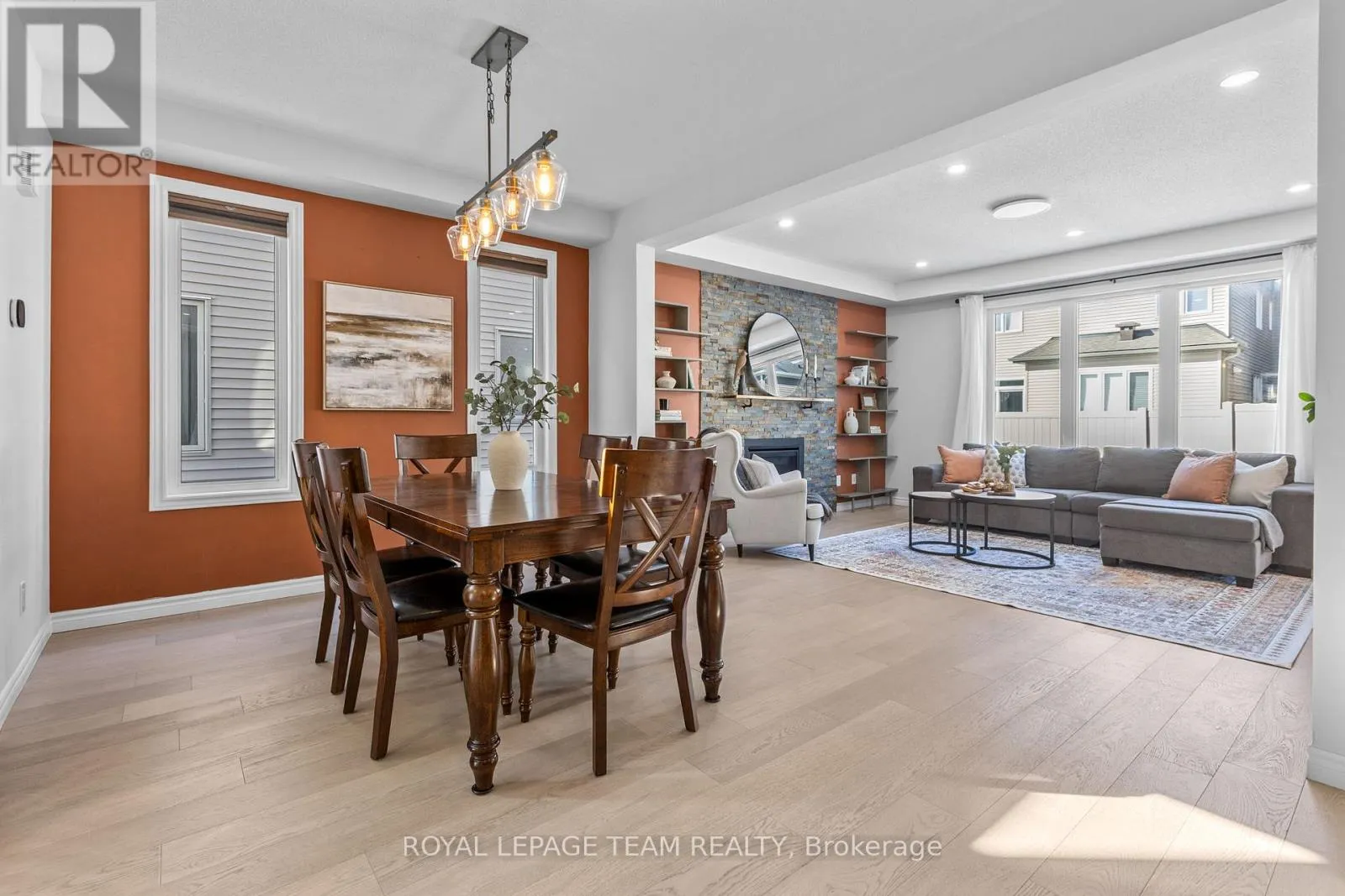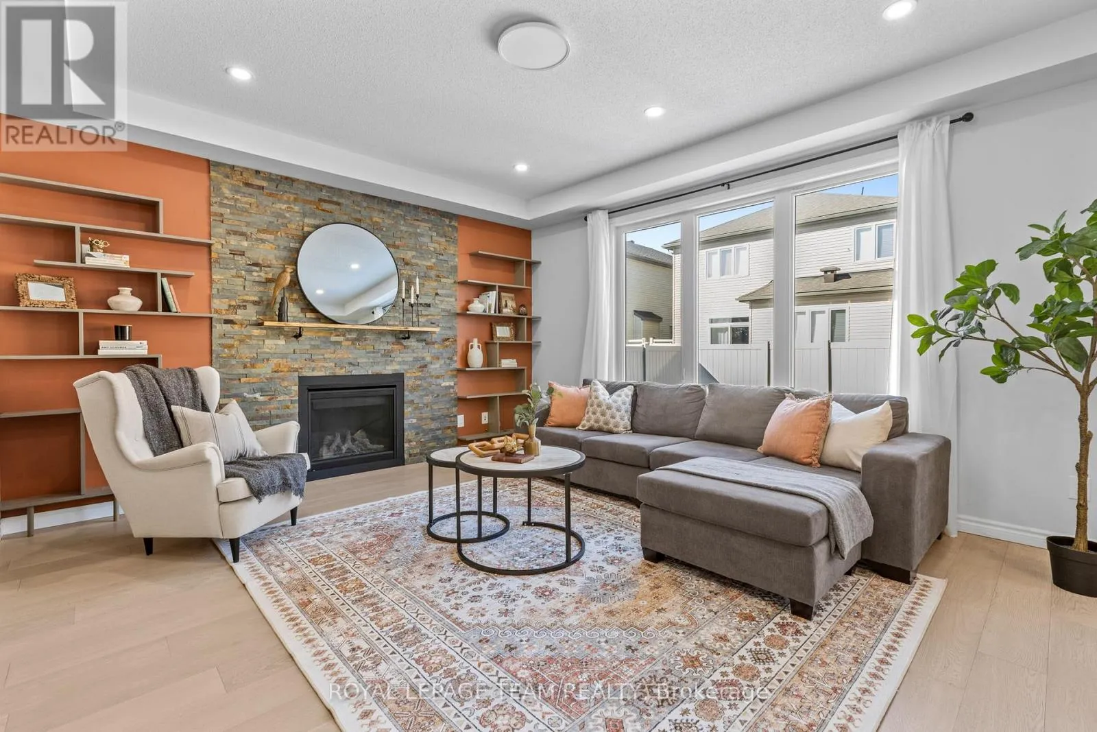 Cross Streets: Perseus Avenue. ** Directions: Take 416 South, exit at Fallowfield Road West. Turn left onto Fallowfield, continue onto Strandhered Dr. Turn right onto Borrisokane Rd. Left onto Flagstaff, left onto Apolune St, right onto Perseus, right onto Proxima Terrace, home is on the left. Set on a quiet street across from the park, this expertly upgraded home offers the space & flexibility today's families need. In the heart of Half Moon Bay - a vibrant, family-first community, this home offers refined living w/o compromise. A sunlit foyer w/ custom wall detailing sets the tone. The open-concept main level boasts soaring 9' ceilings, engineered hdwd & luxurious tile accents, anchored by a striking floor-to-ceiling stone fireplace creating an elevated focal point for everyday living & entertaining. The gourmet kitchen at the heart of the home impresses w/ quartz countertops & backsplash, extended ceiling-height cabinetry, deep pot drawers, pull-out pantry & lg island w/ seating for four. High-end s/s appliances, direct patio access & seamless flow to dining & great rooms make hosting effortless. A dedicated main-floor office/den, powder room & oversized mudroom w/ walk-in closet & garage access add exceptional day-to-day functionality. Upstairs, a dramatic hardwood spiral staircase, flooded w/ nat. light, leads to a thoughtfully designed bedroom level. The primary suite offers a true retreat w/ 2 walk-ins & spa-inspired 5-pc ensuite feat. dbl vanity, upgraded tile & glass shower, soaker tub & huge windows. Three add'l generous beds each boast walk-in closets, one w/ pvt ensuite & two sharing a Jack & Jill bath. A convenient upper-level laundry w/ sink completes the level. A finished, carpet free, lower level offers versatility: home theatre pre-wiring, wet bar rough-in, 3-pc bath + ample storage-ideal for guests, teens, or multigenerational living. Outside, curated landscaping & hardscaping elevate the exterior w/ interlock lined drive, perennial gardens & spacious stone patio within a 7' high PVC fenced yard. Surrounded by parks, riverfront walking/biking paths + rec centres, shopping, dining, transit & easy hwy access, this home offers modern living in the heart of Barrhaven. A rare blend of luxury, comfort & flexibility designed to grow with you. (id:27476)