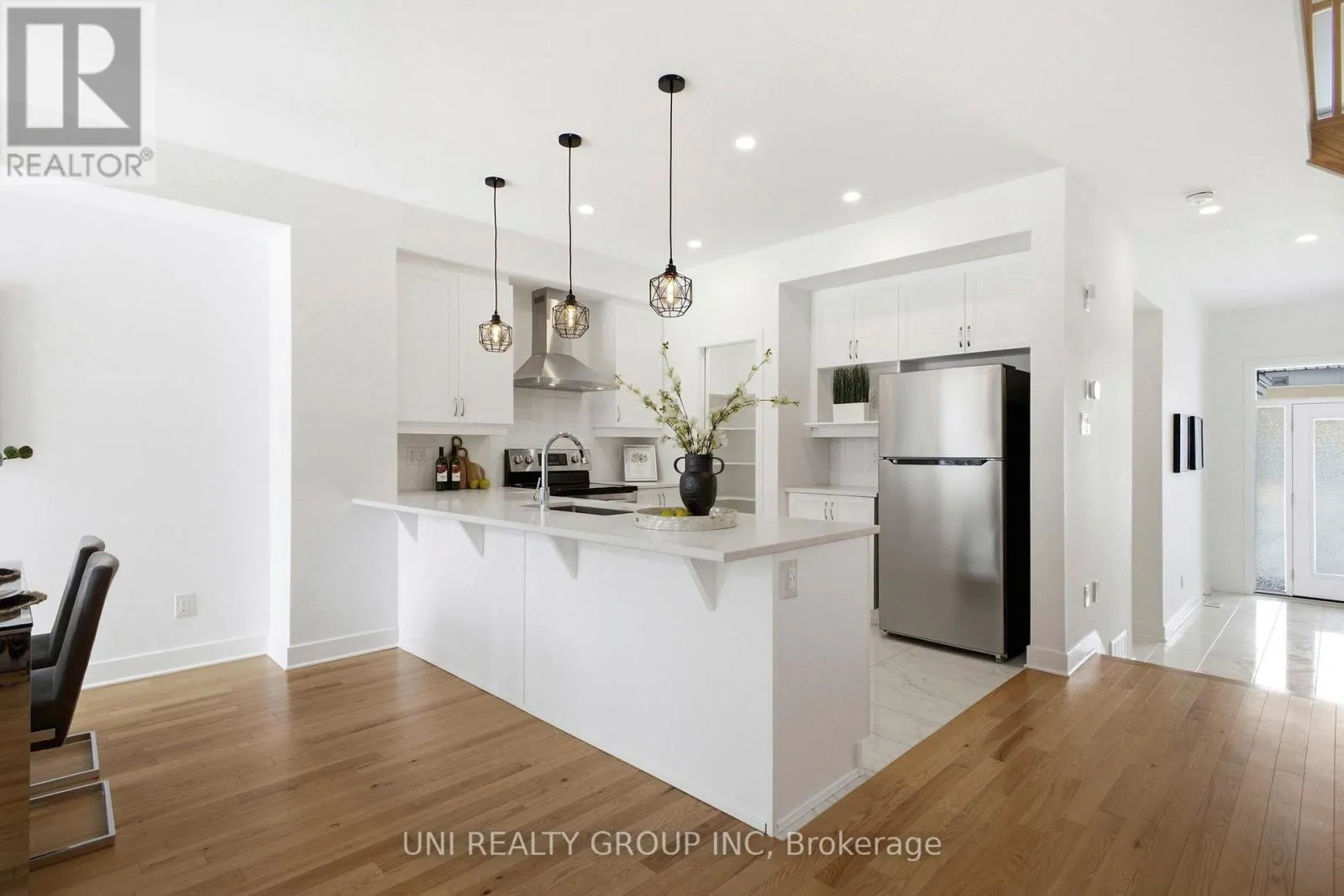 Cross Streets: Spratt and Earl Armstrong Rd. ** Directions: River Rd turns onto Strandherd Dr, turn right onto Borbridge Ave, left onto Chipping Circle. Experience elevated living in this beautifully designed modern Urbandale townhome, where style, comfort, and functionality blend seamlessly. This popular Discovery model welcomes you into a tiled foyer opening to a stunning open-concept main level finished in rich hardwood and curated designer details throughout.The chef-inspired kitchen is a true focal point, featuring chimney hood fan and stainless steel appliances, quartz countertops, chic backsplash, spacious walk in pantry, and a large island with extended seating - ideal for both everyday living and sophisticated entertaining. Thoughtfully selected lighting enhances the home's warmth and architectural character.The living room is filled with natural light and anchored by a sleek gas fireplace. A powder room and convenient interior garage access complete the main floor.Upstairs, the primary retreat offers a walk-in closet and spa-inspired ensuite with soaker tub and glass-enclosed shower. Two additional well-proportioned bedrooms, a full family bath, a thoughtfully designed computer nook provide flexibility for work or study, second-floor laundry, and a generous linen closet provide practicality without compromising comfort. The finished lower level expands your living space with a versatile recreation room and abundant storage. Step outside to a good size backyard that is a seamless extension of the home. A rare opportunity to own a home that effortlessly balances luxury, design, and everyday livability. (id:27476)