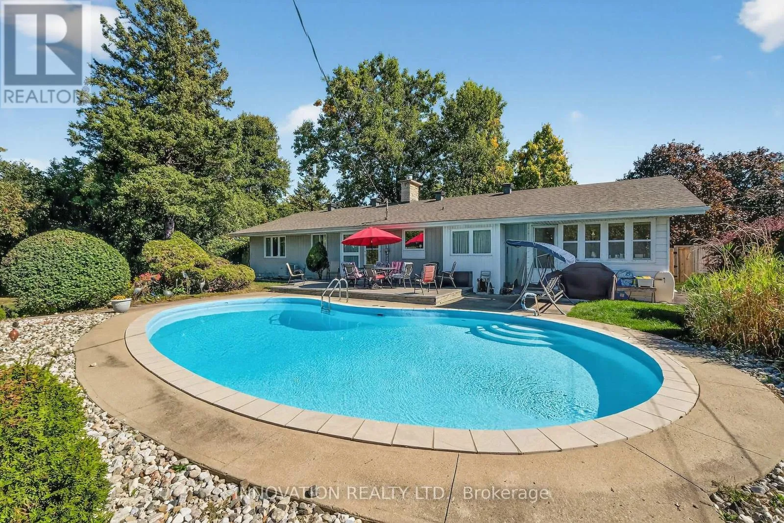 Cross Streets: Queensway and Maitland. ** Directions: Off Queensway South on Maitland. Right onto Garfield Ave. Welcome to an Oasis inside a 15 minute drive from Parliament Hill! Well maintained four bedroom bungalow on a pie shaped lot with a double garage. Hardwood flooring throughout. Spacious living area with gas fireplace. Dining area with door to sunroom and recessed buffet nook. Eat-in kitchen with views of the yard. Primary bedroom with 2 pc. ensuite bathroom. Main bath with glass doored shower stall and lots of storage space. Downstairs to massive finished basement with wood burning stove, wet bar and 2 pc. powder room. Laundry area, cold pantry and utility room for ample storage. Step into a huge lot with inground salt water pool, low deck for outdoor dining and family BBQ's, storage shed with lots of yard to spare! Close to NCC cycling trails, good schools and all the shopping you could ever want! (id:27476)