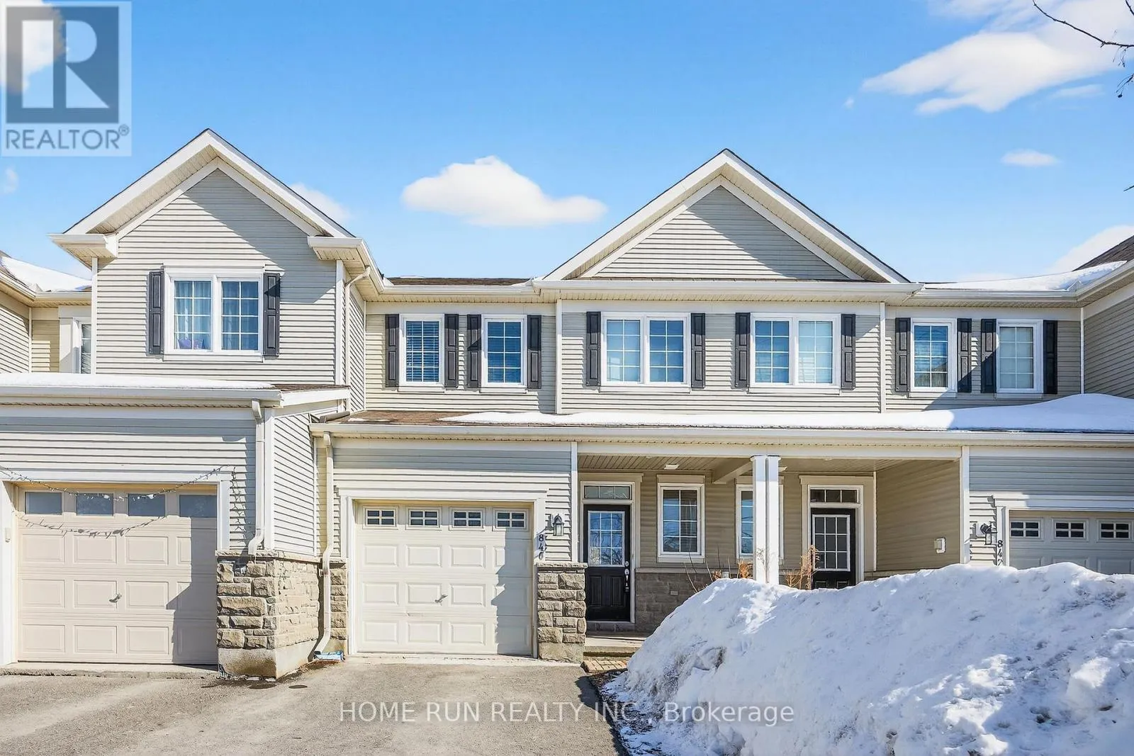 South on Prince of Whales to Jockvale, left on Blackleaf & right on Kennacraig A stunning Monarch-built townhome located in the sought-after Stonebridge community. This home offers 9-foot ceilings and a blend of hardwood and tile flooring throughout the main level. The stylish kitchen features rich dark cabinetry, stainless steel appliances, and abundant storage. Designed for both everyday comfort and entertaining, the open-concept main floor boasts oversized windows, gleaming hardwood floors, a stone accent wall, two cozy fireplaces, and a built-in bar in the living room-perfect for hosting or unwinding. The finished lower level adds valuable living space, while the impressive primary suite includes a generous walk-in closet. Two additional well-sized bedrooms complete the home, one equipped with a convenient built-in Murphy bed. Ideally situated just steps from the Minto Recreation Centre, Stonebridge Golf Course, shopping, and transit. (id:27476)